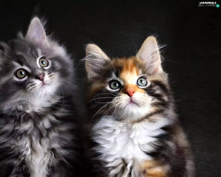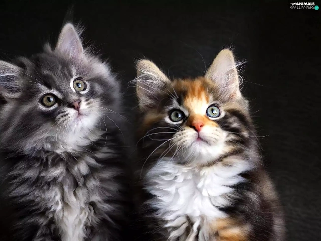 Two cars, puss, Maine Coon, cats