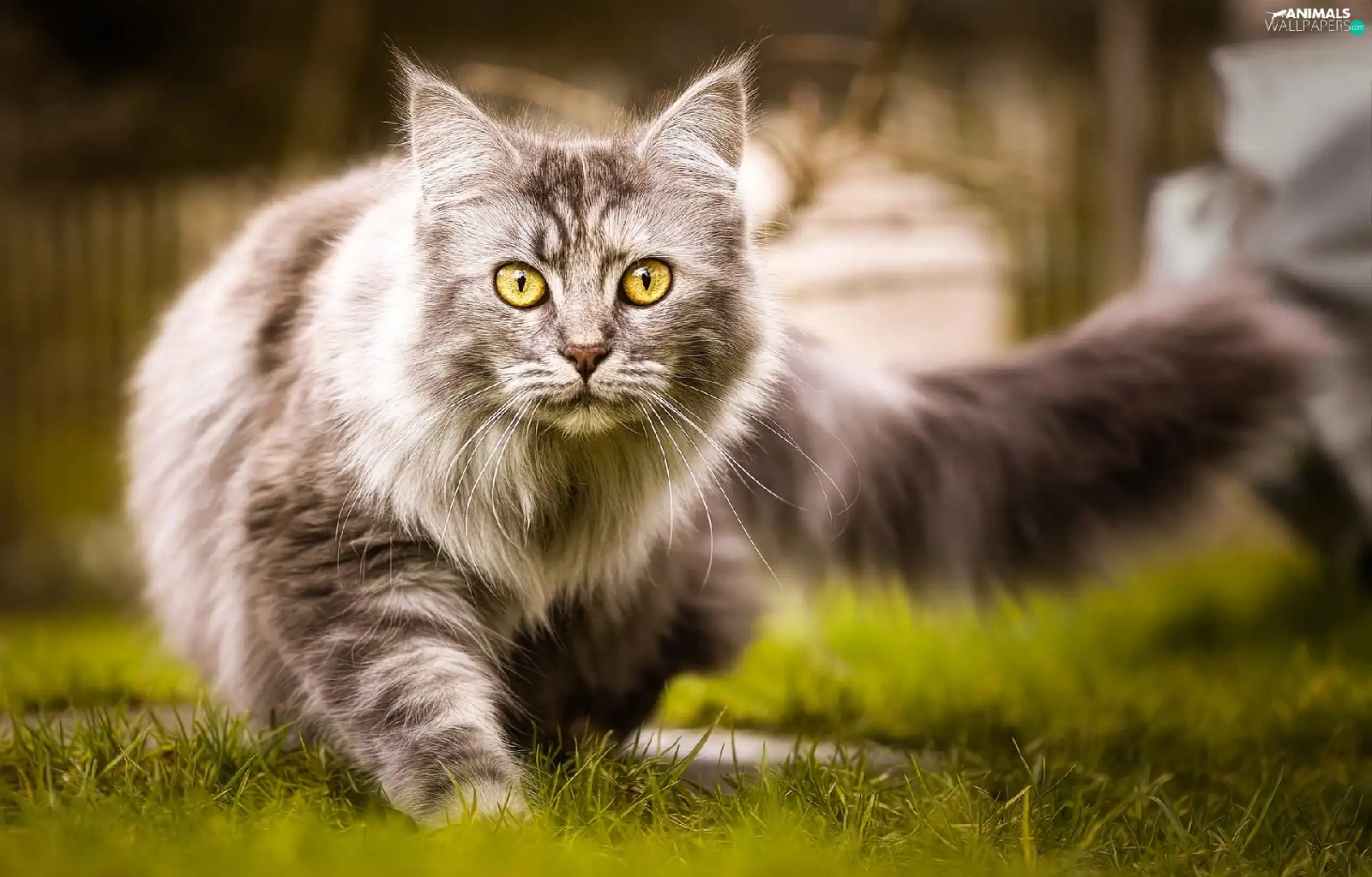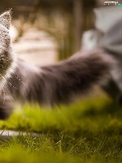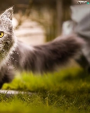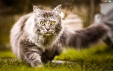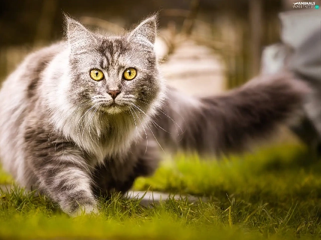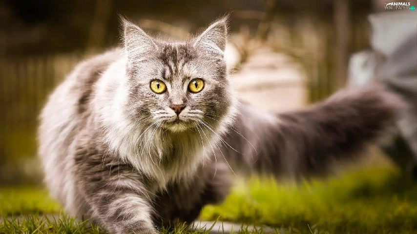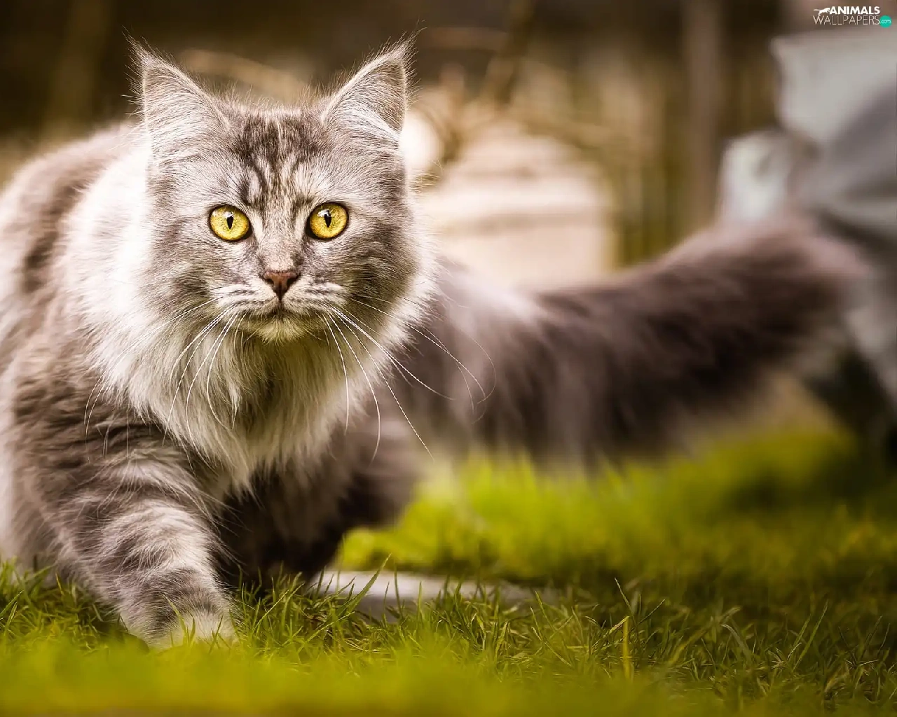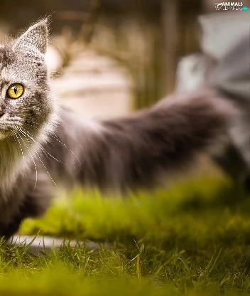 grass, cat, Maine Coon
