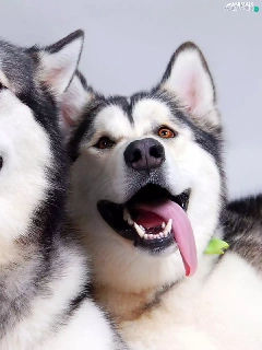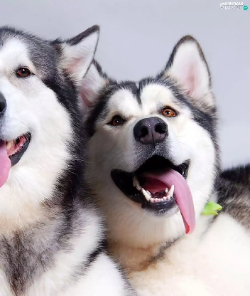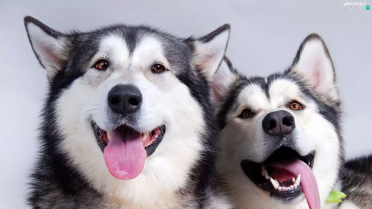 Two cars, Alaskan Malamute, Languages, puppies