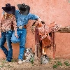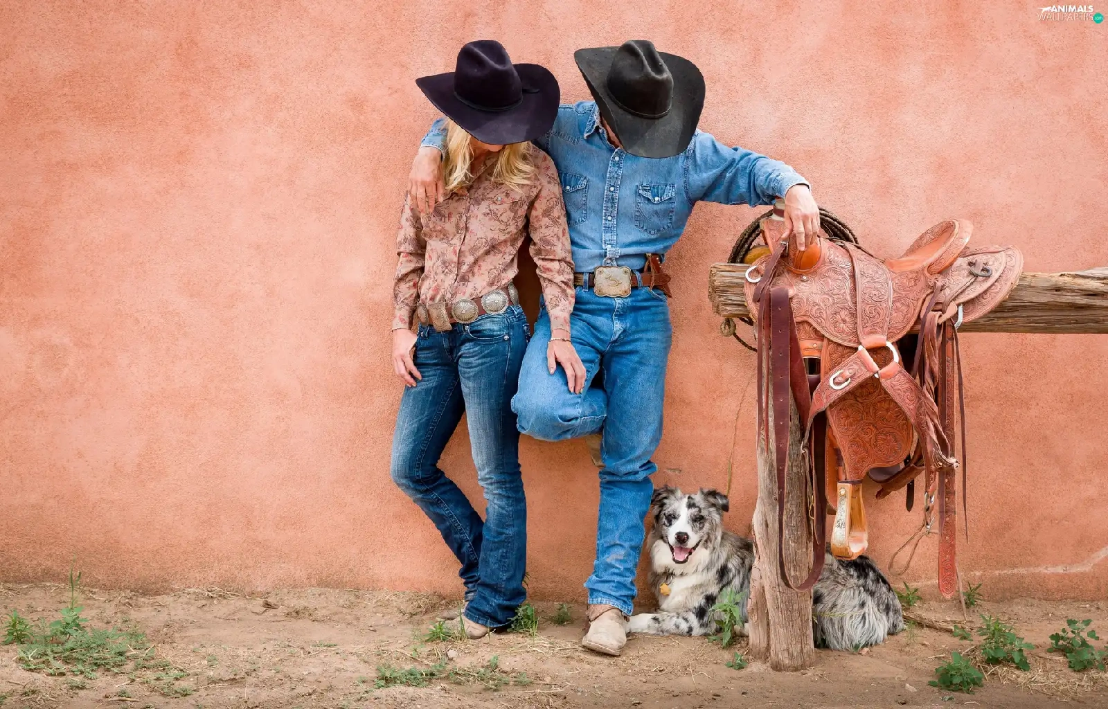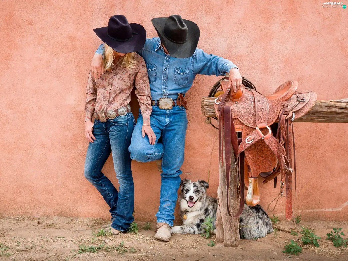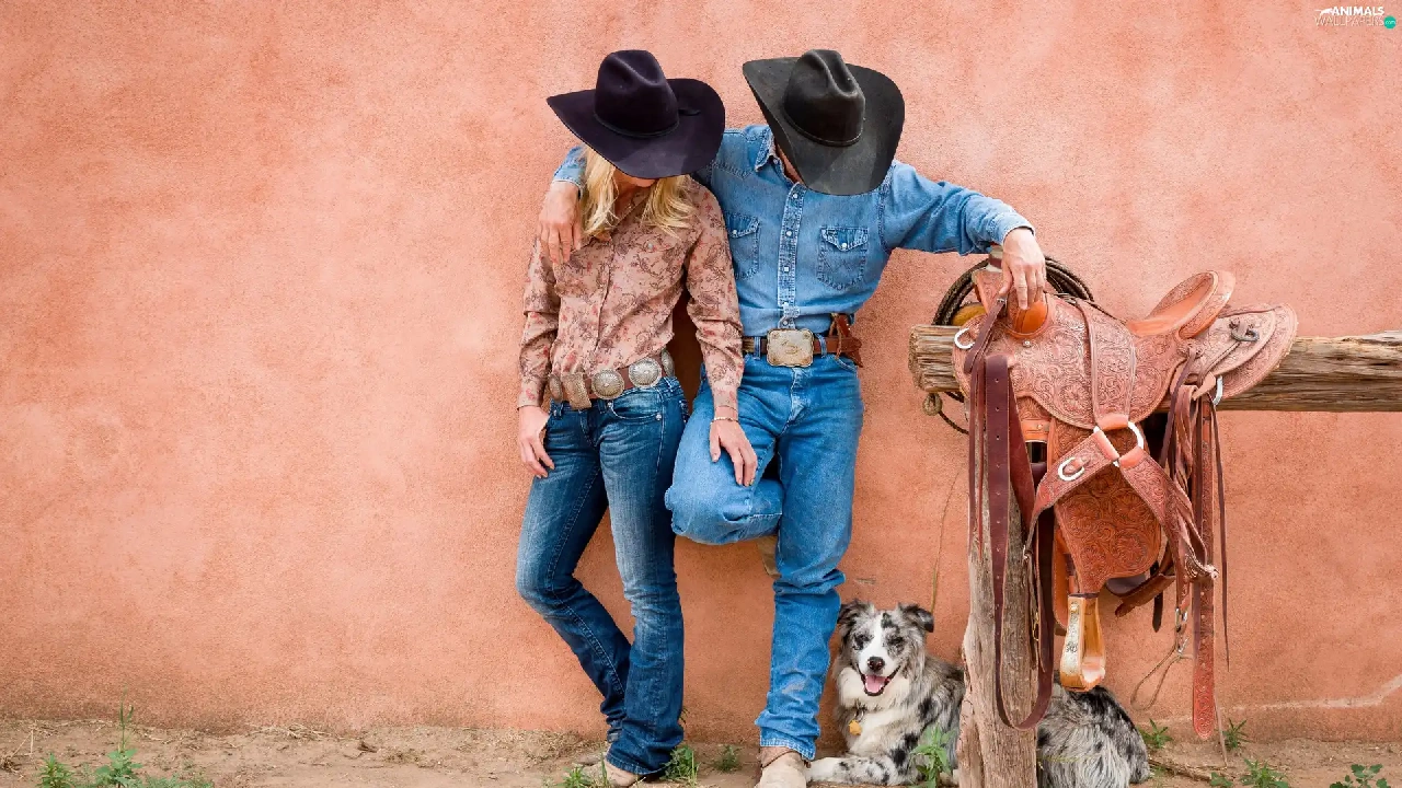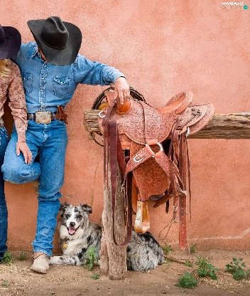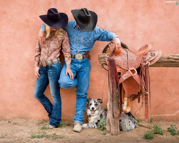 gear, Women, dog, a man, Cowboys, anticline, Australian Shepherd