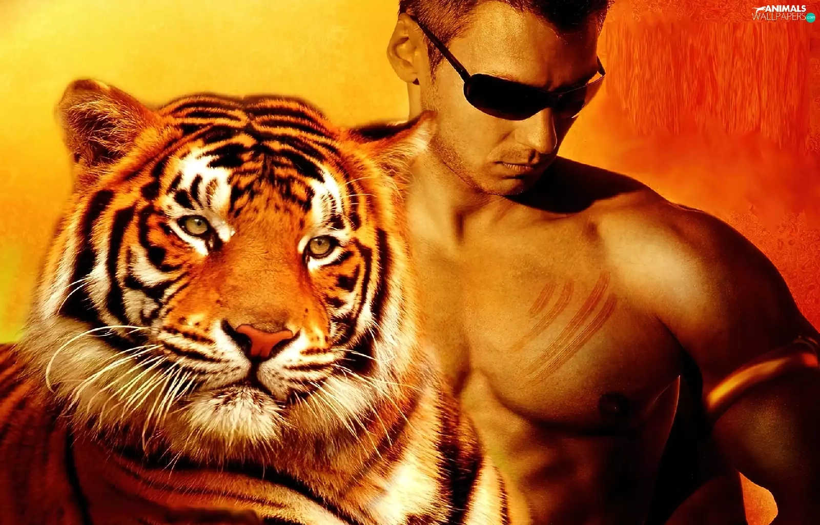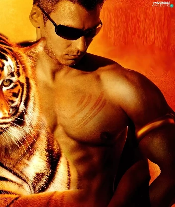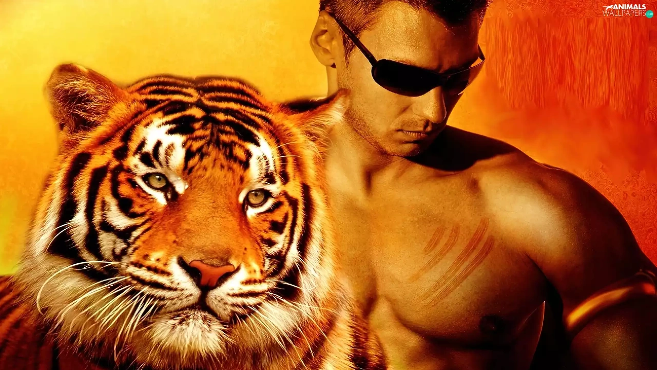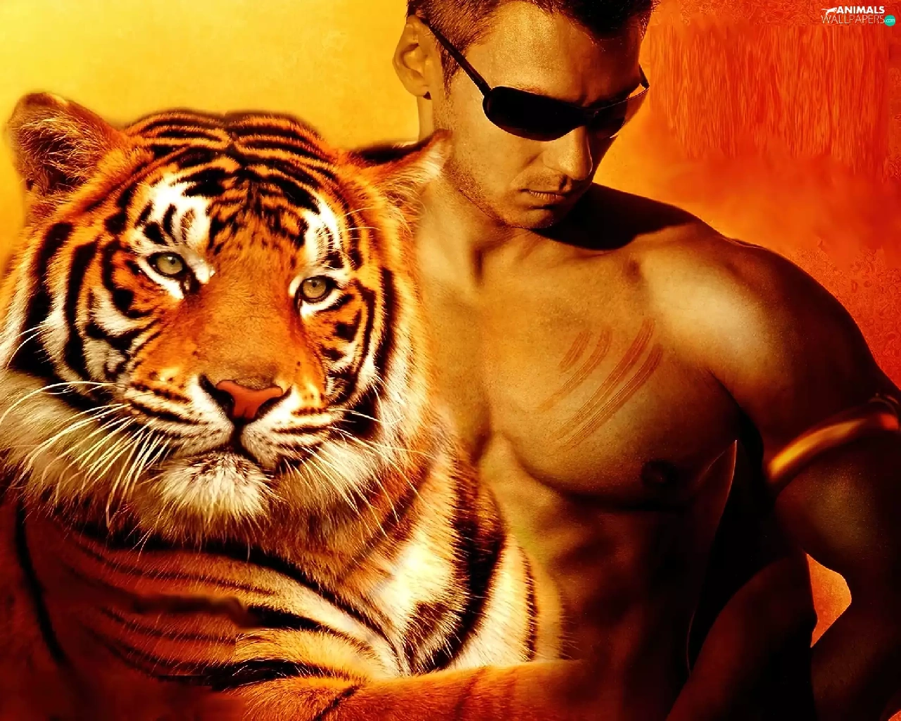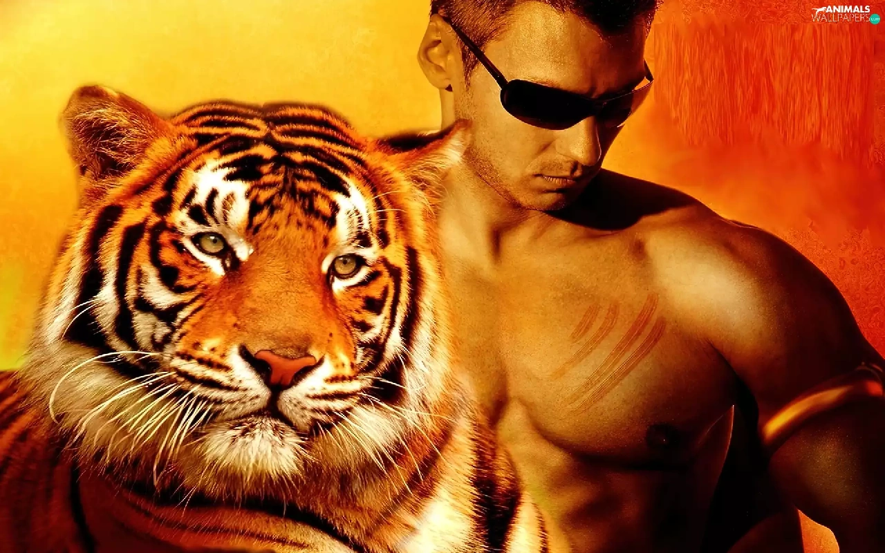 Glasses, tiger, a man
