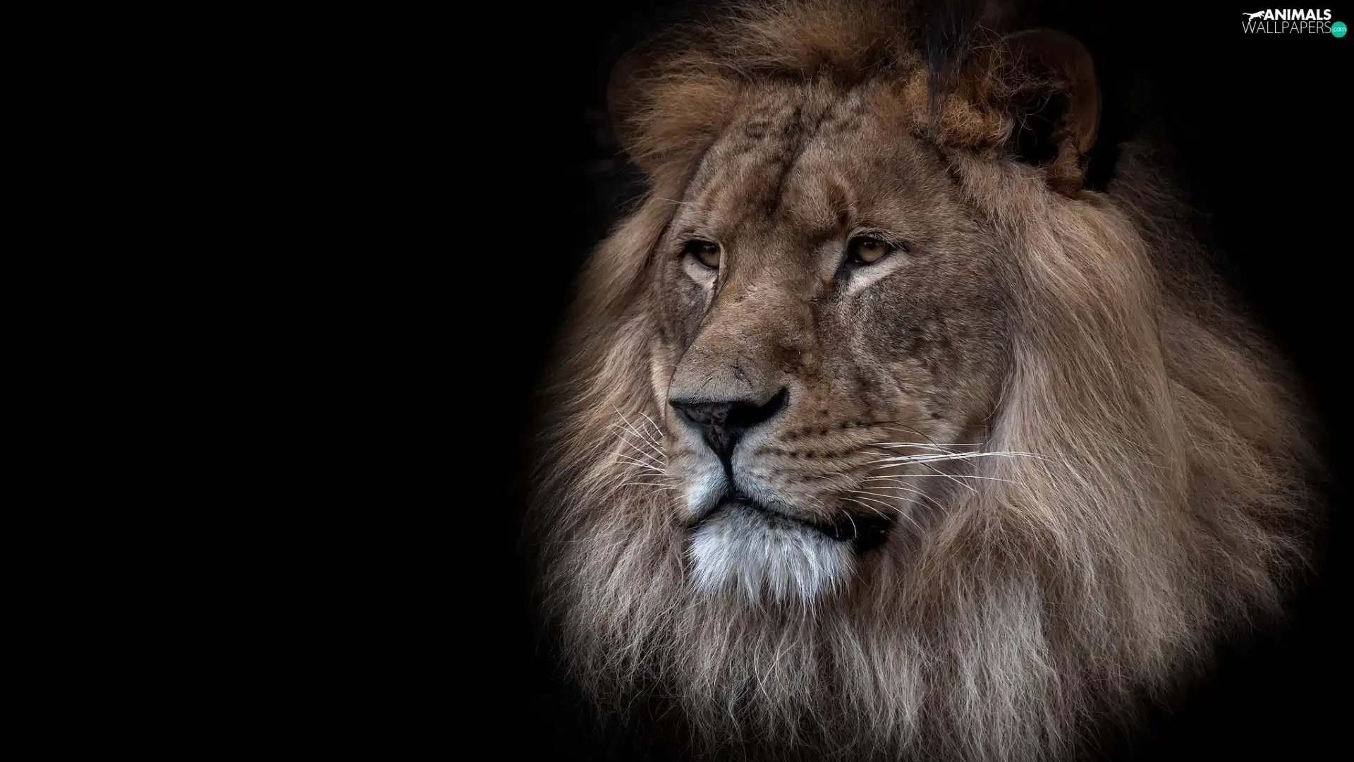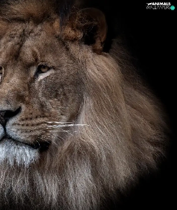 Lion, mane, black background, Head
