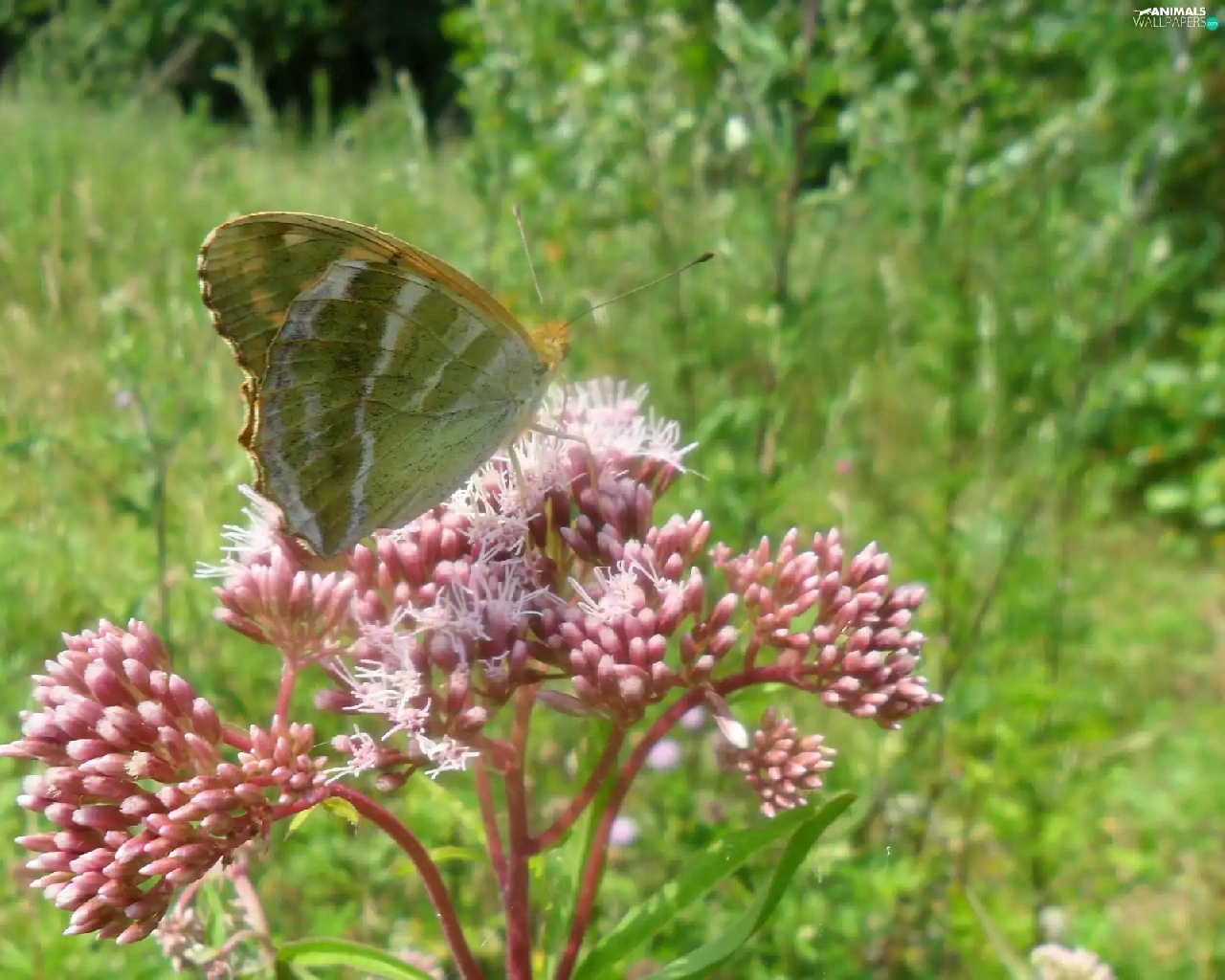 flower, Meadow, an, pink, butterfly