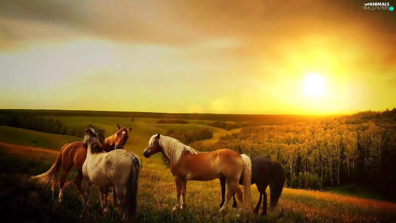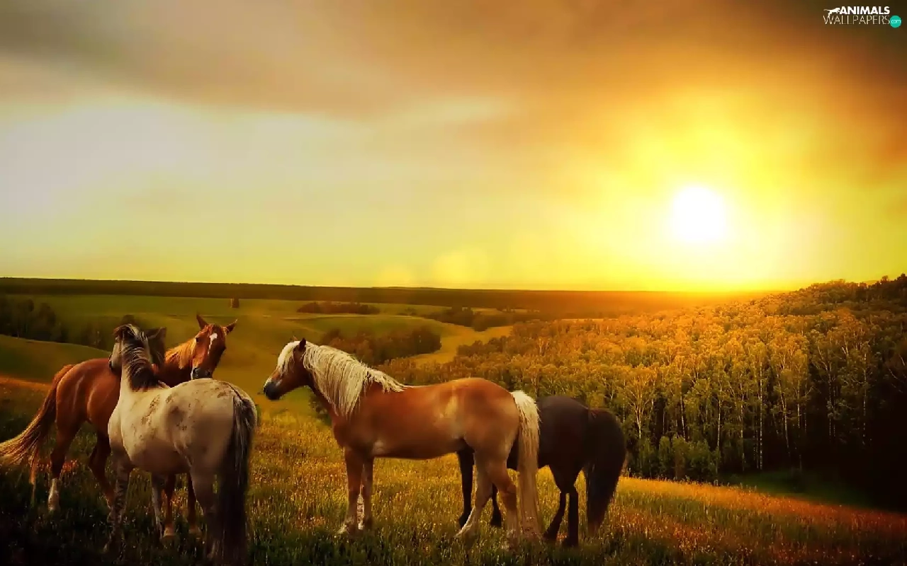 bloodstock, forest, morning, Meadow