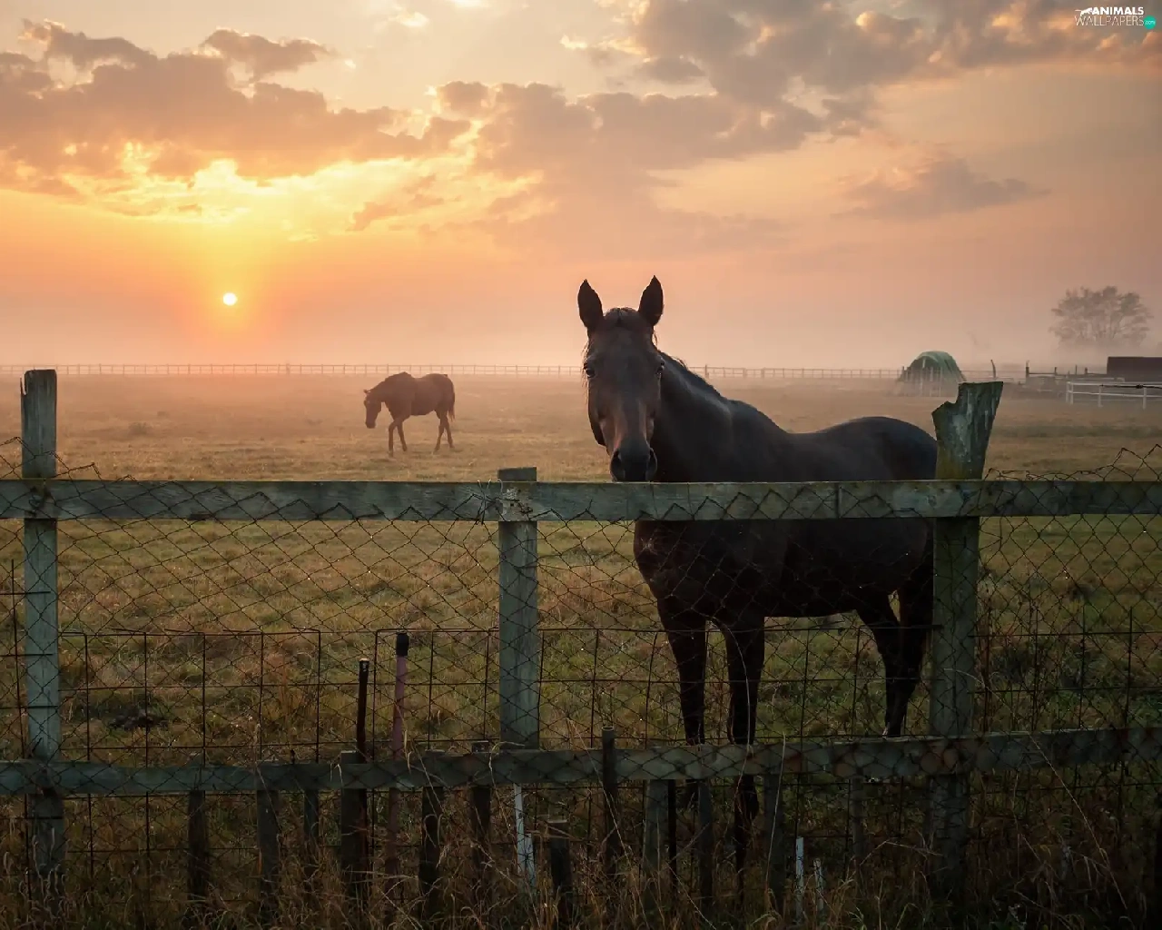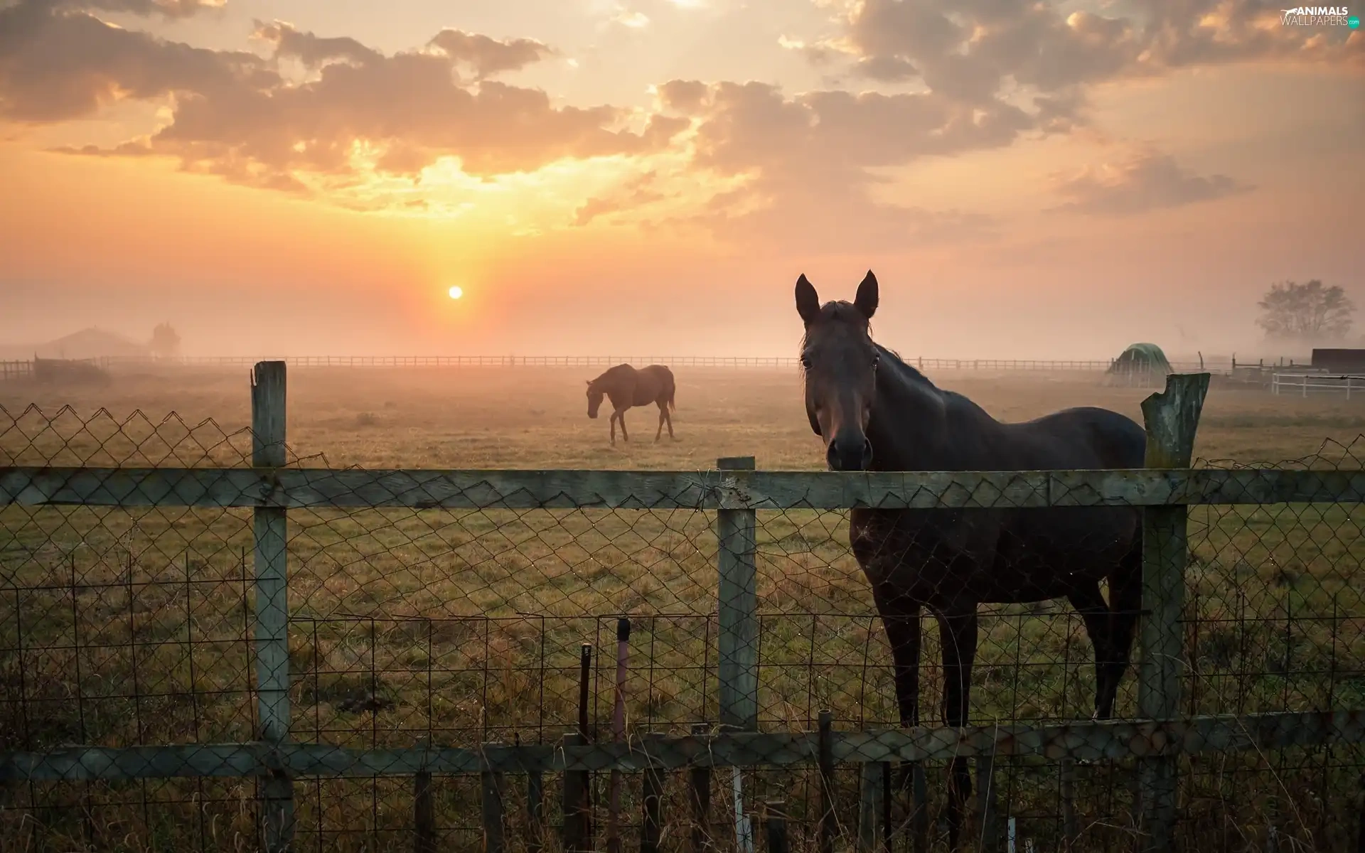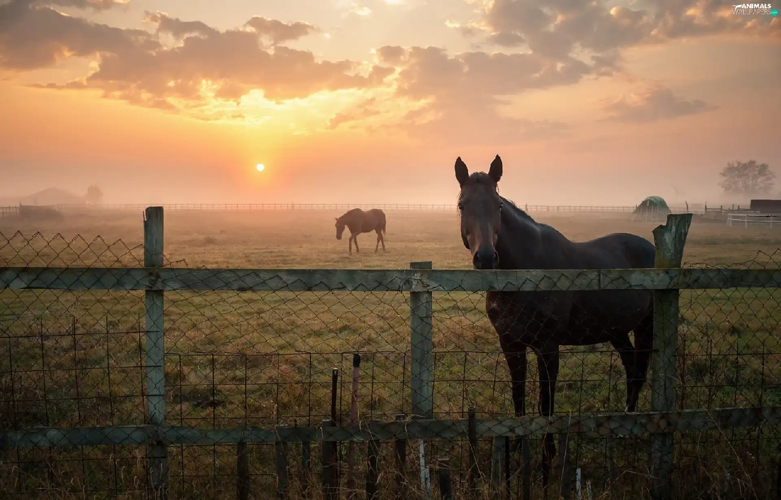 fence, Great Sunsets, Meadow, pasture, bloodstock