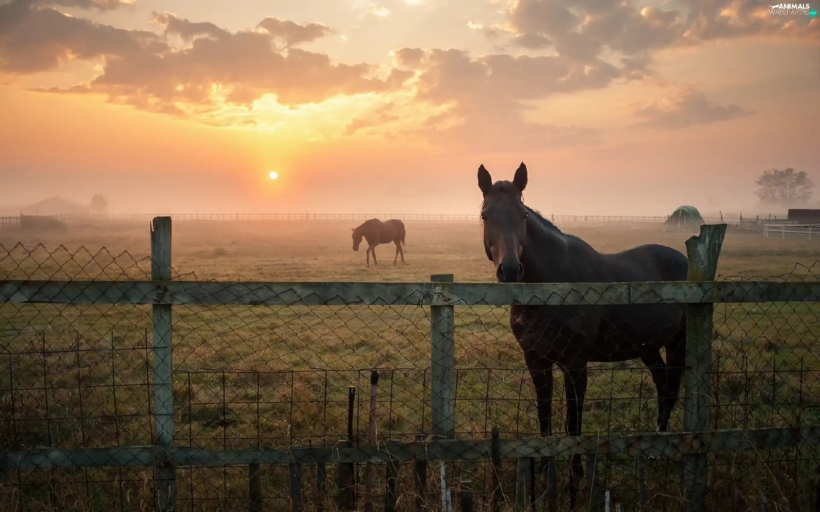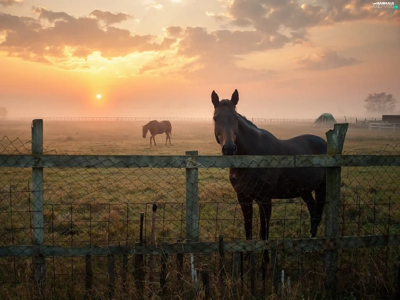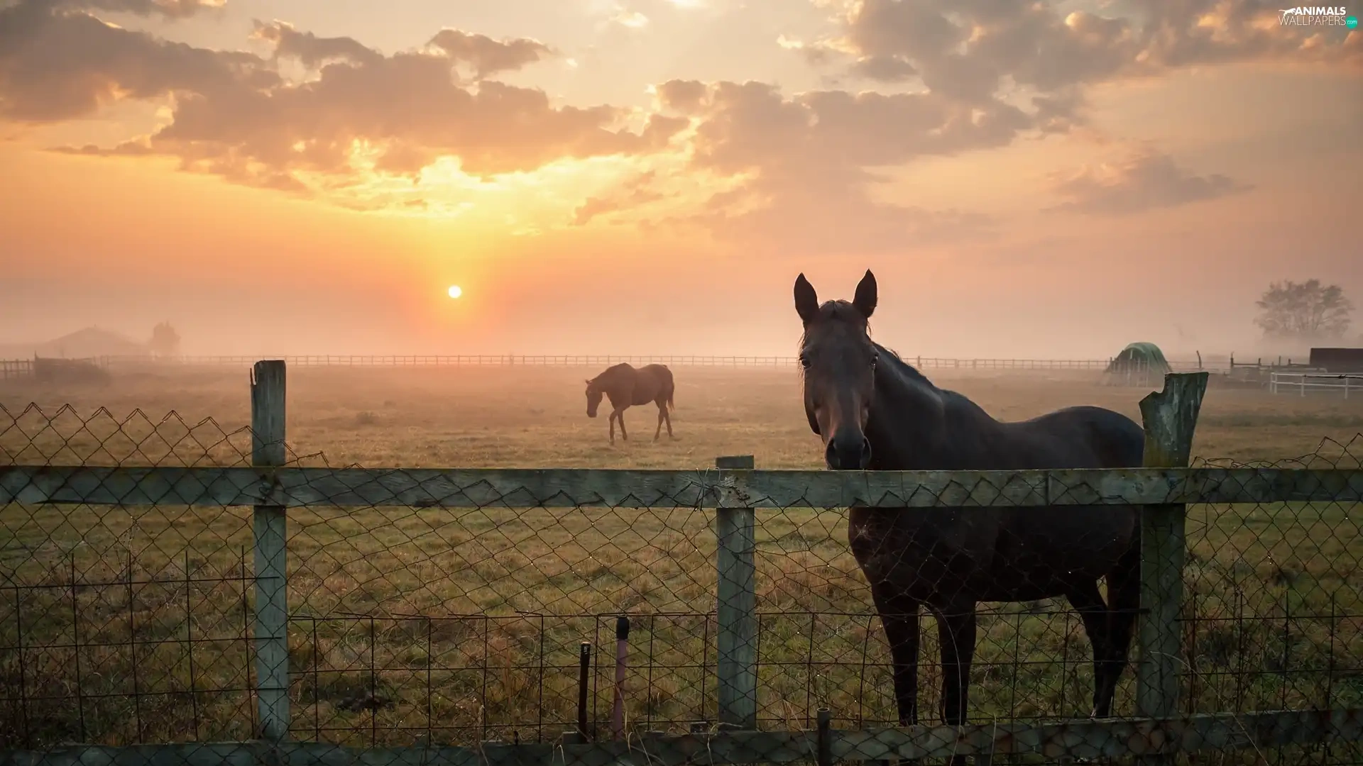 fence, Great Sunsets, Meadow, pasture, bloodstock