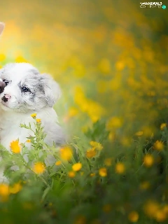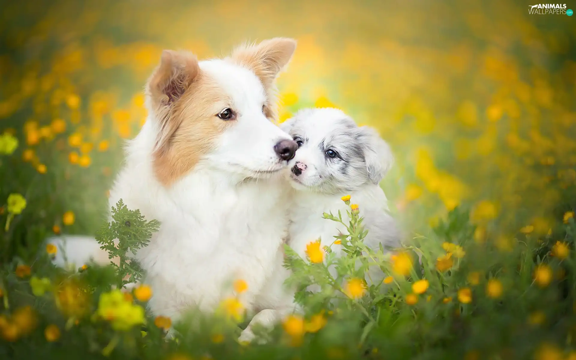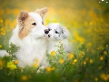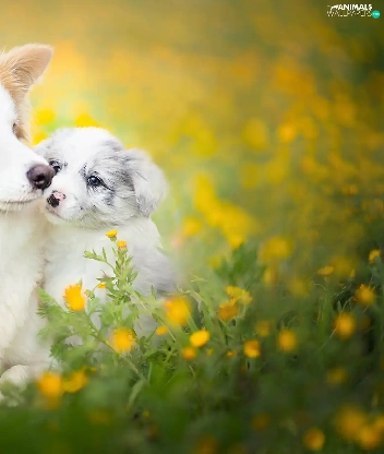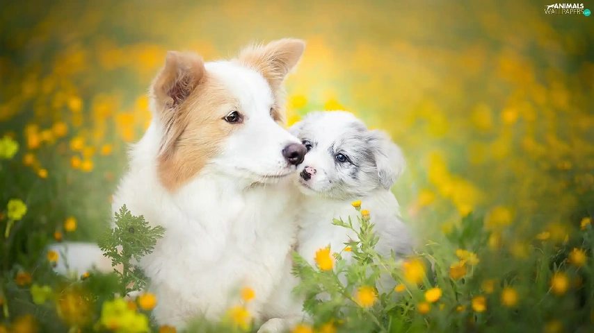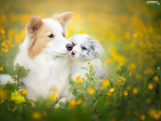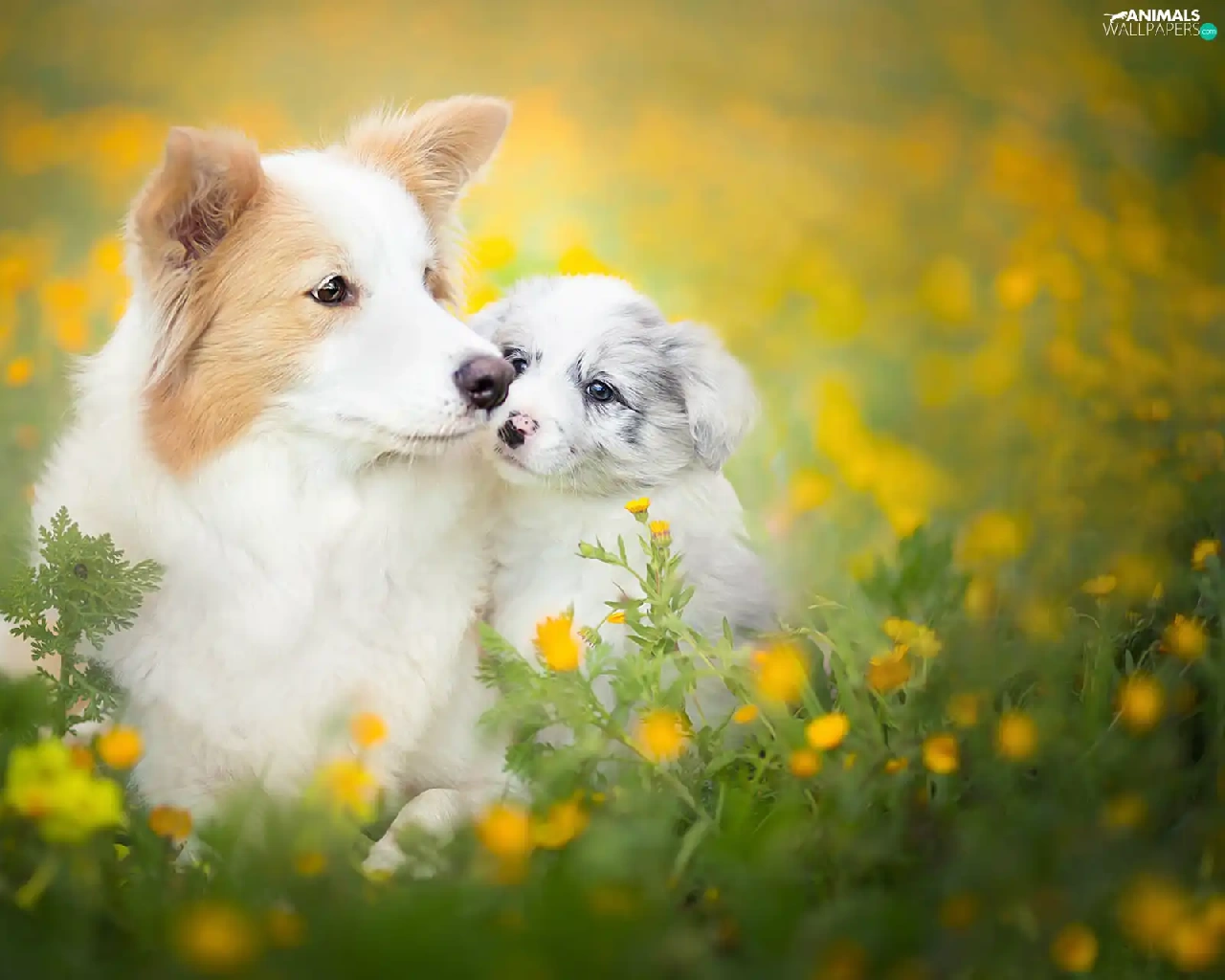 Meadow, Flowers, Border Collie, Spring, Dogs