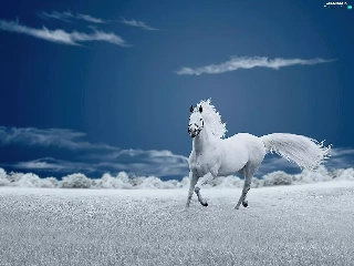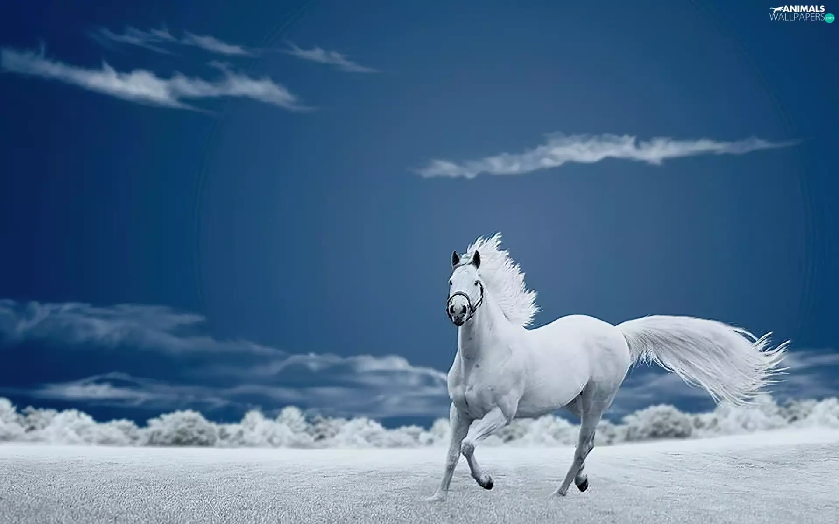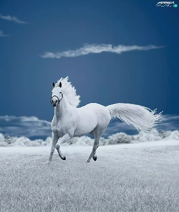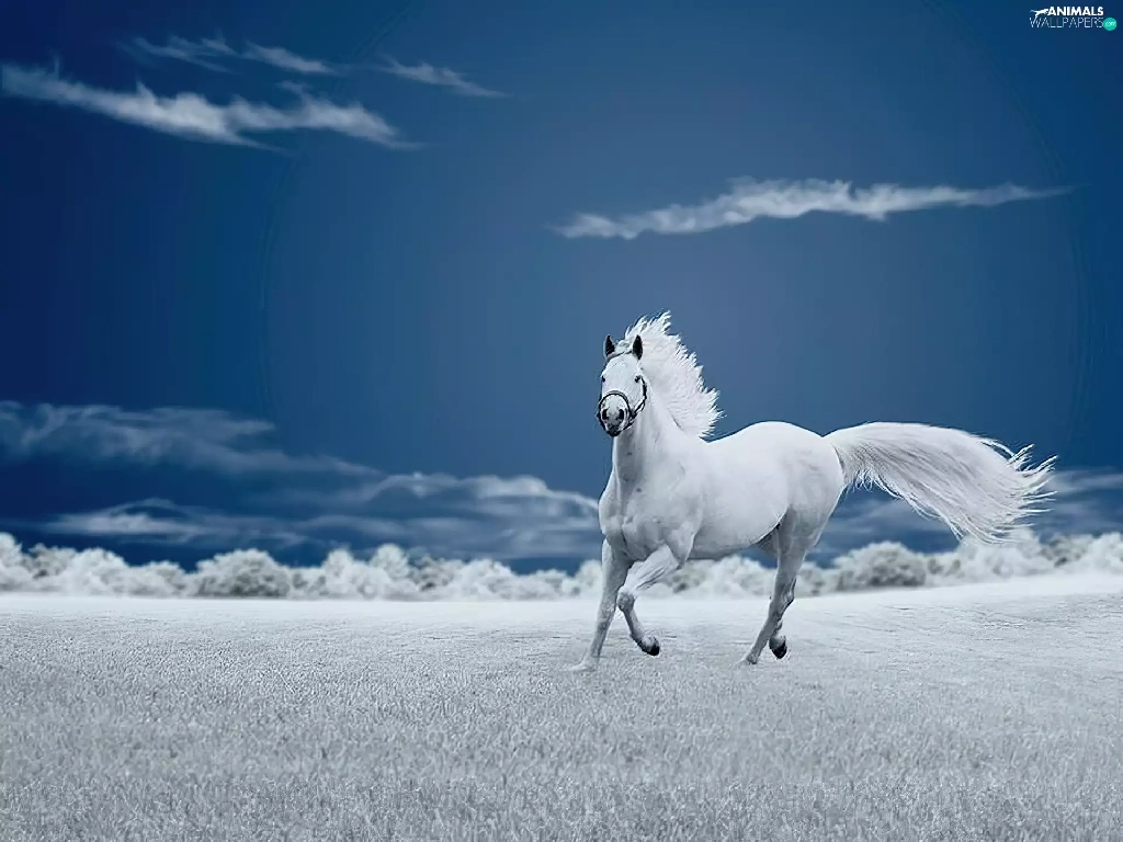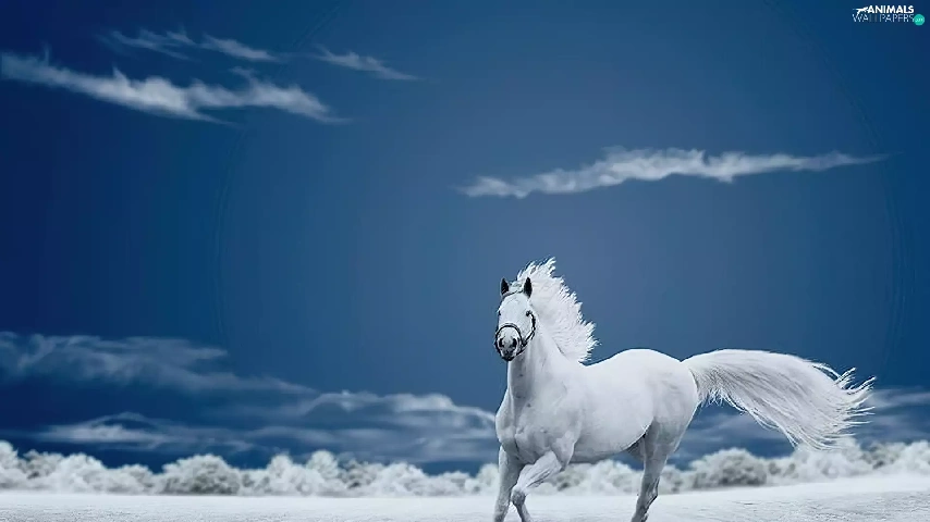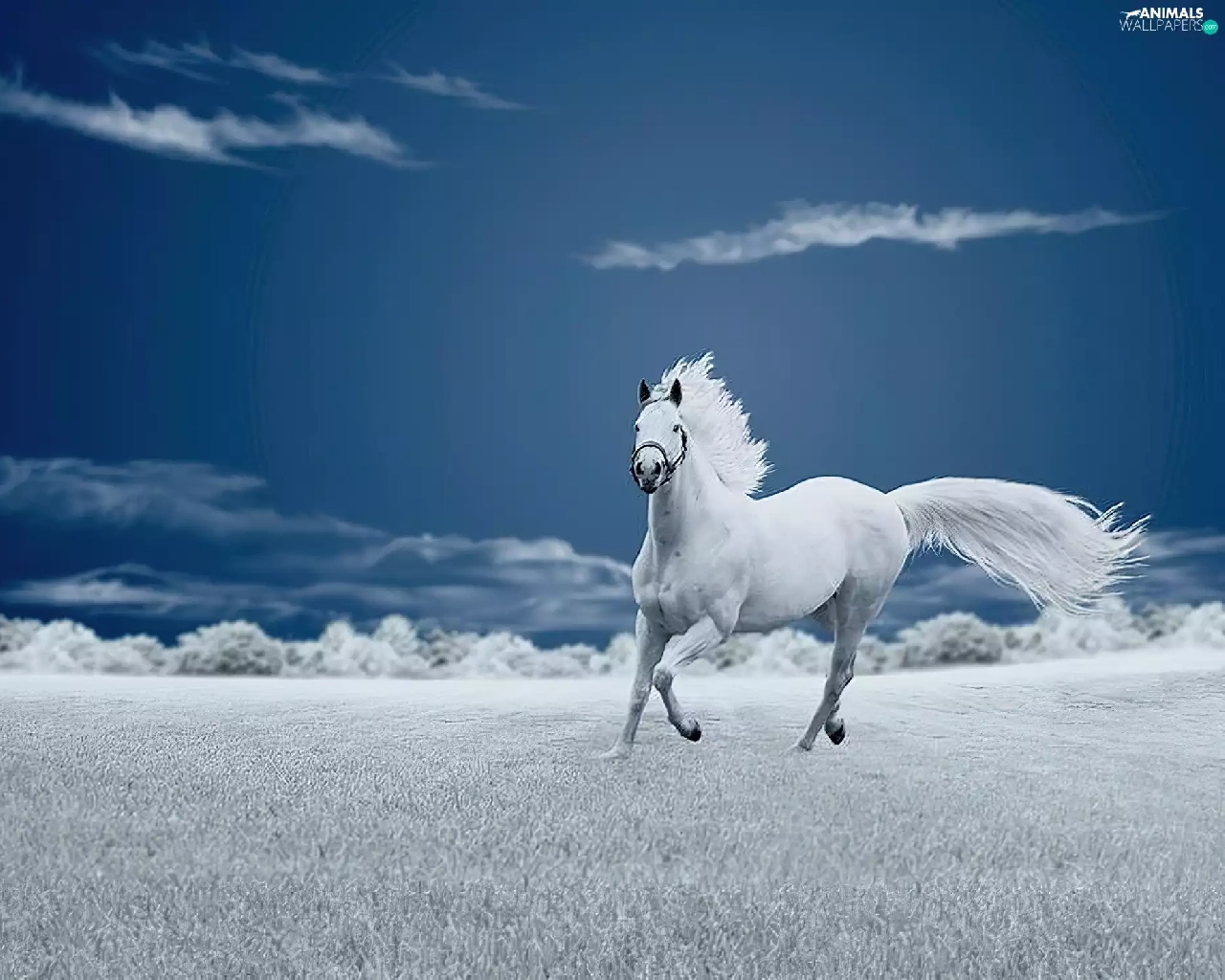 Meadow, Horse, clouds