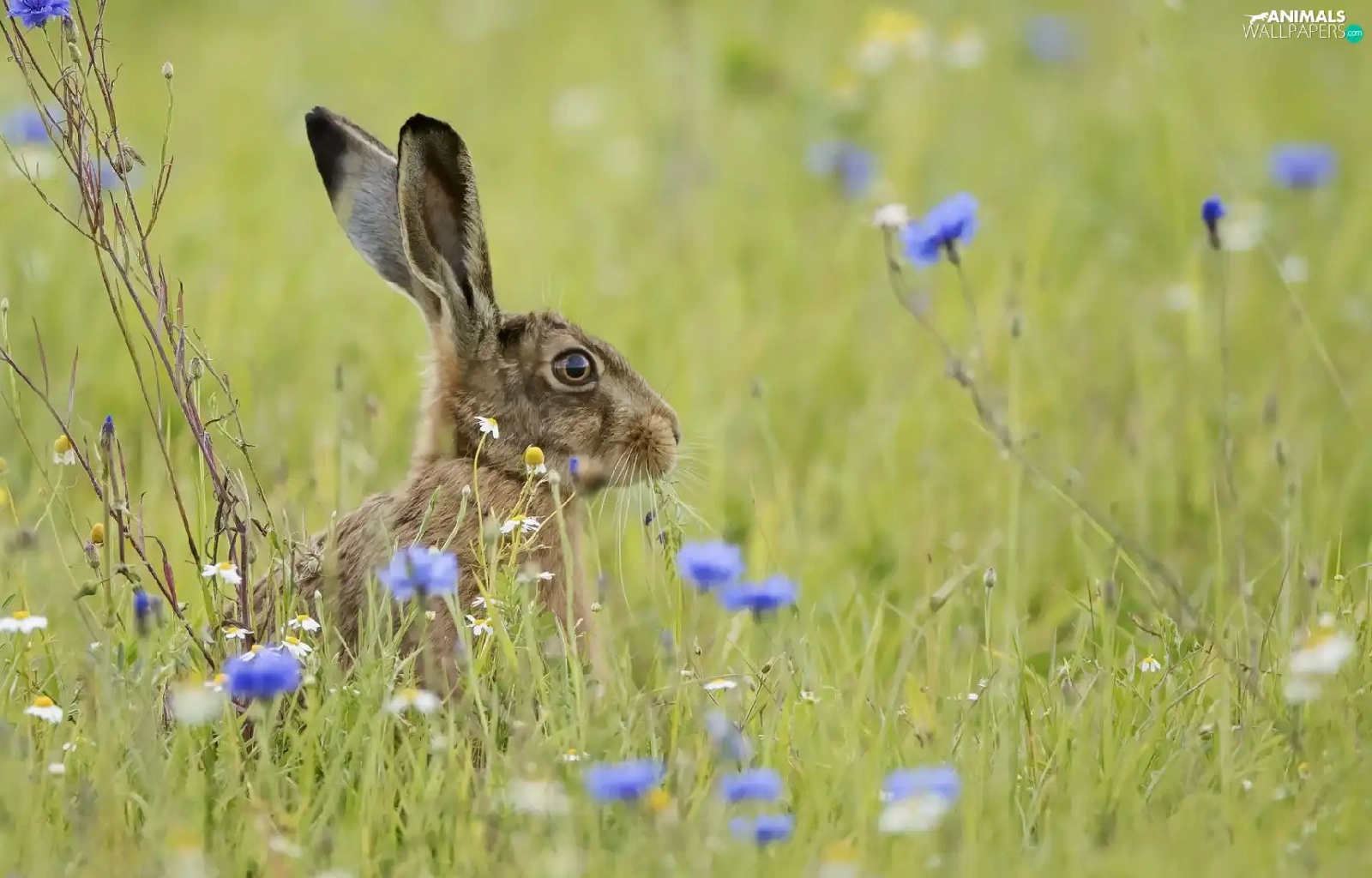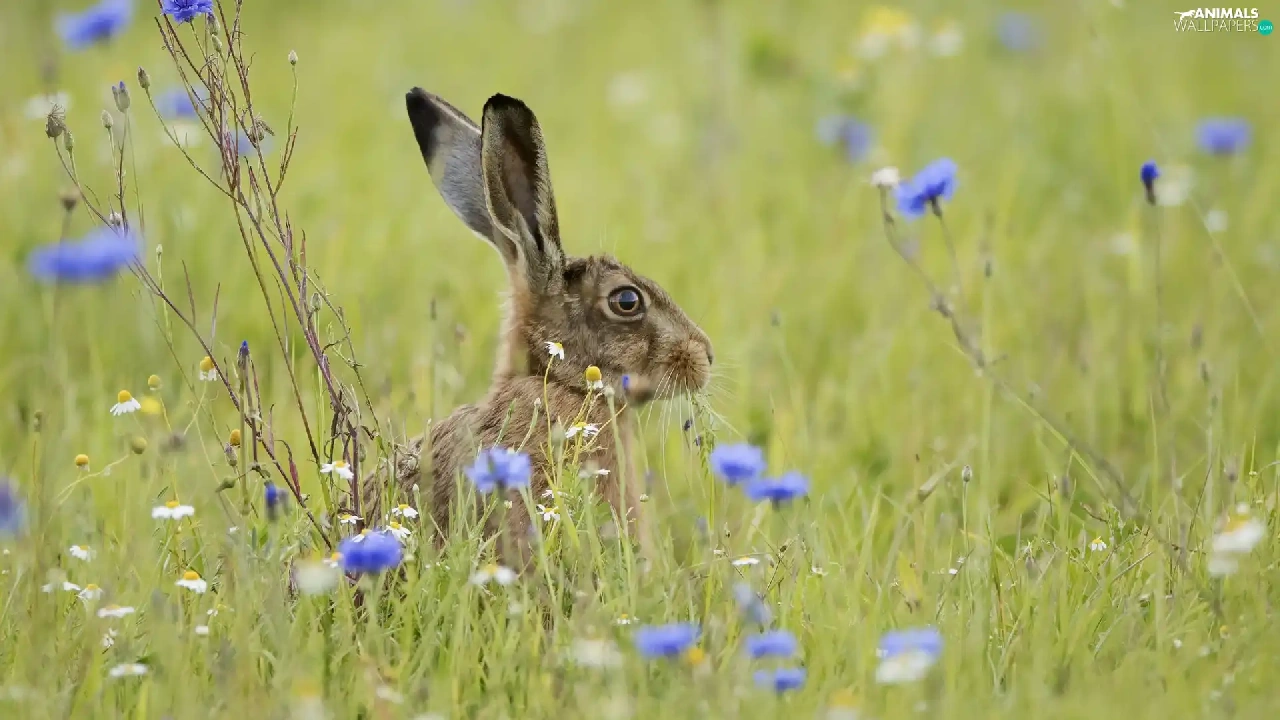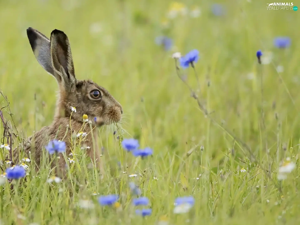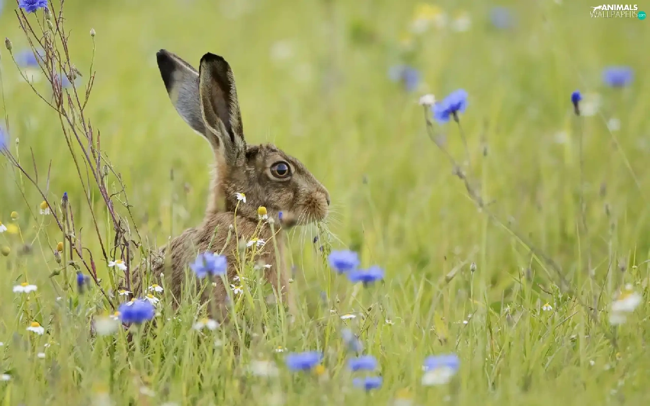cornflowers, Wild Rabbit, Meadow
