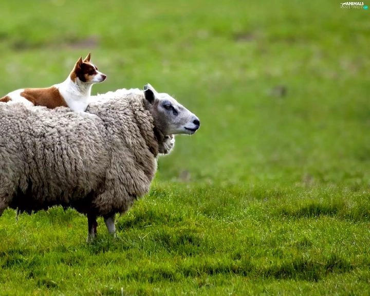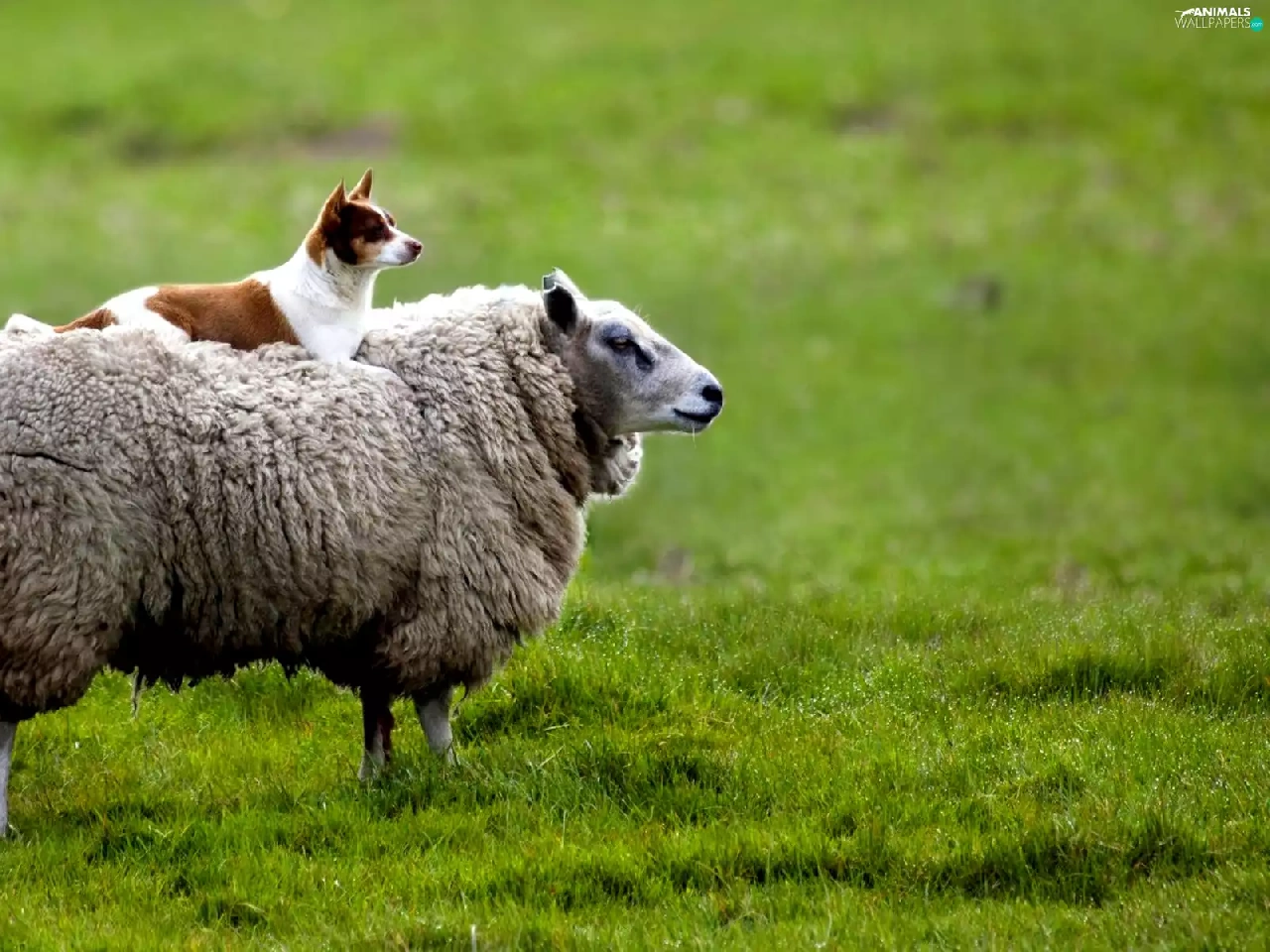 Meadow, sheep, doggy