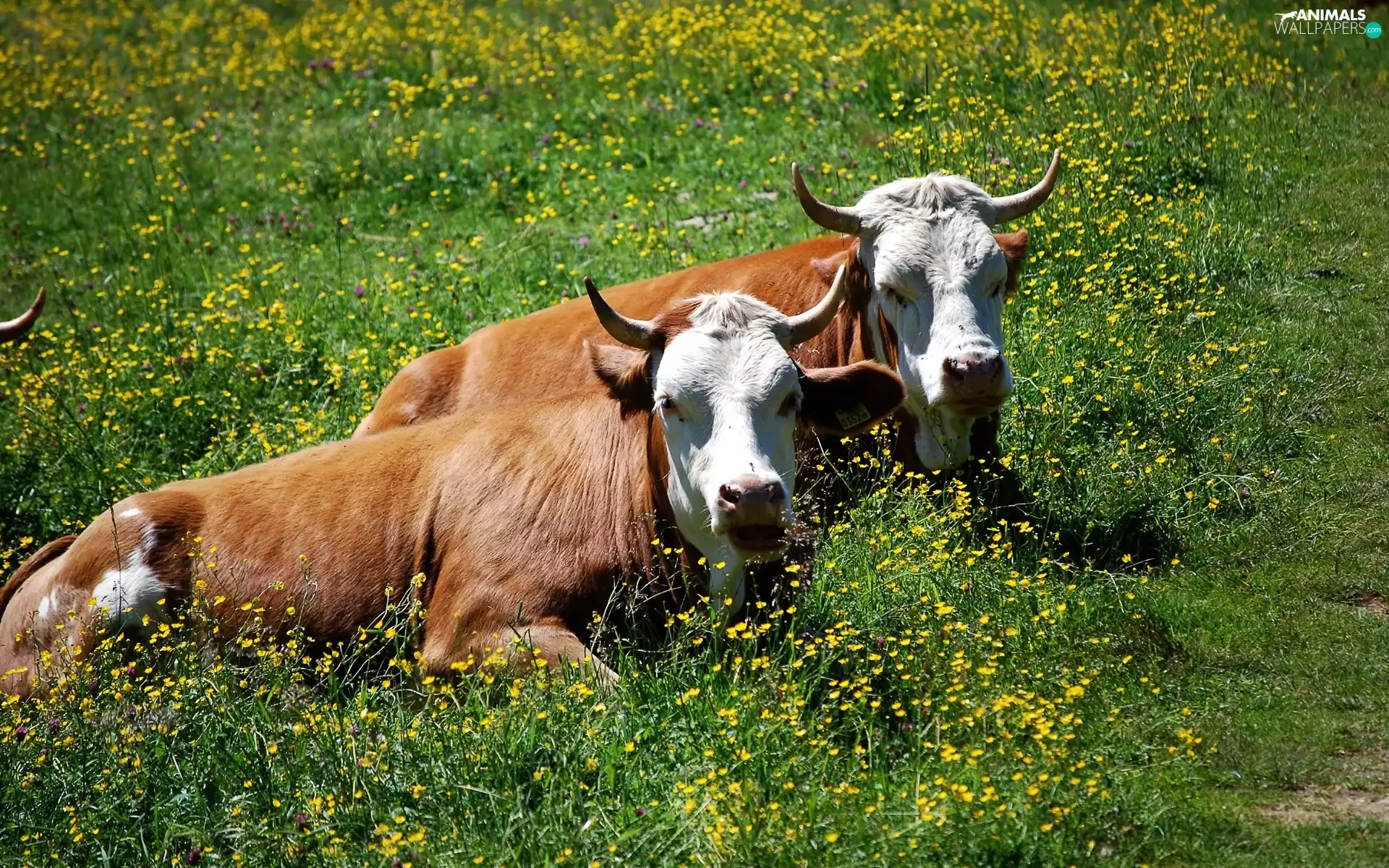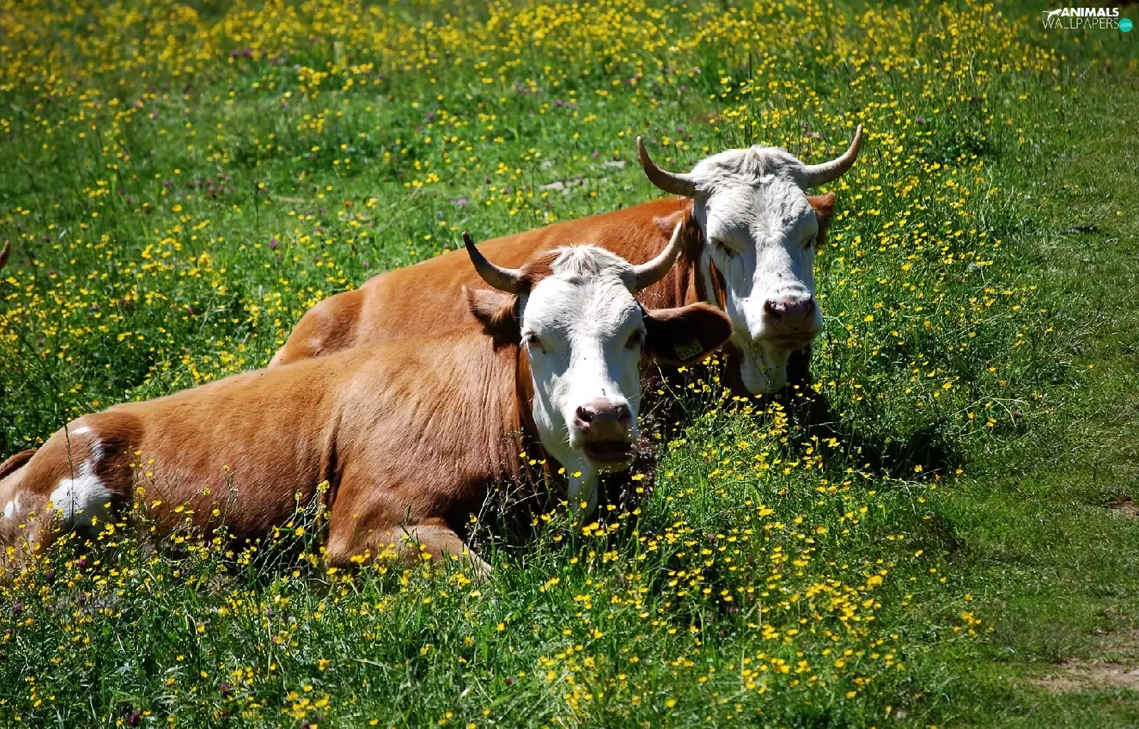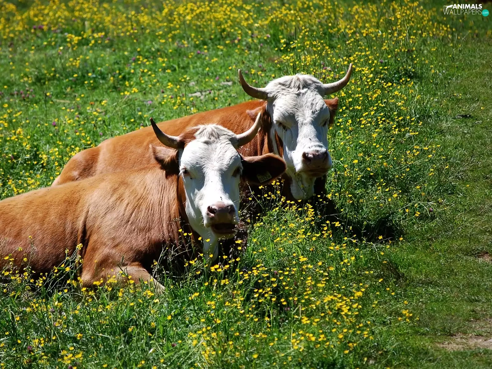 Floral, Two, Cows, Meadow