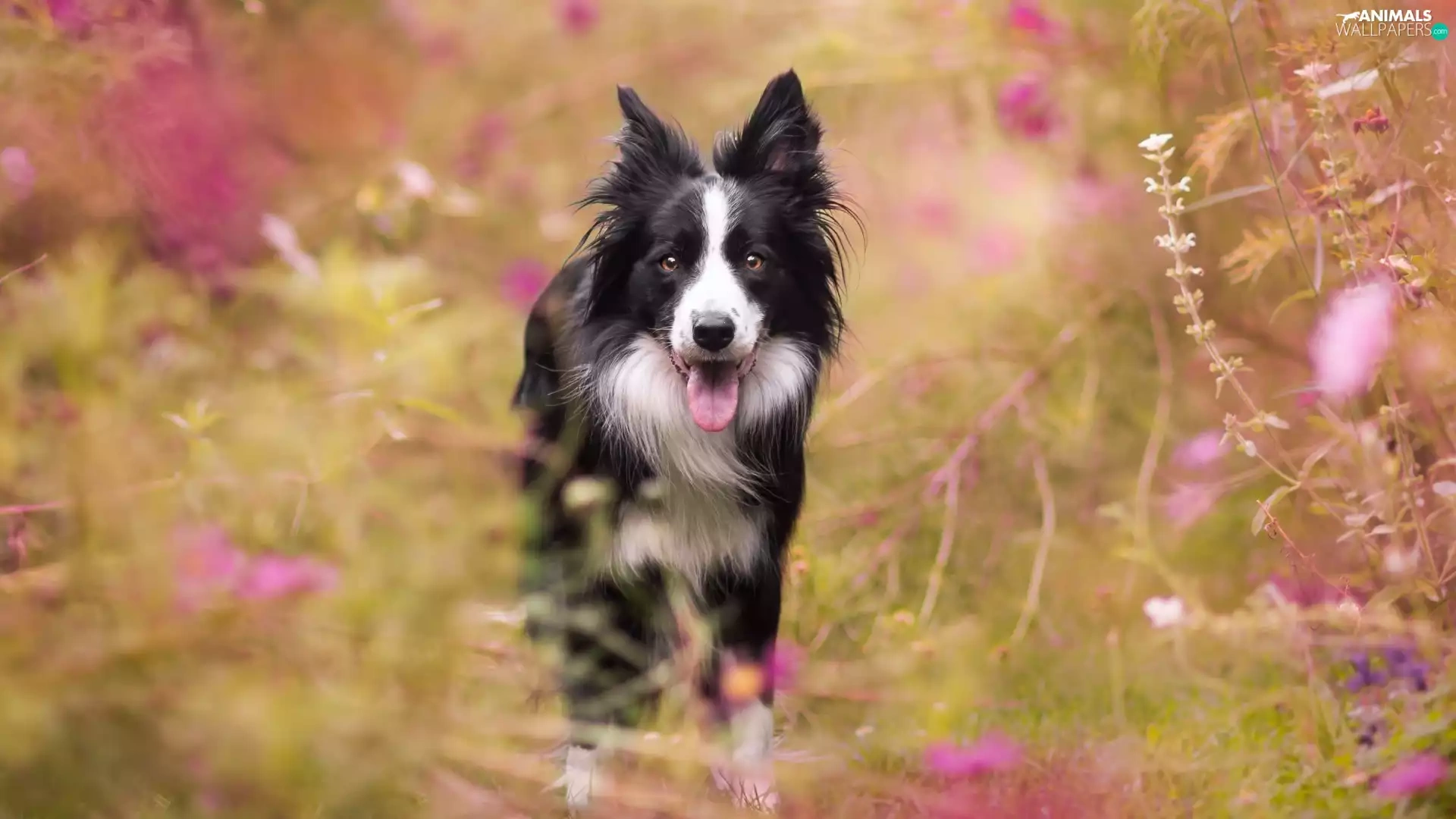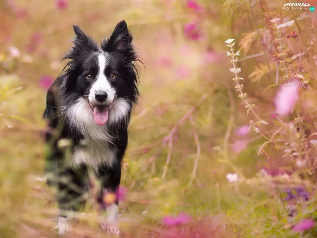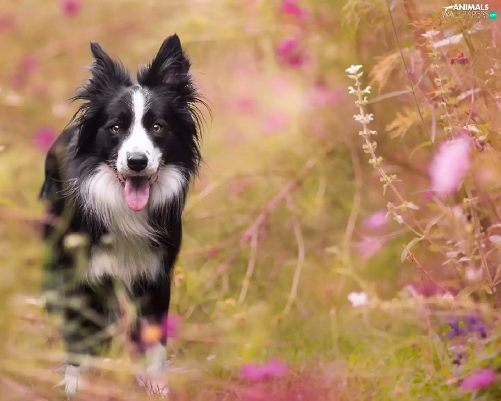 Flowers, Border Collie, Meadow