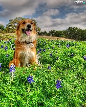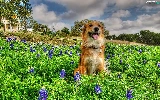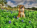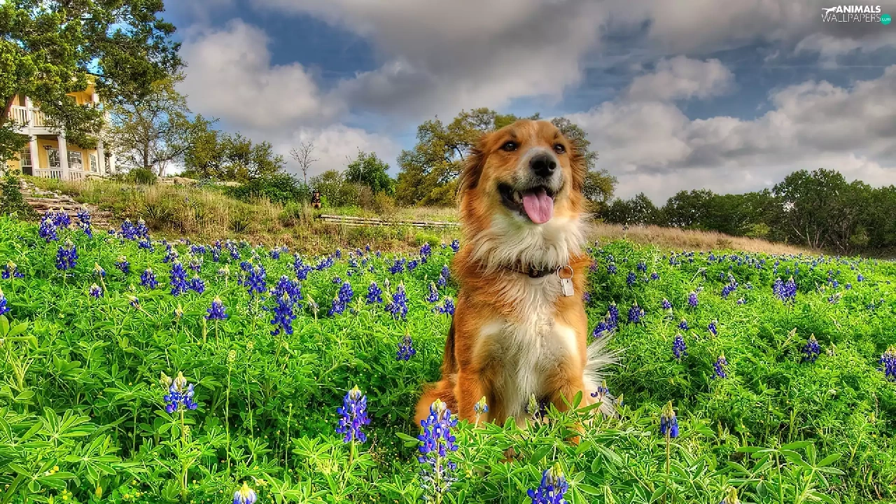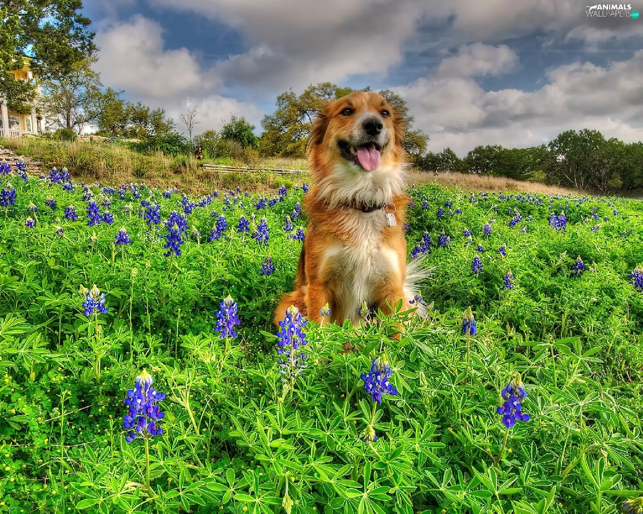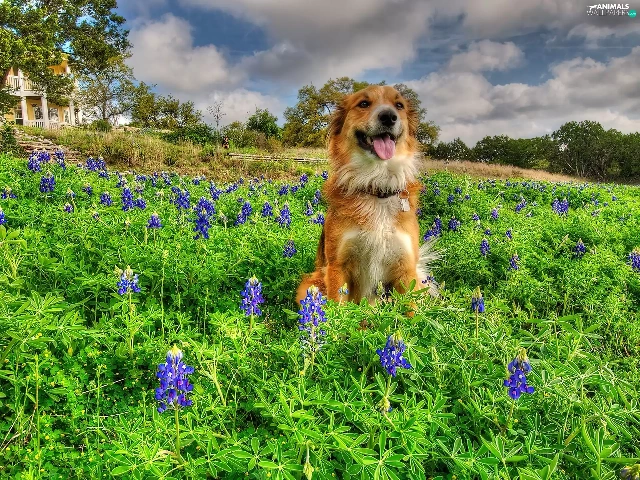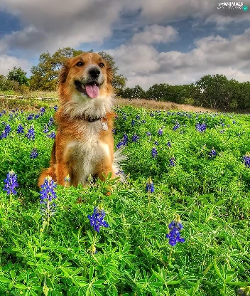 Meadow, doggy, Flowers