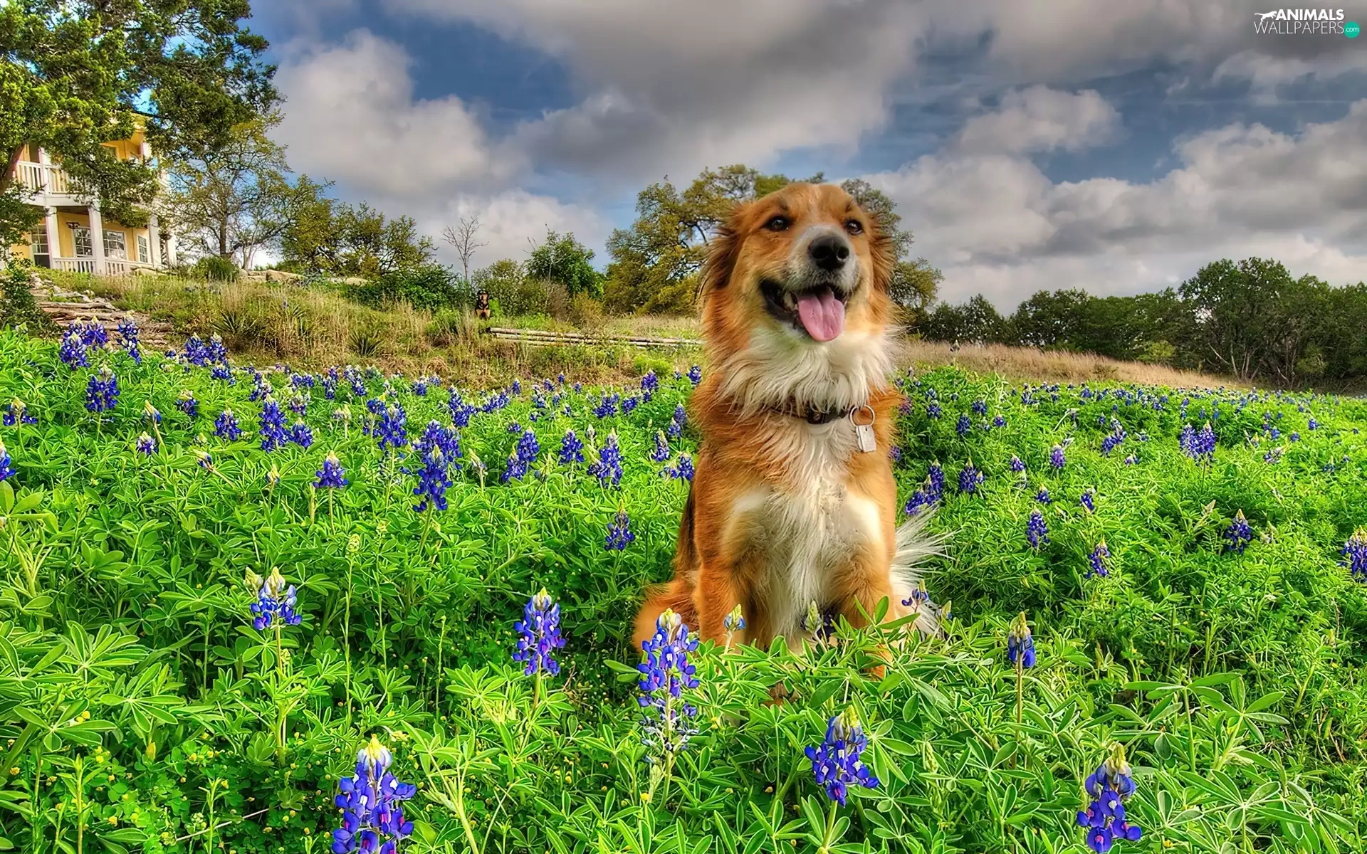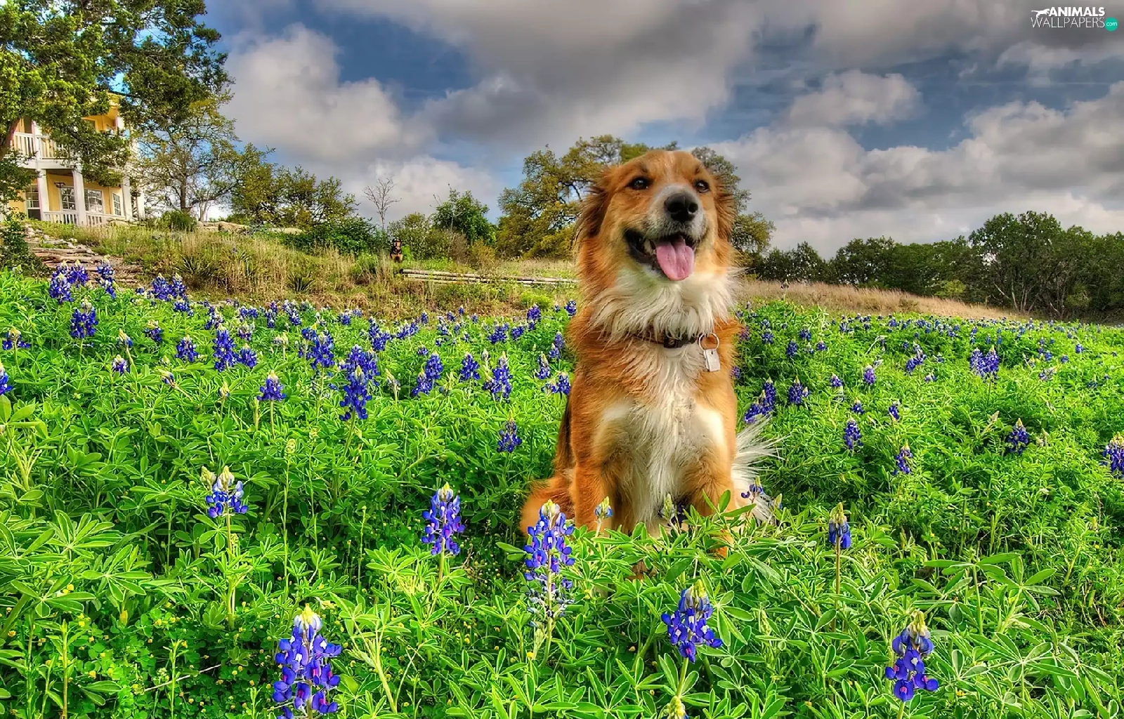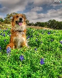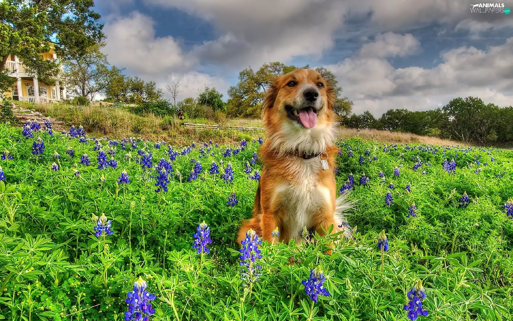 Meadow, doggy, Flowers