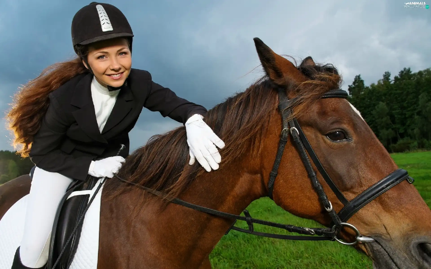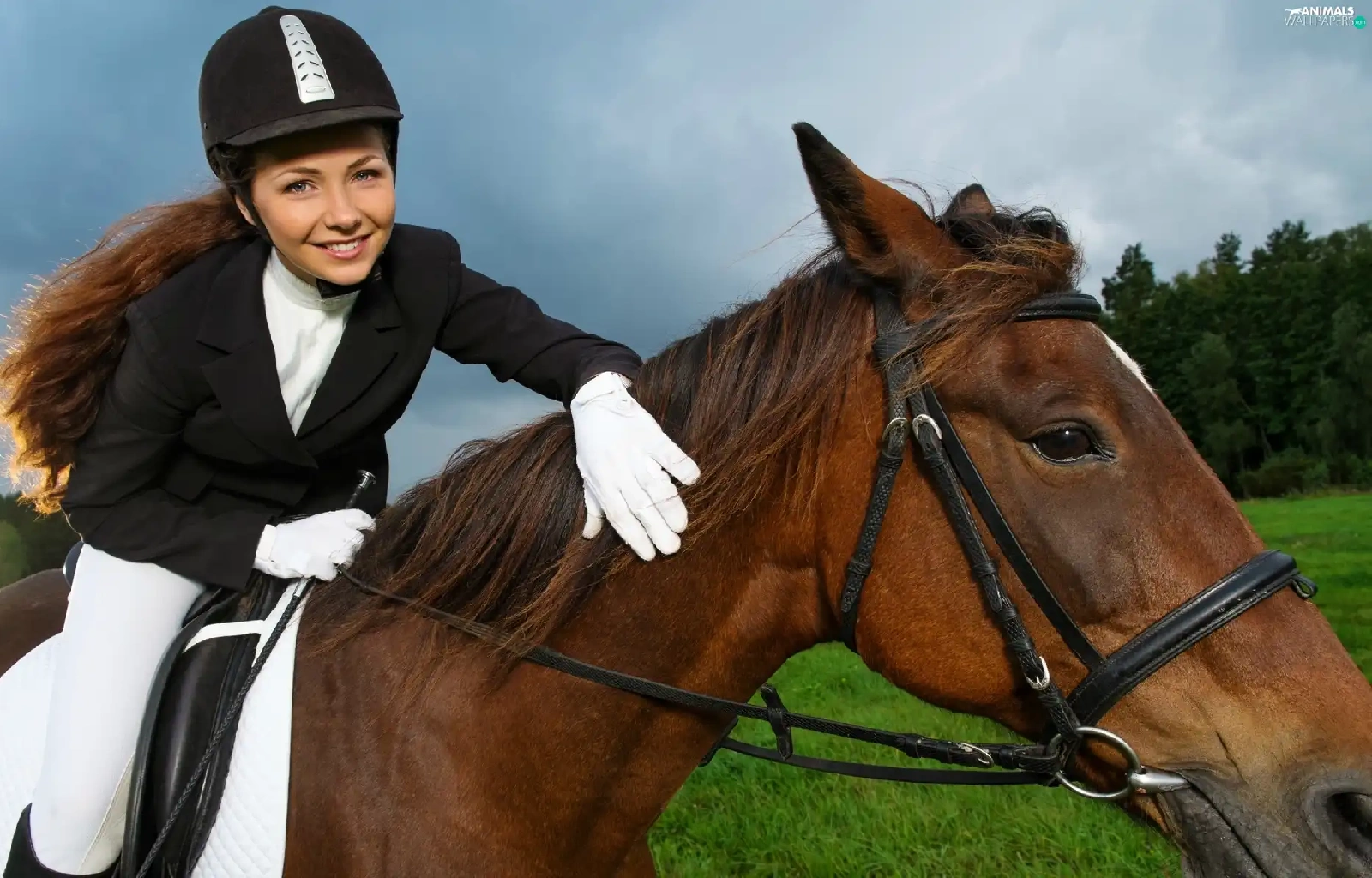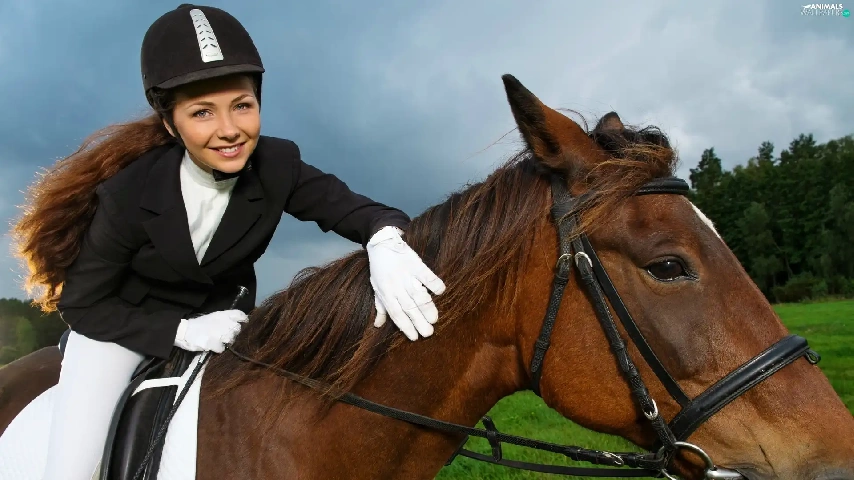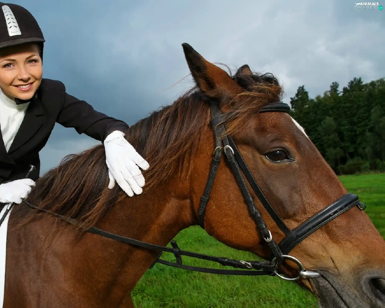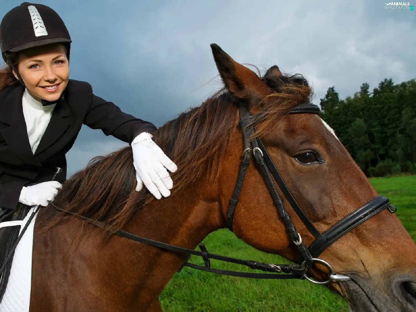 Meadow, forest, Jockey, Horse, girl