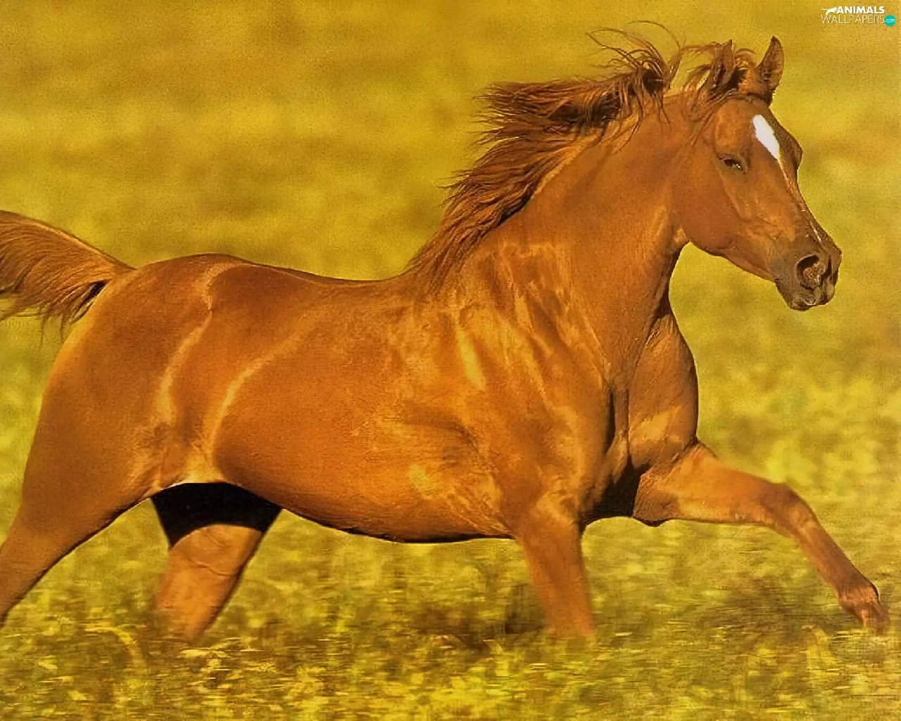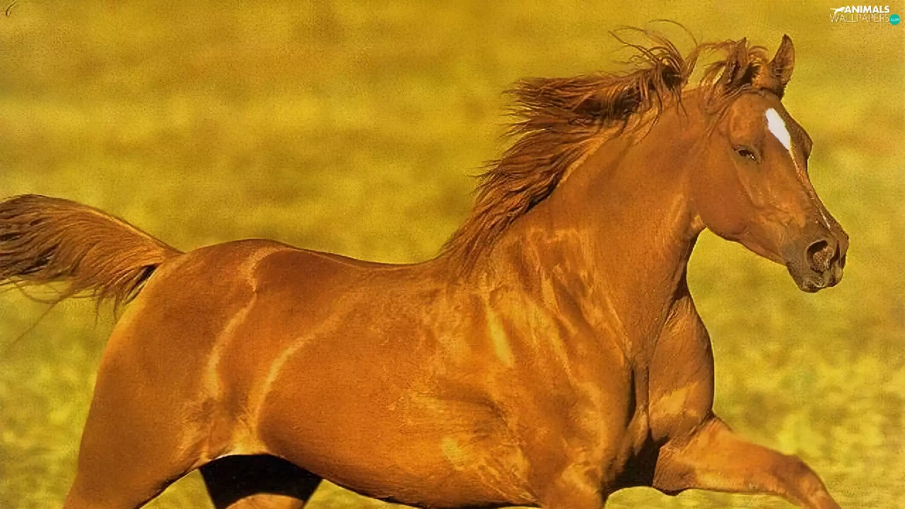 brown, Meadow, gallop, sea-horse