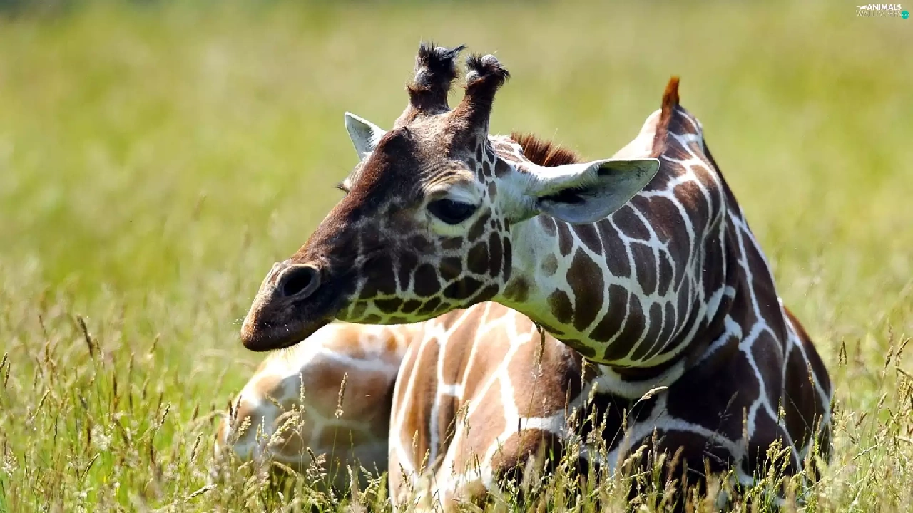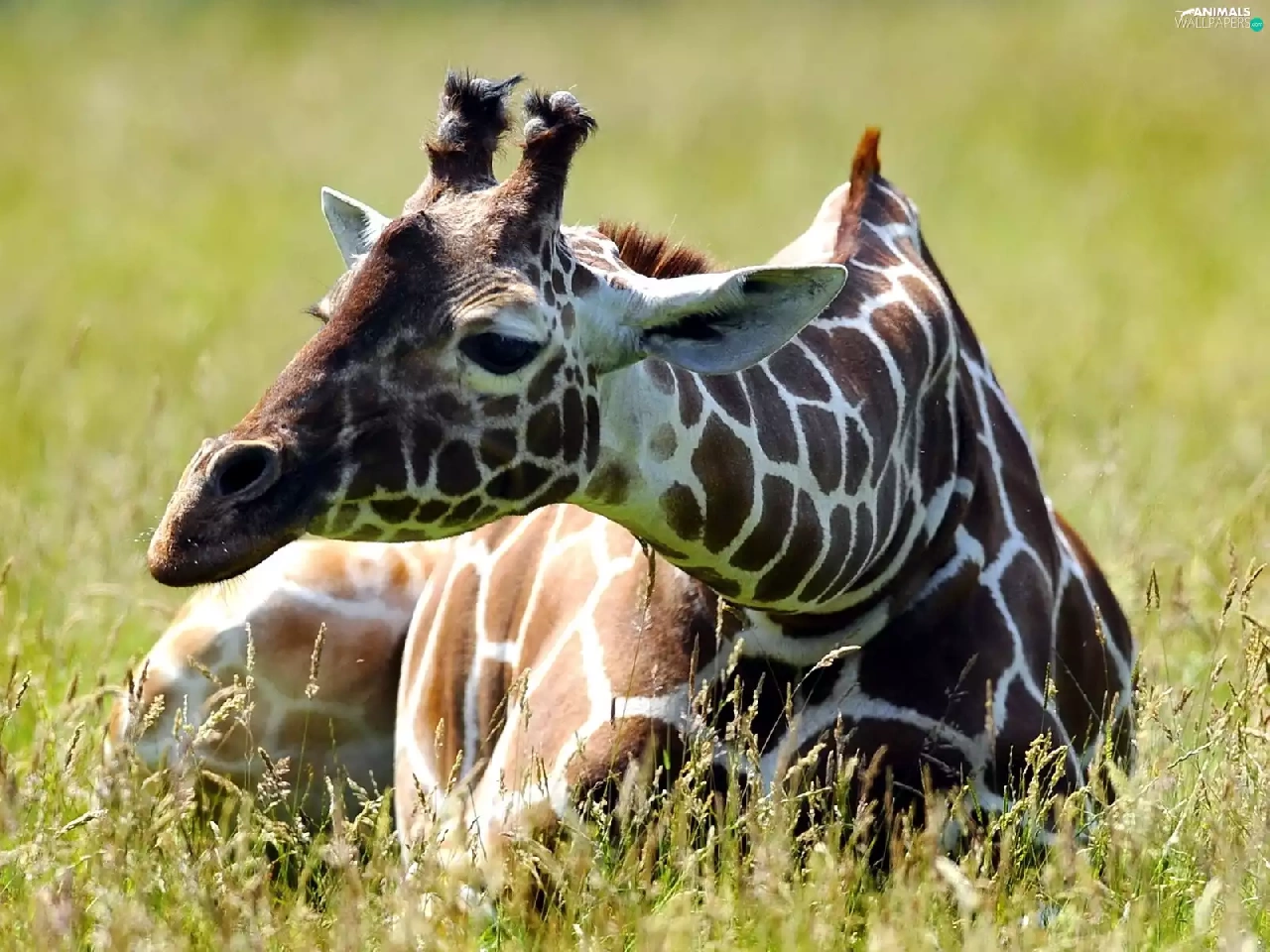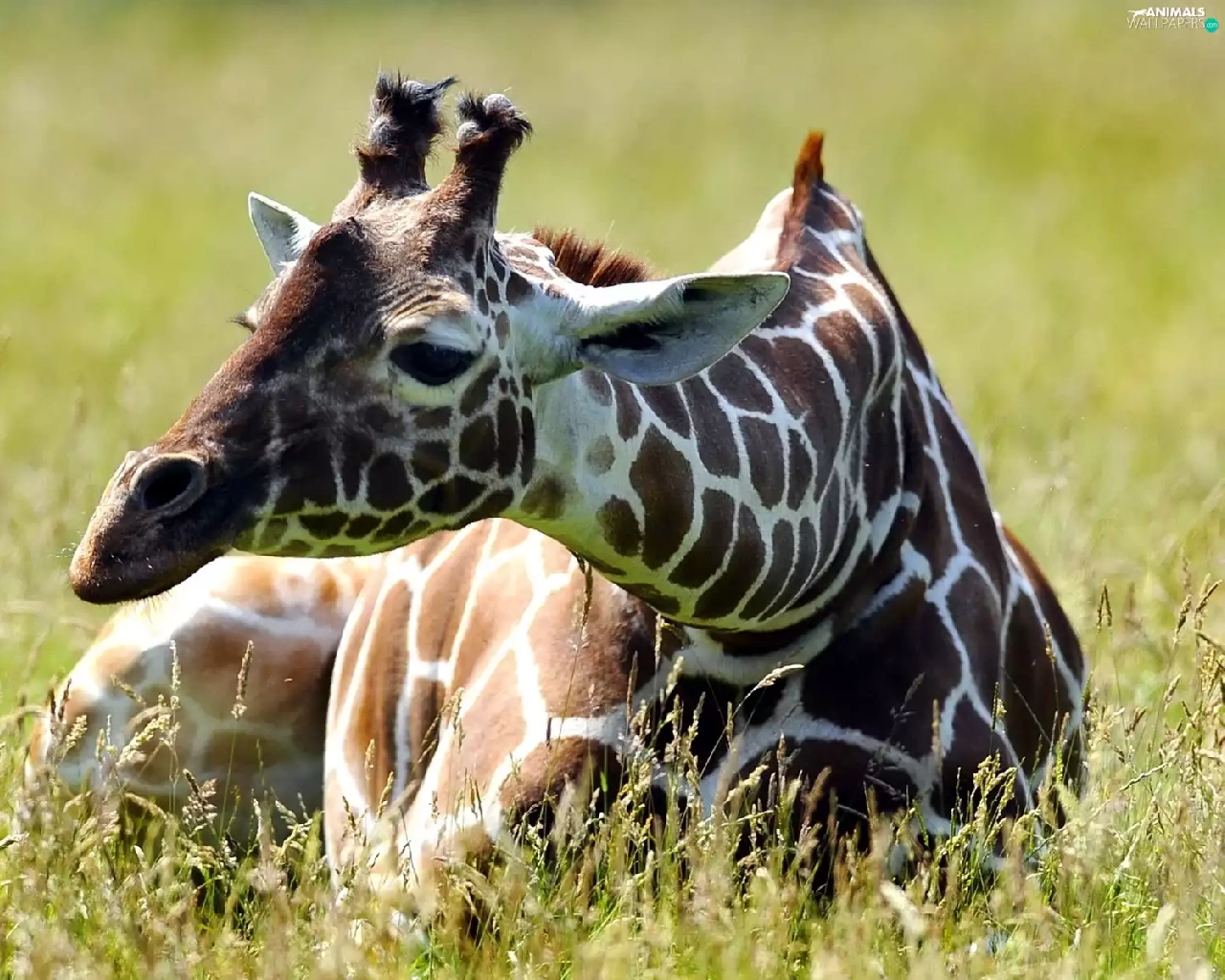 Meadow, Resting, giraffe