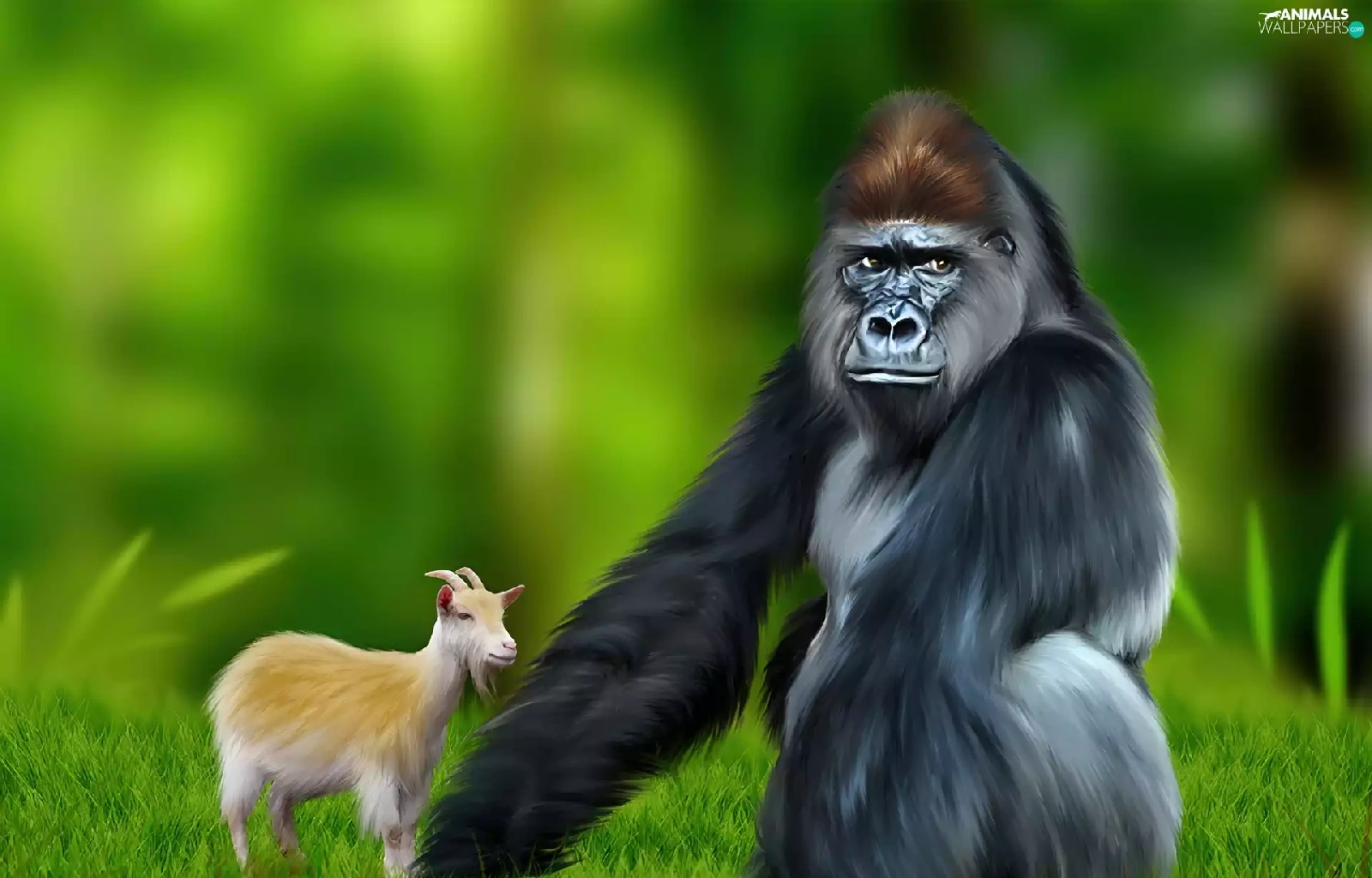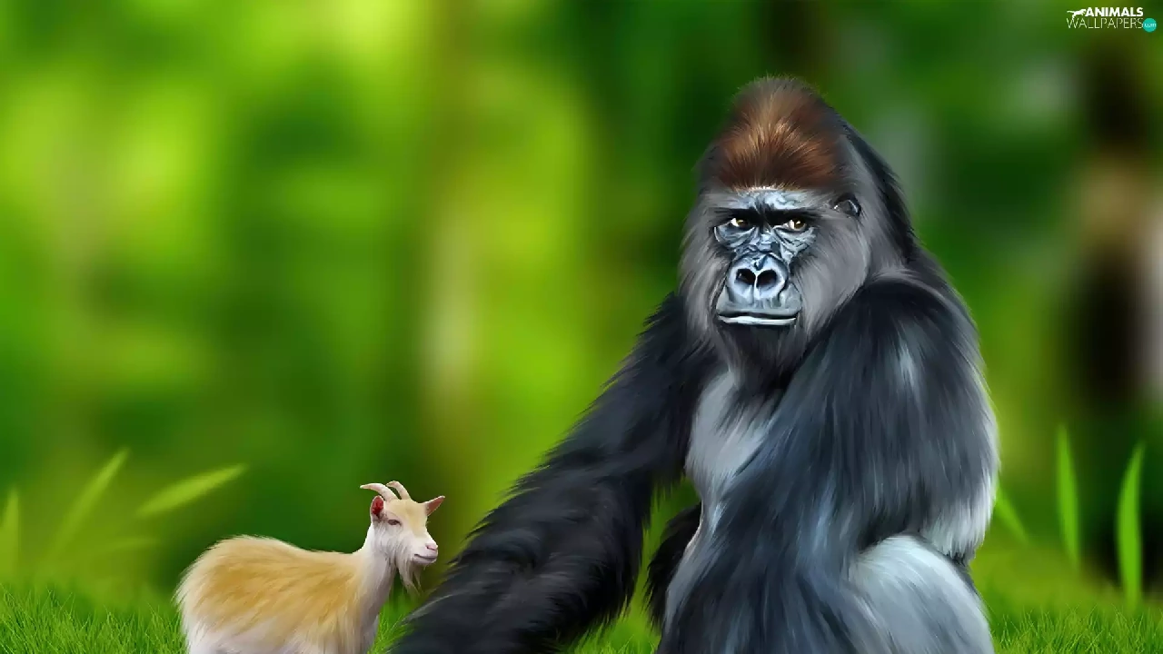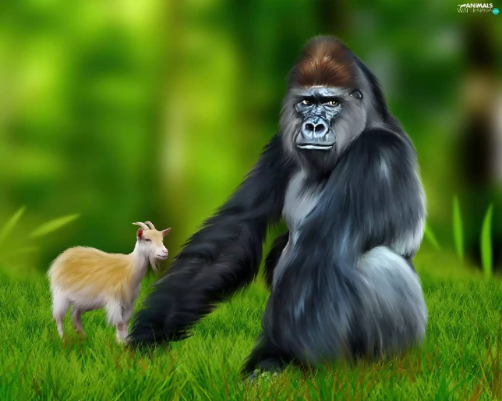 Meadow, gorilla, Goat