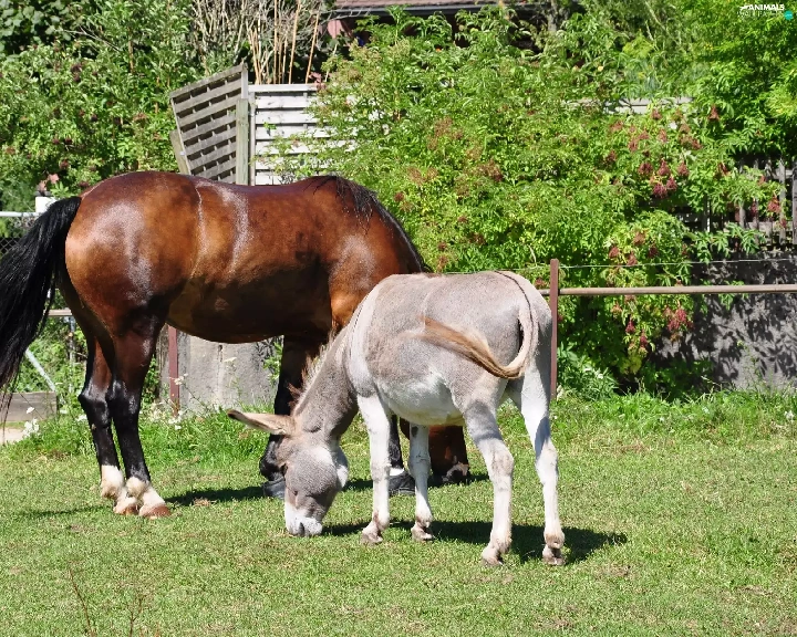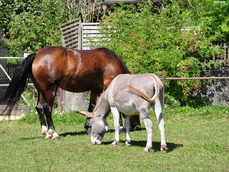 Meadow, Donkey, Horse