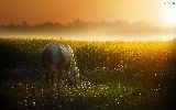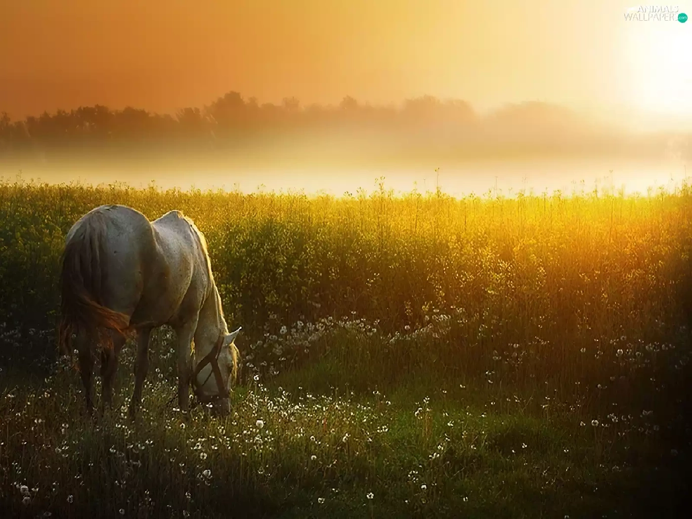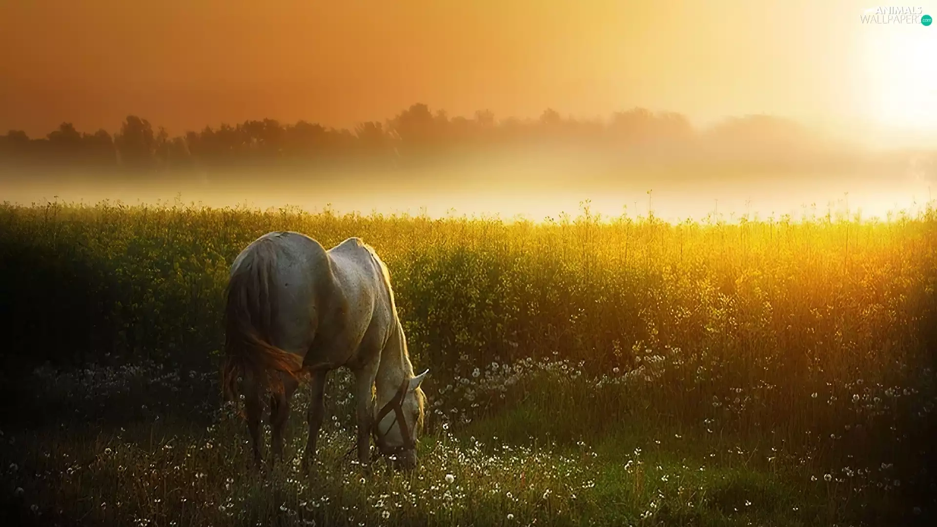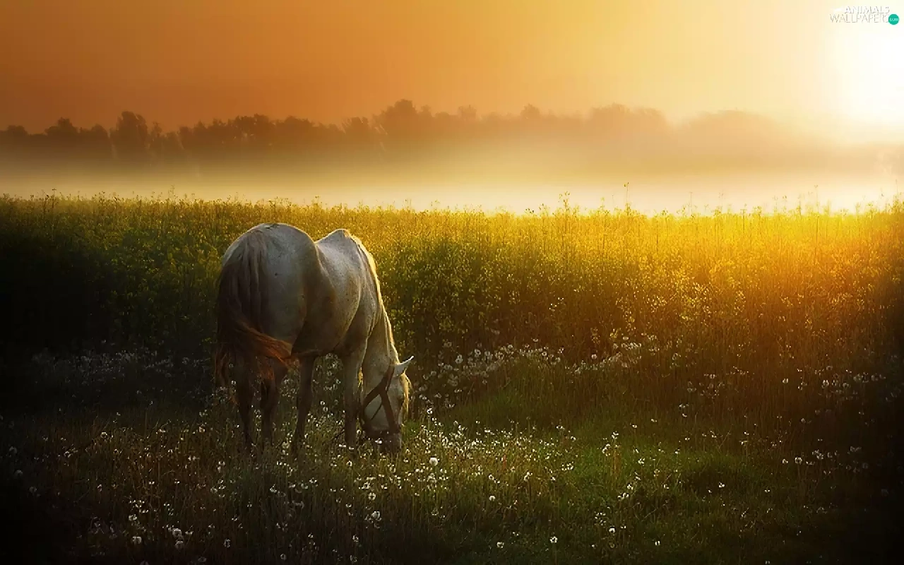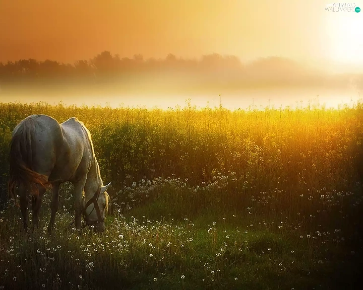 Horse, west, sun, Meadow
