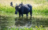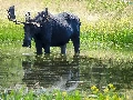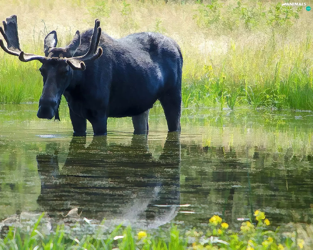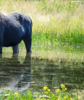 moose, grass, water, Meadow