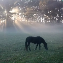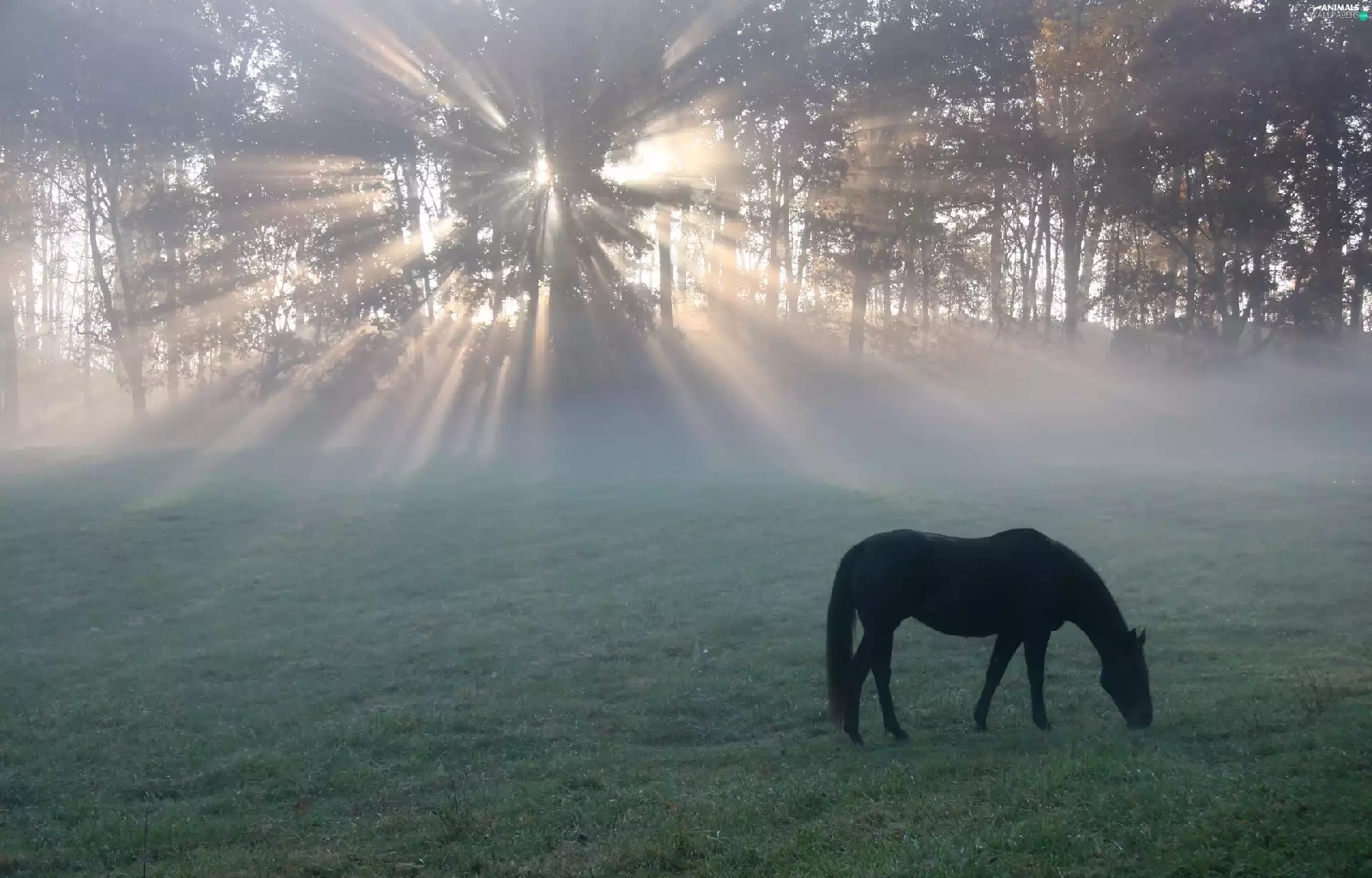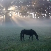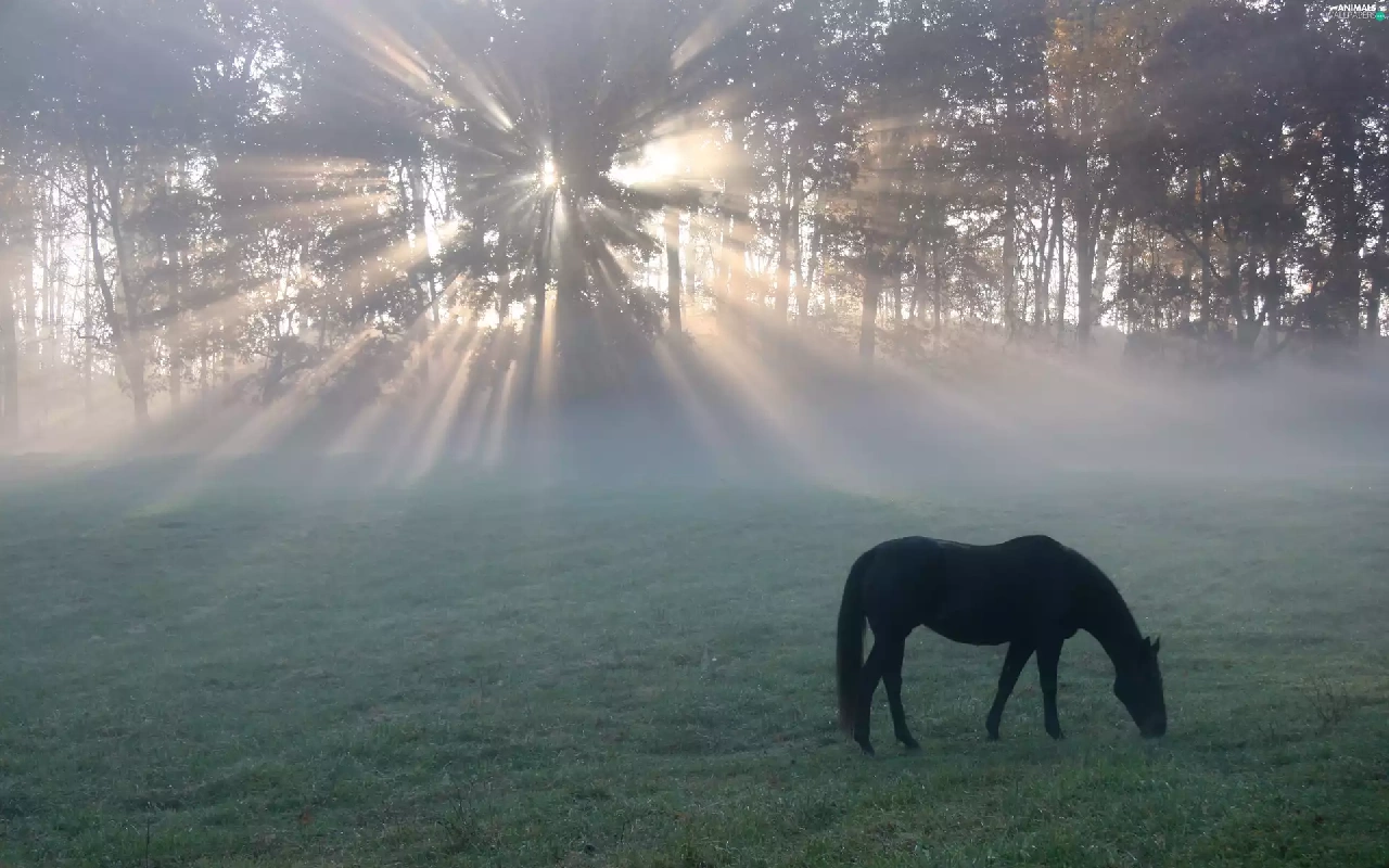 sun, Meadow, morning, rays, Horse
