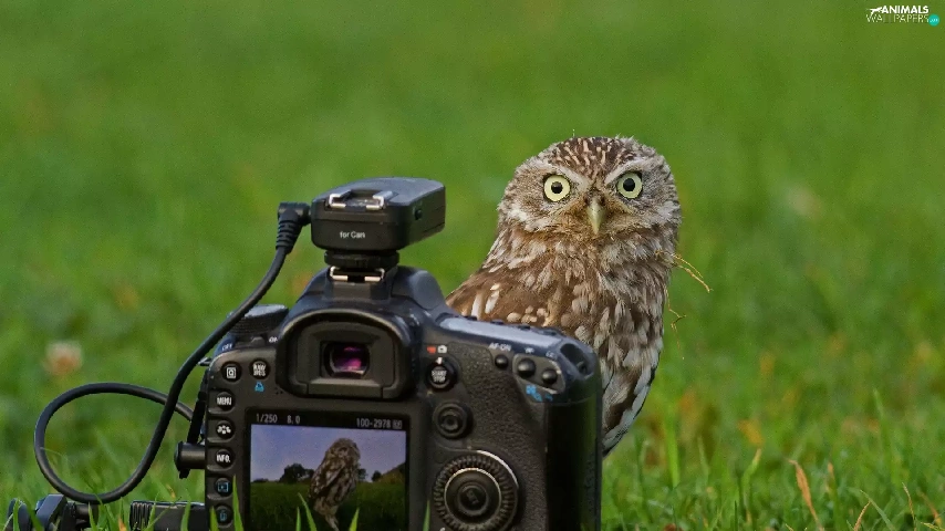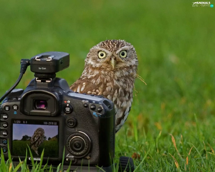 owl, Camera, photographic, Meadow