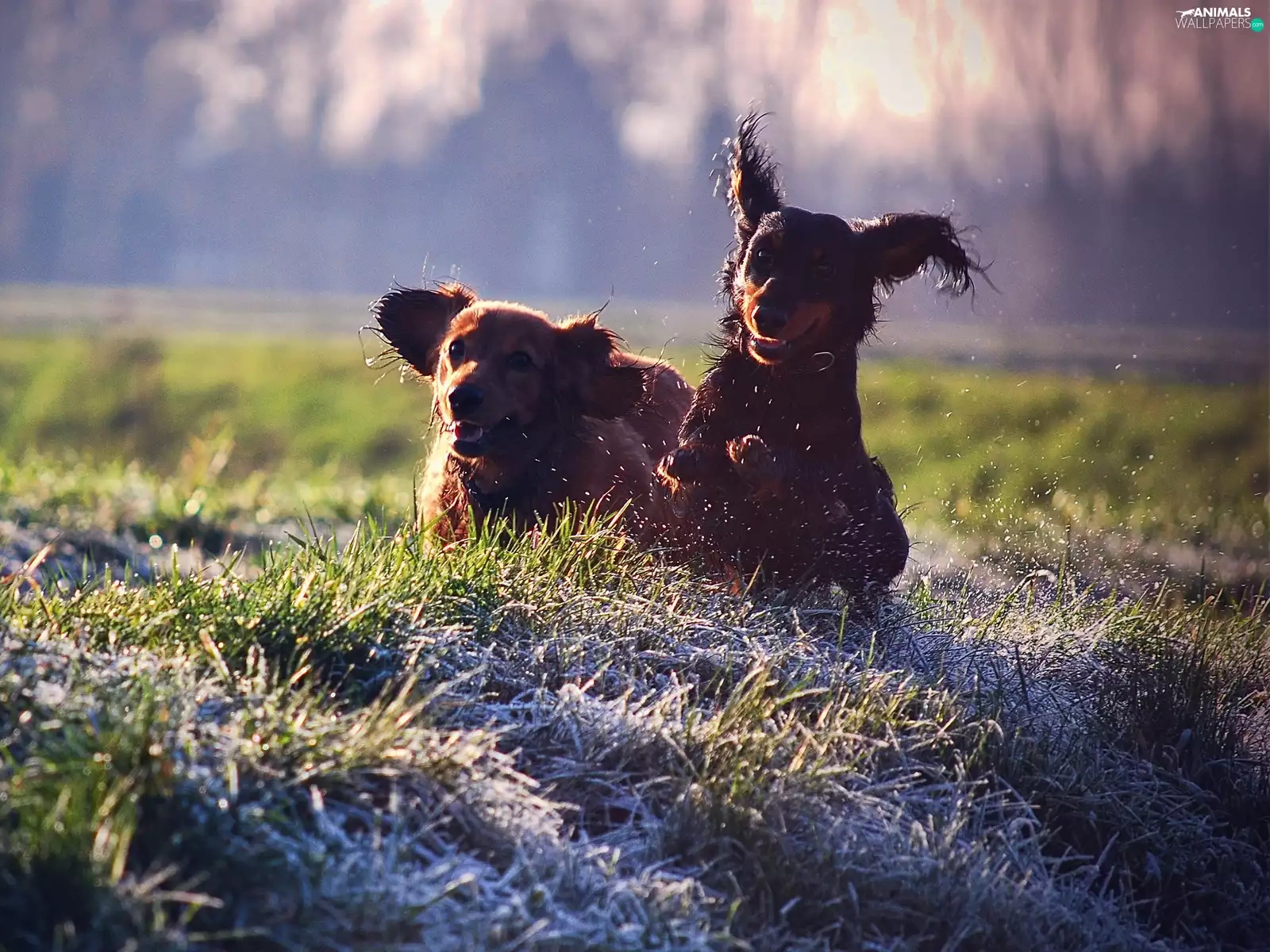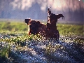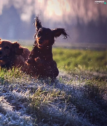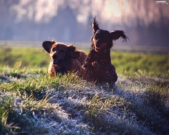 Meadow, Dogs, play