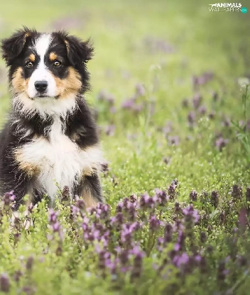 Australian Shepherd, Puppy, Meadow, Australian Shepherd