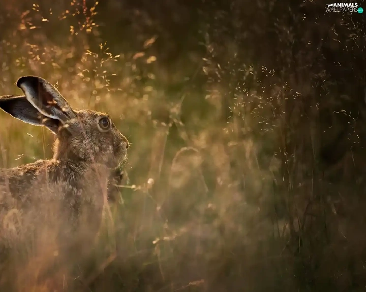 grass, Wild Rabbit, Meadow