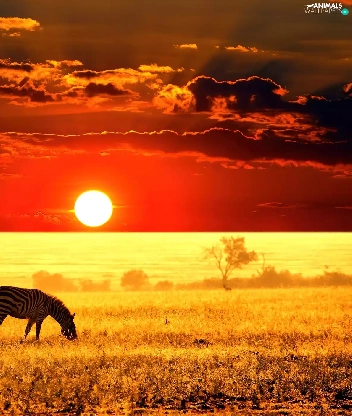 zebra, west, sun, Meadow
