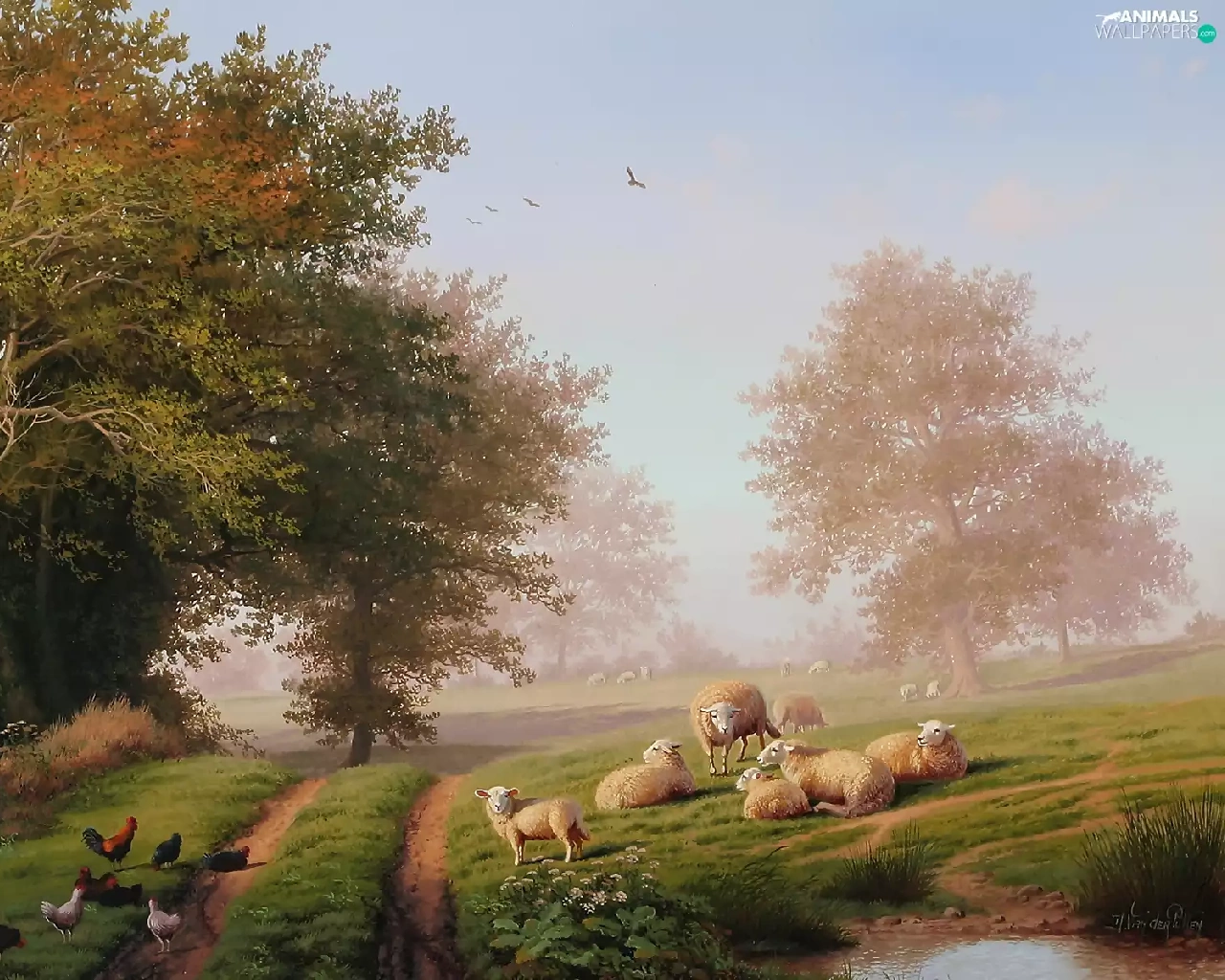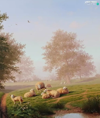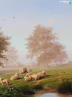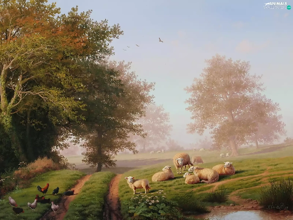 trees, viewes, Image, Way, copy, hens, Sheep, medows