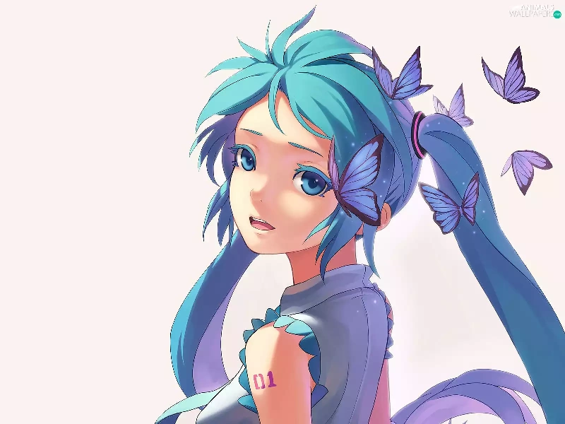 Manga Anime, Hatsune Miku, butterfly, Vocaloid