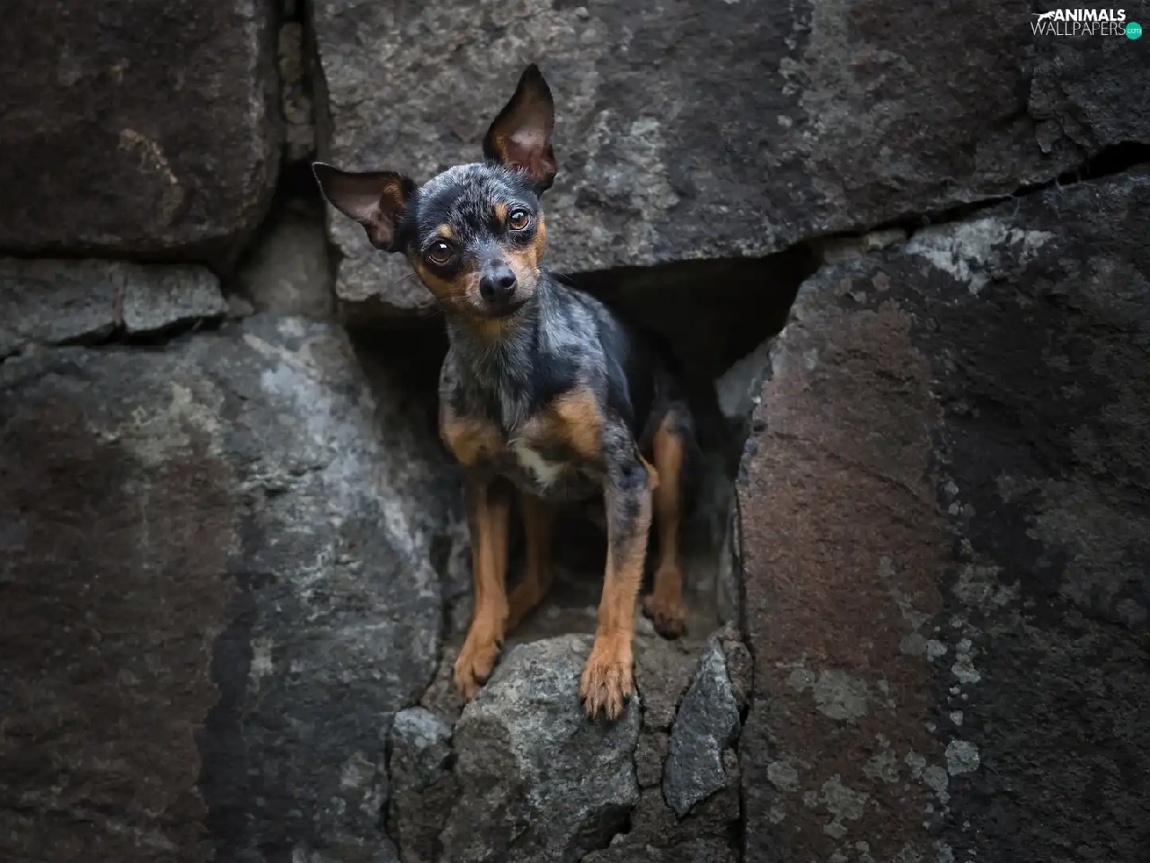 wall, dog, miniature Pinscher