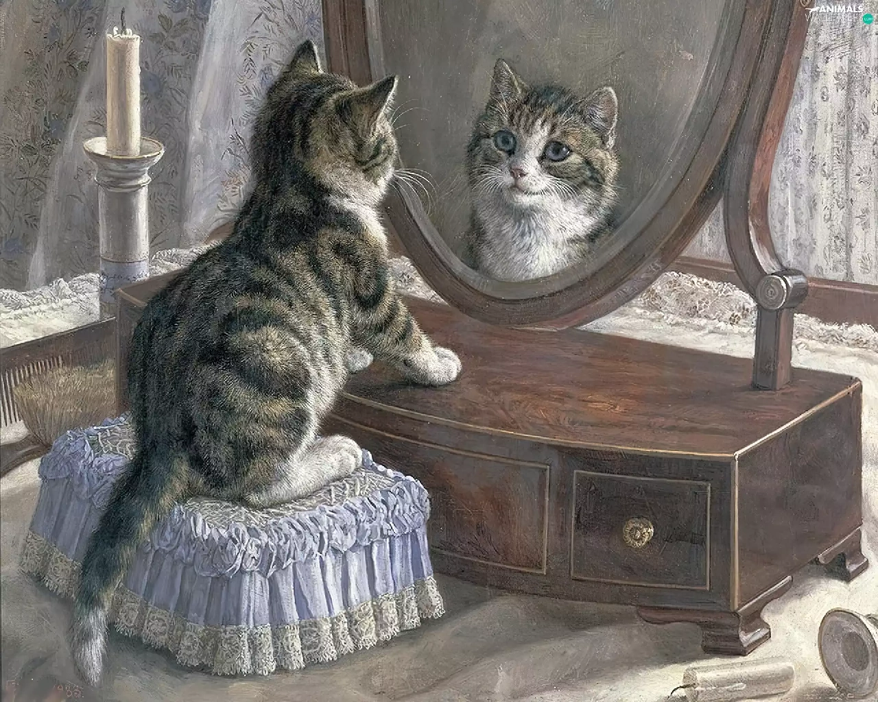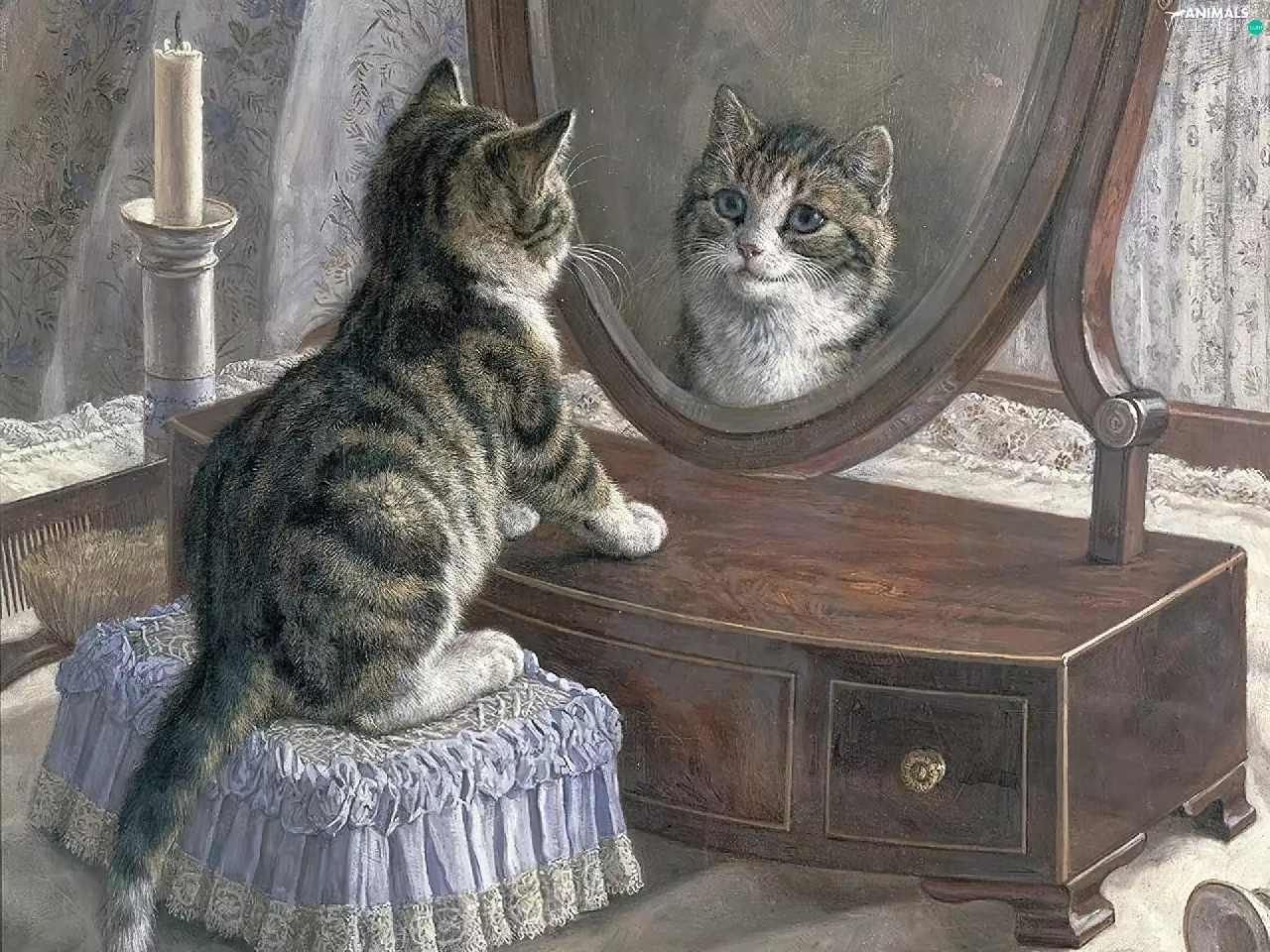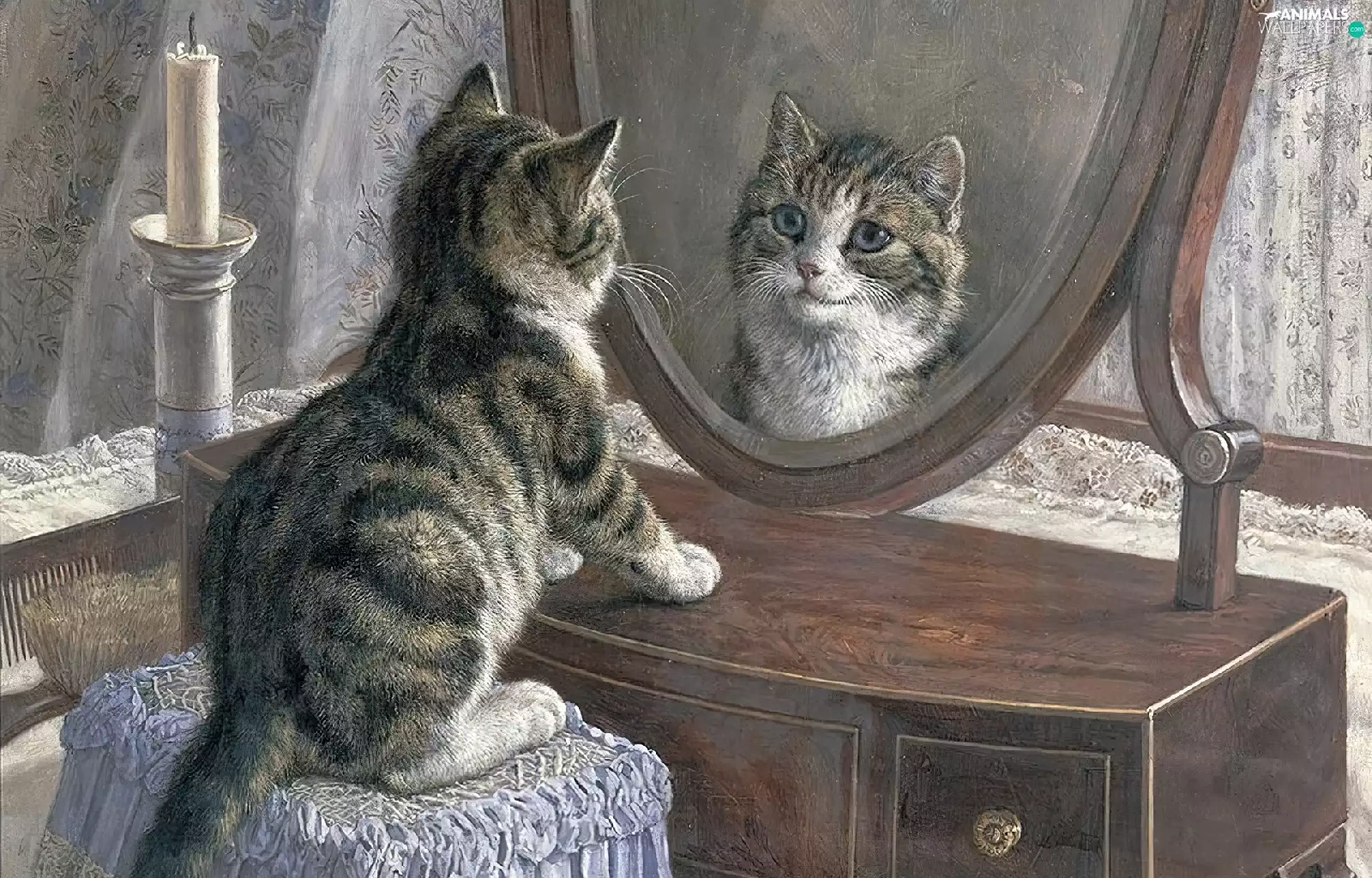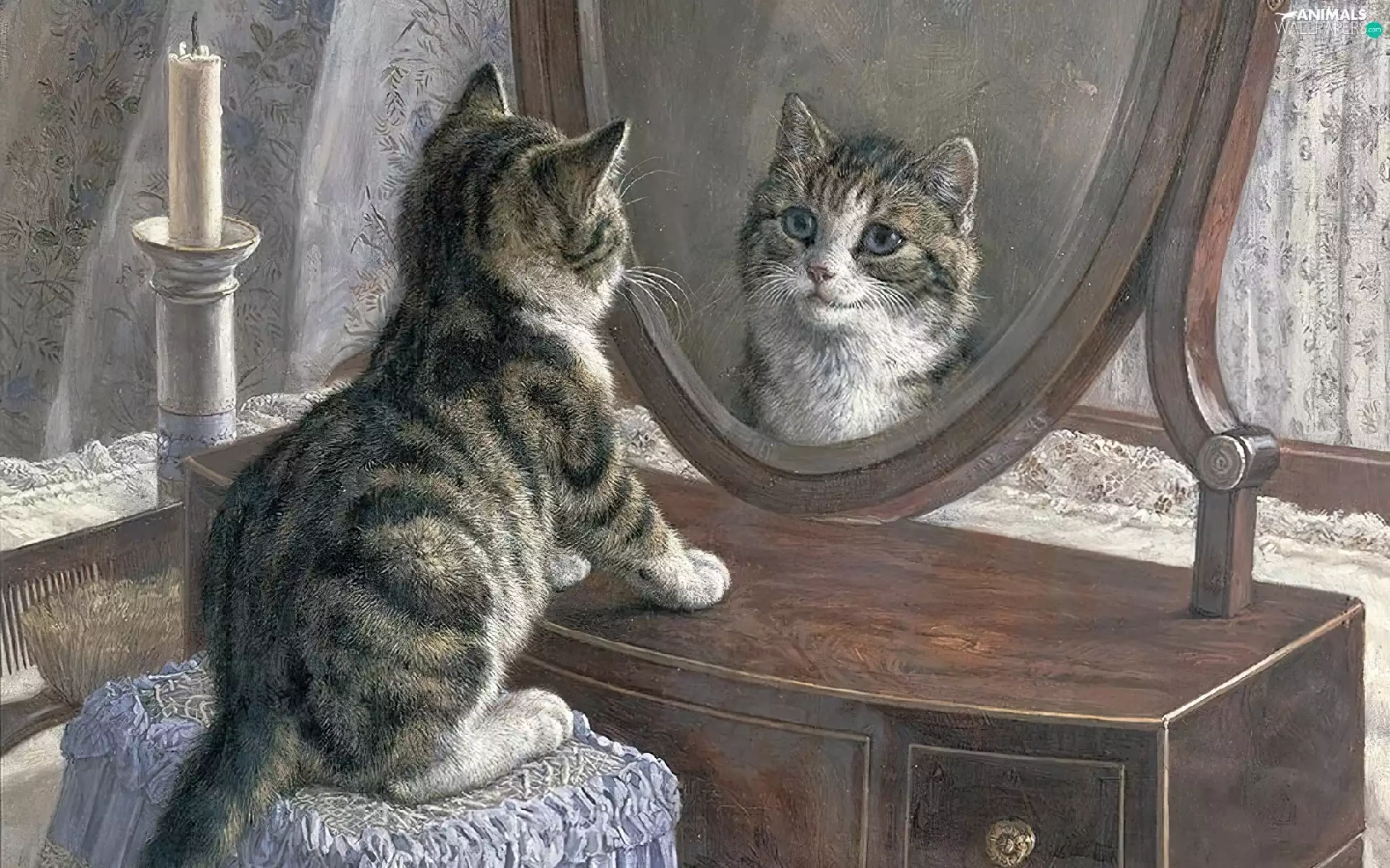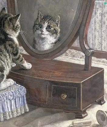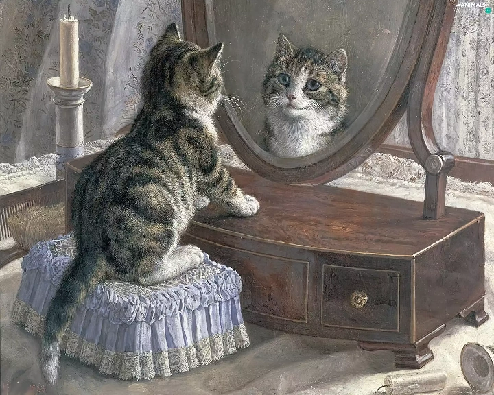 Mirror, small, kitten