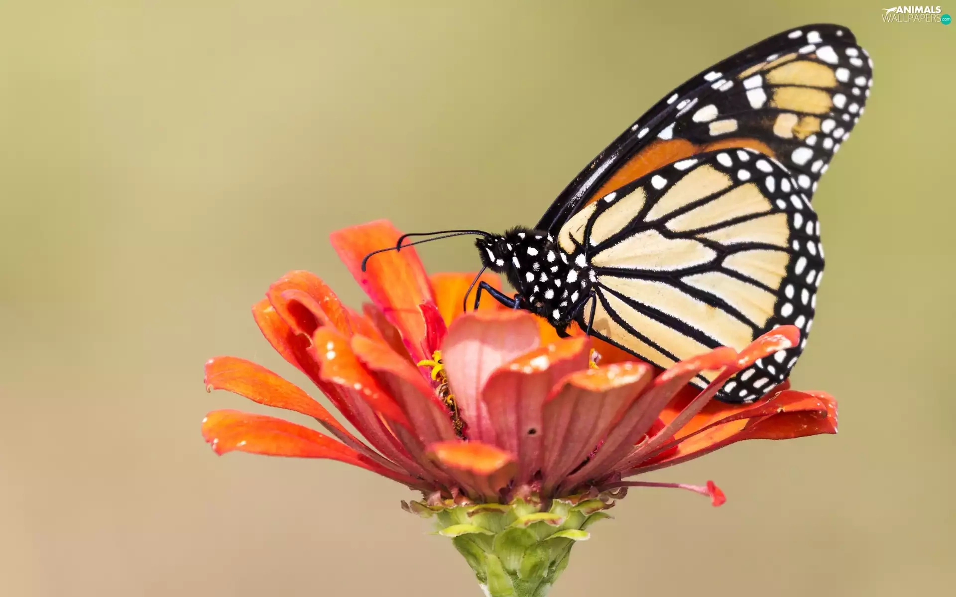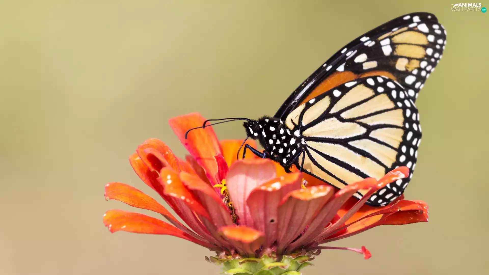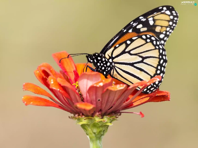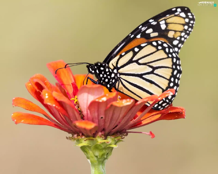 Colourfull Flowers, butterfly, Monarch