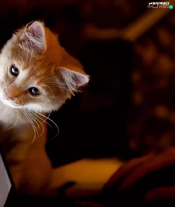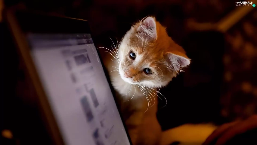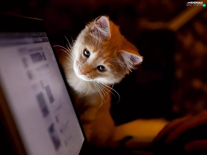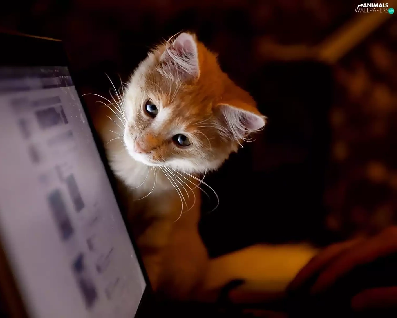kitten, Computer, ginger, monitor