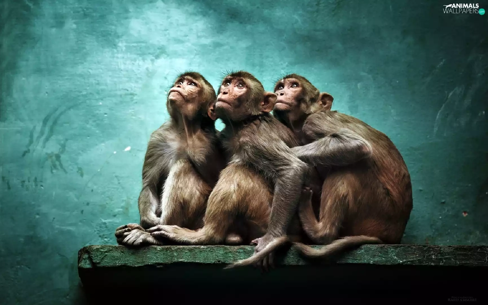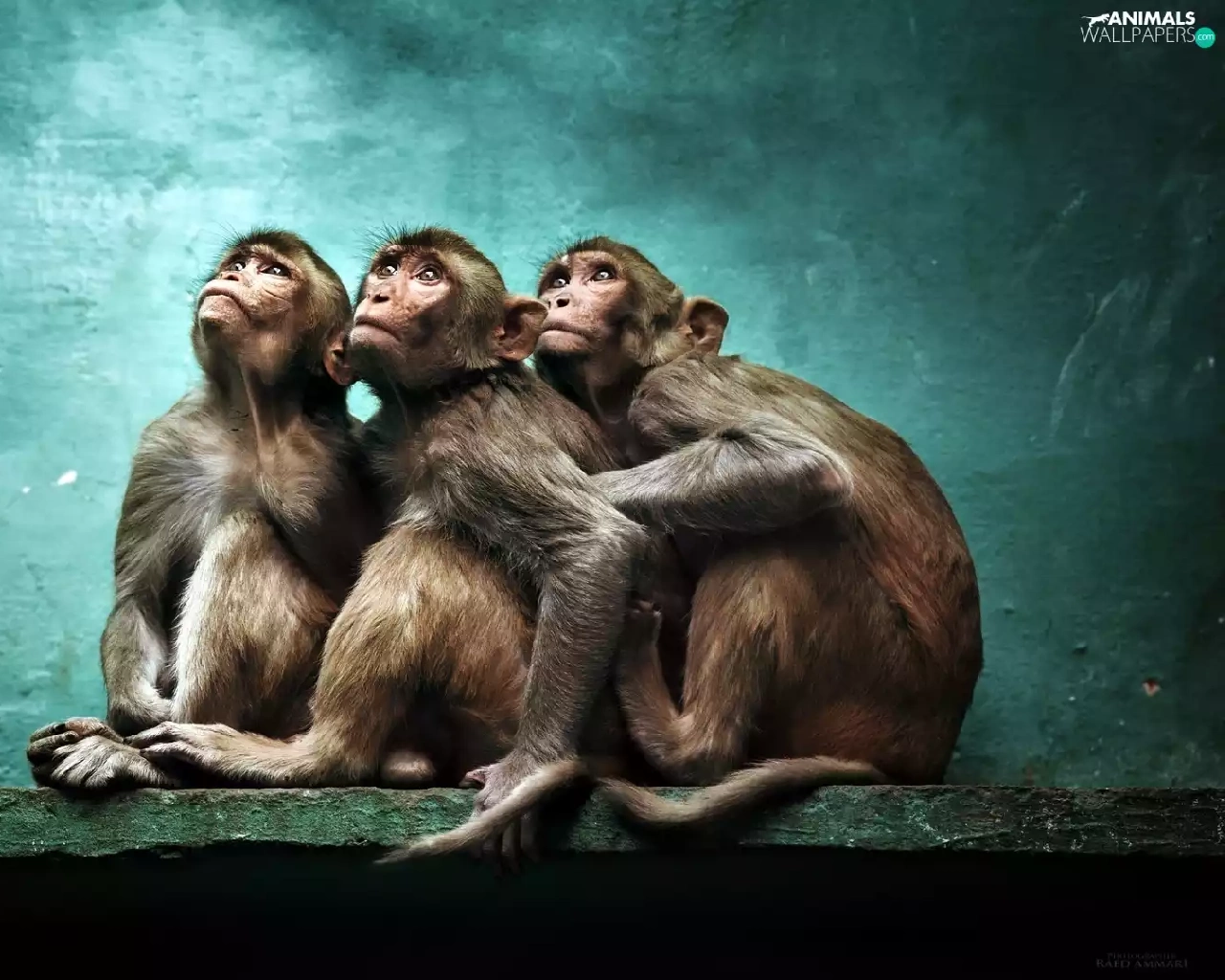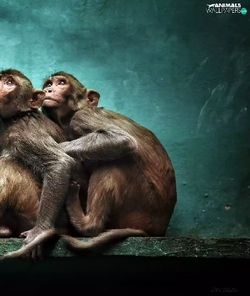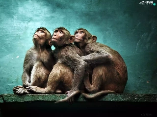 Rhesus Macaque, Three, green ones, background, Rhesus, monkey
