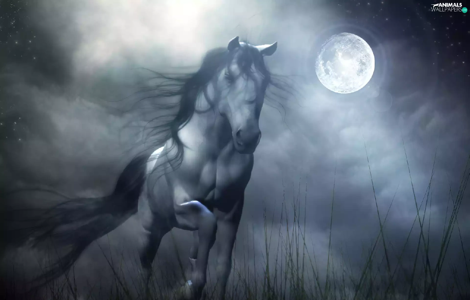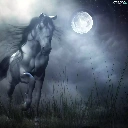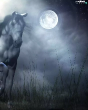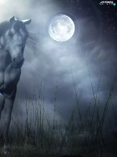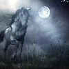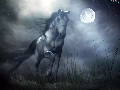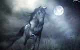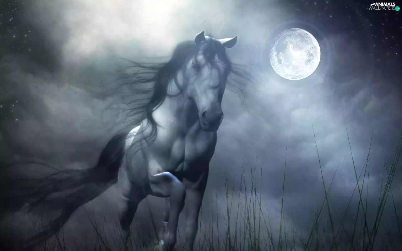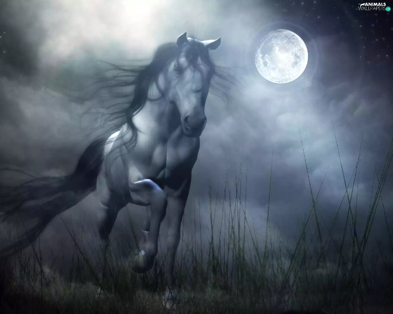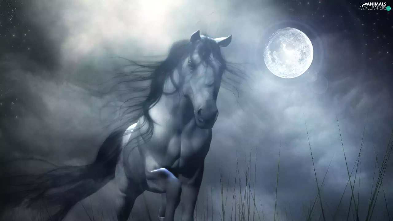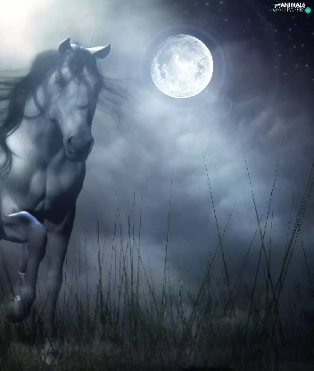Night, Horse, gallop, moon