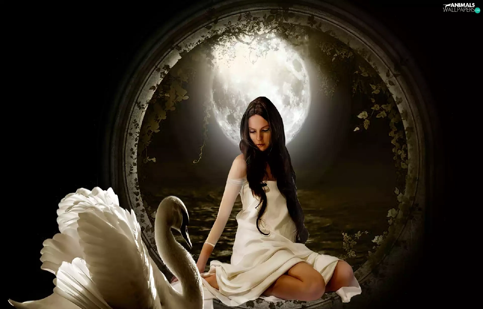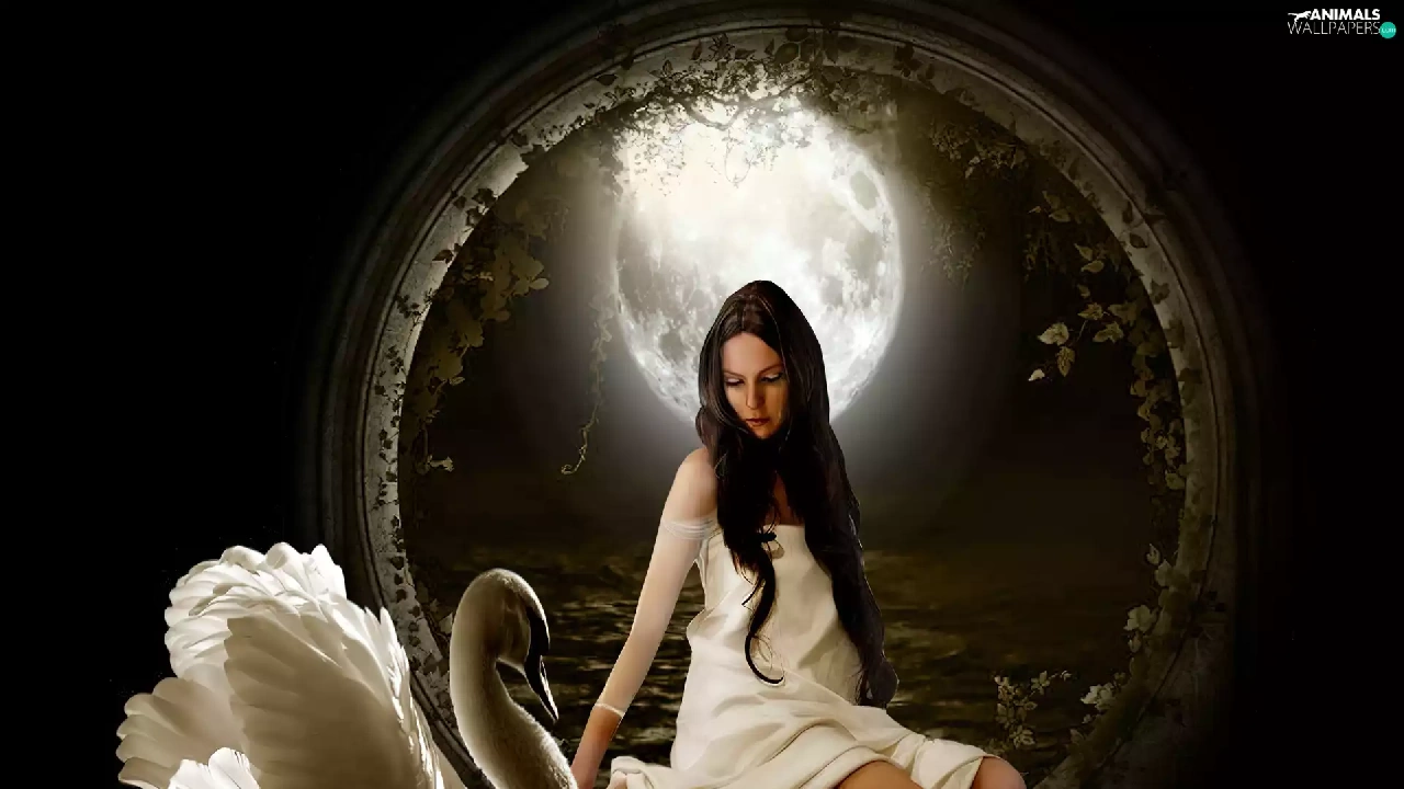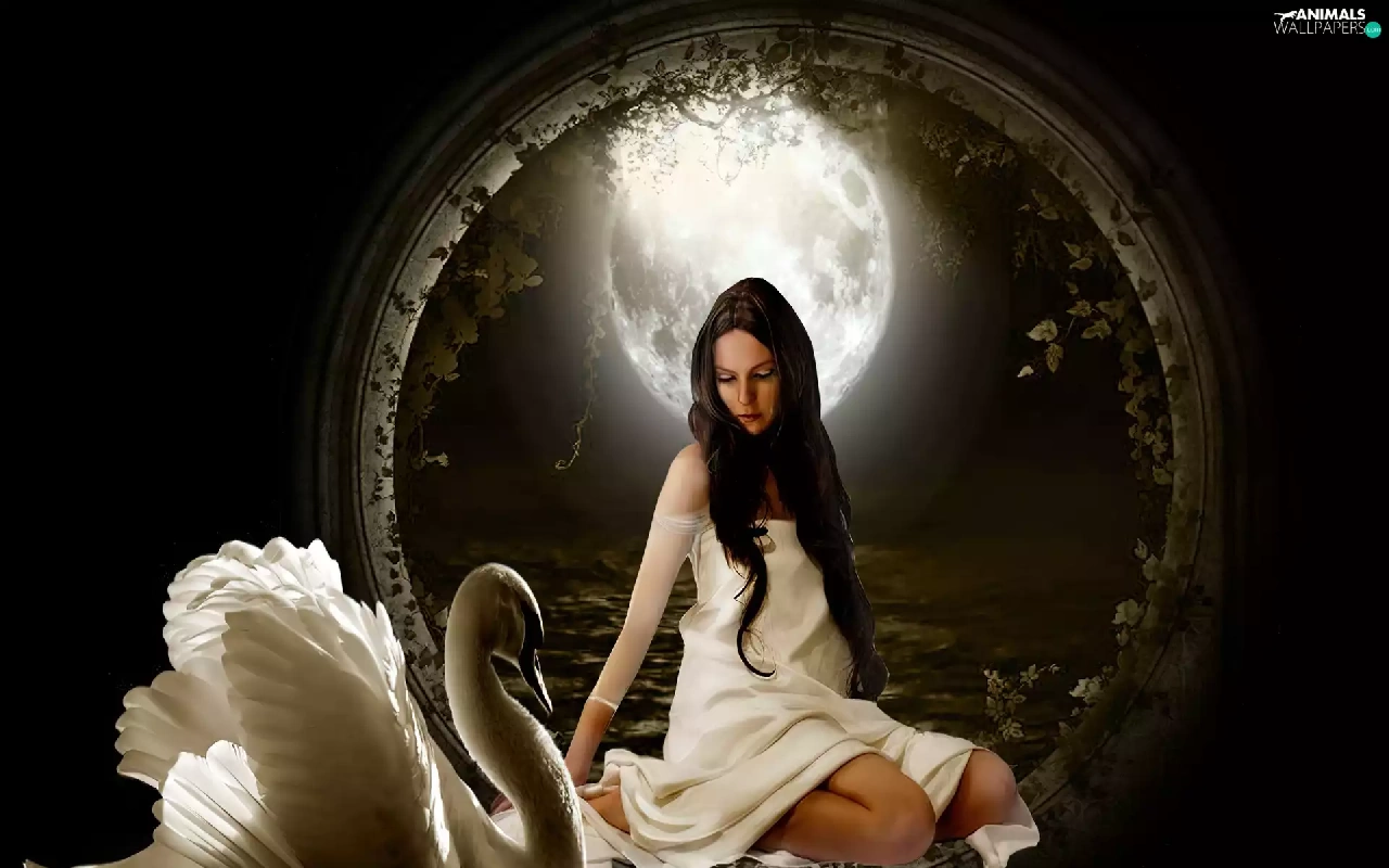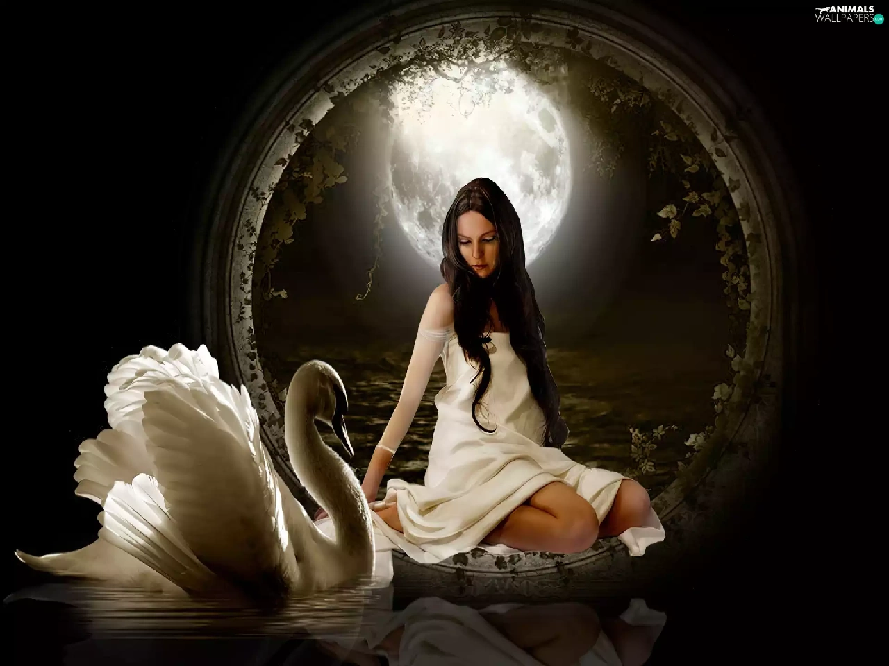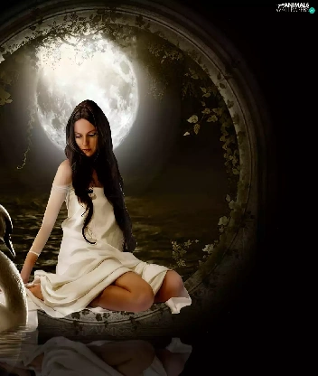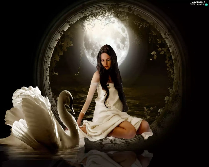 moon, Women, Swans