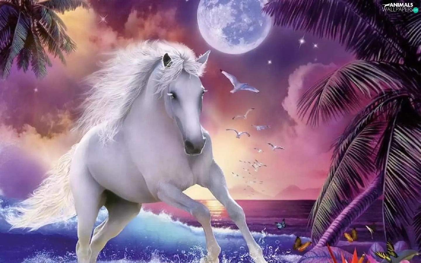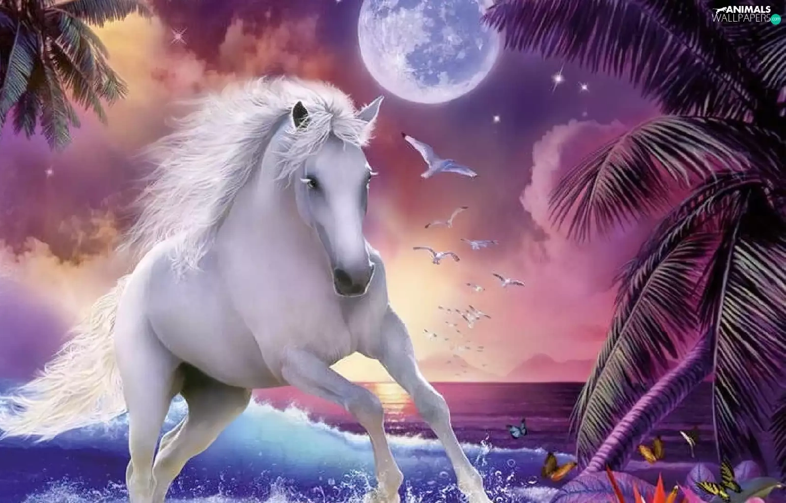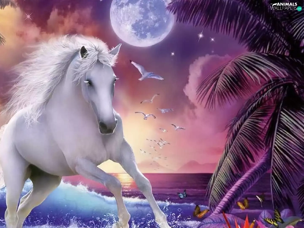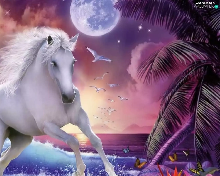 moon, Horse, water