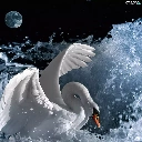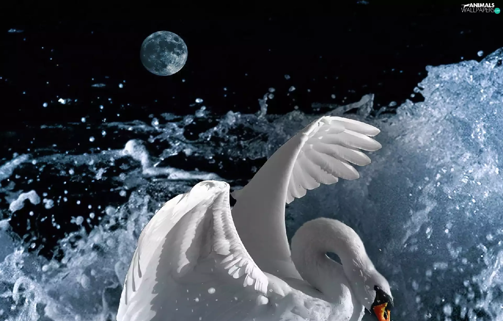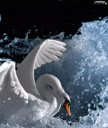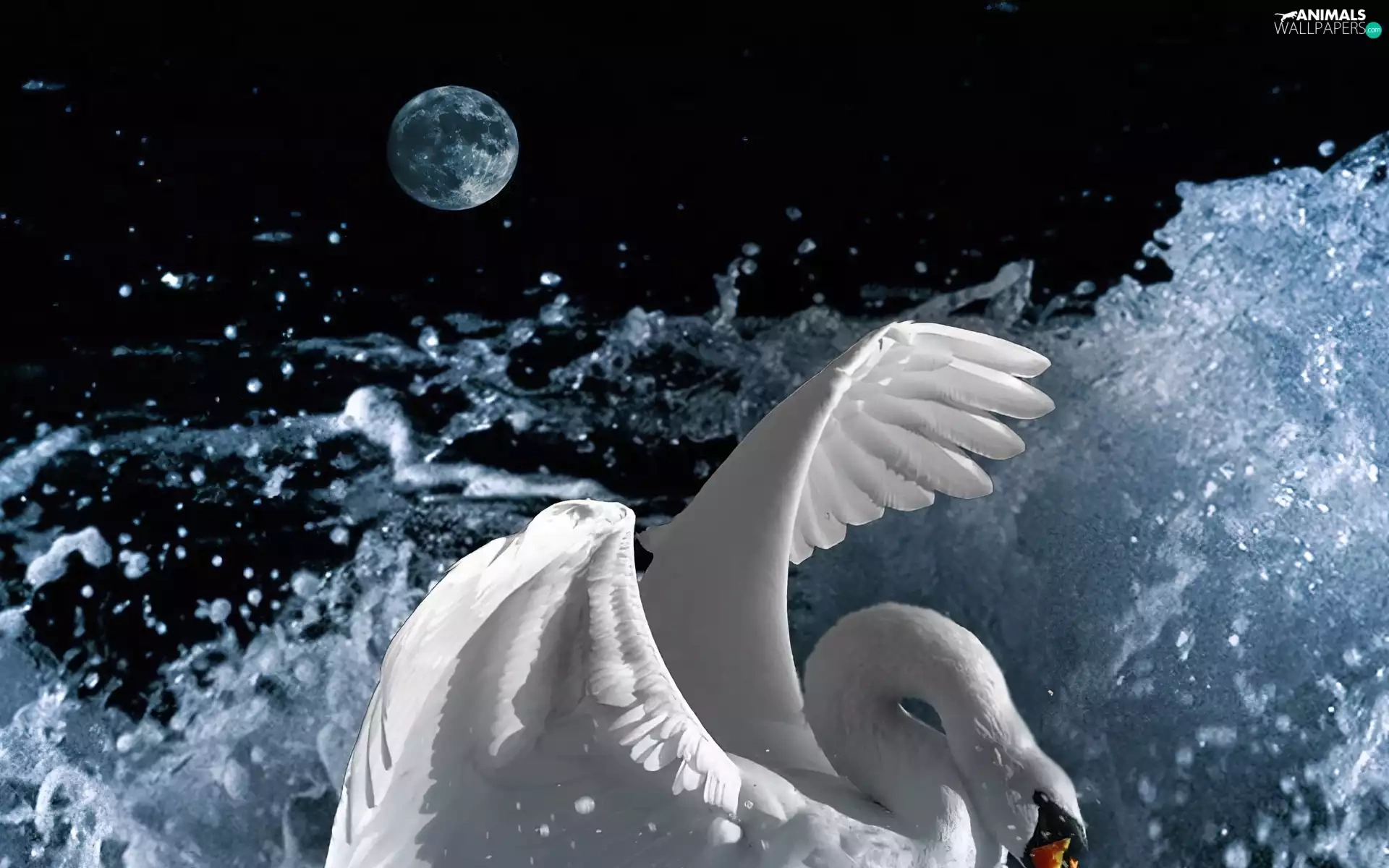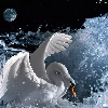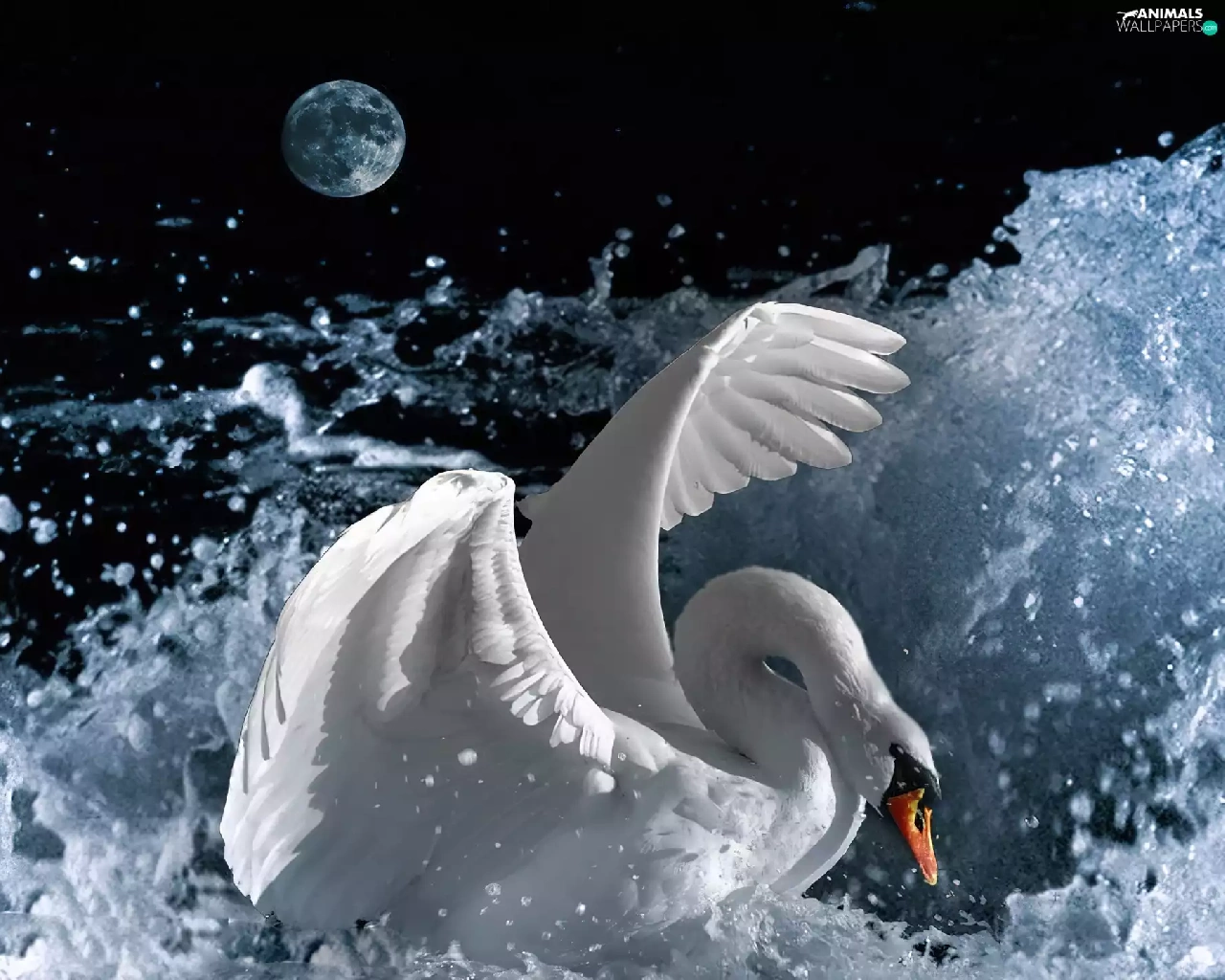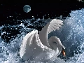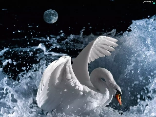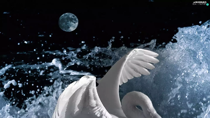 moon, Swans, water