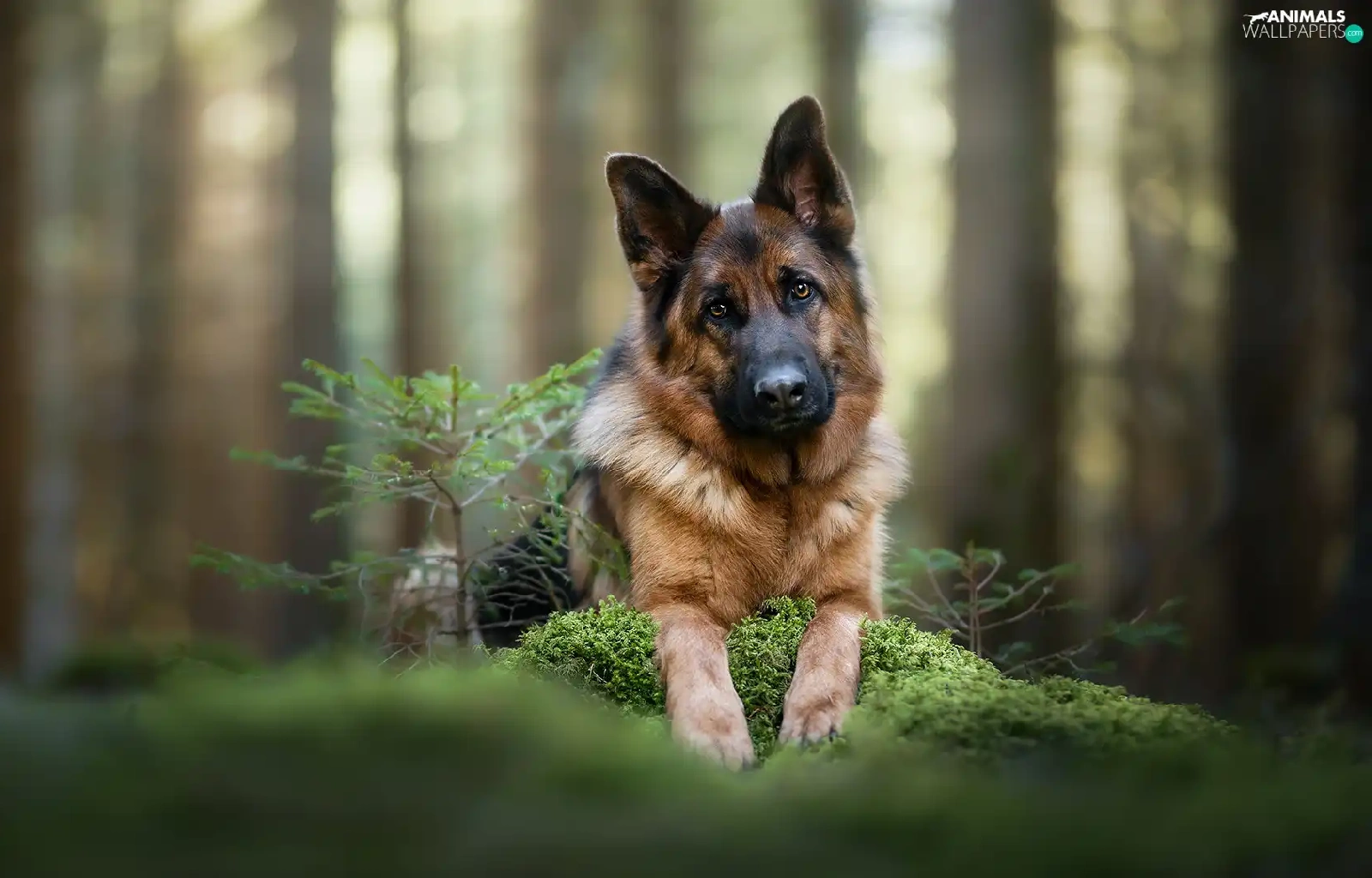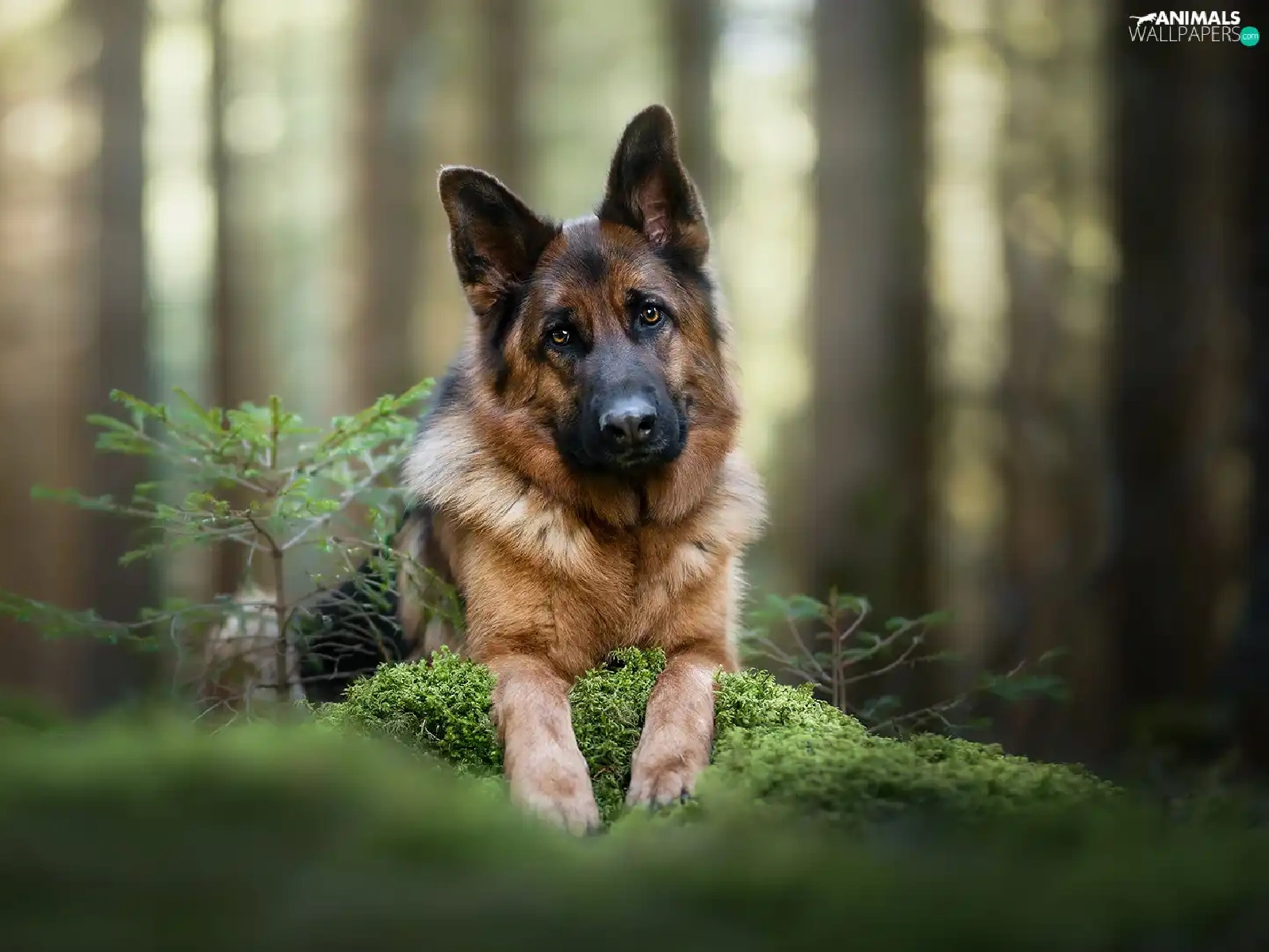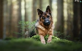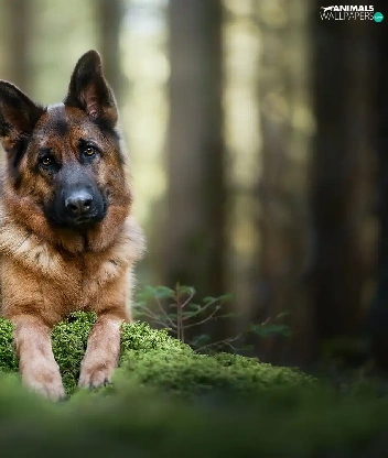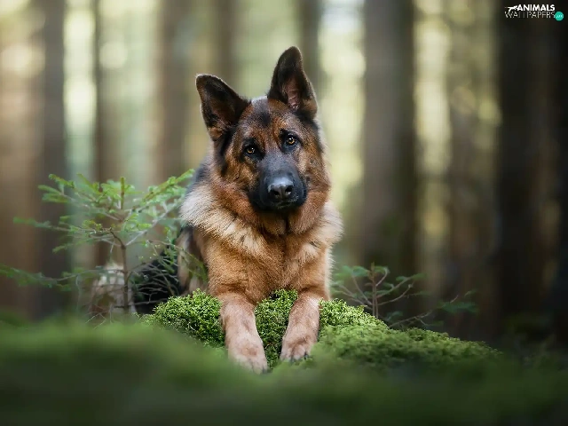 young, dog, cluster, moss, sapling, German Shepherd