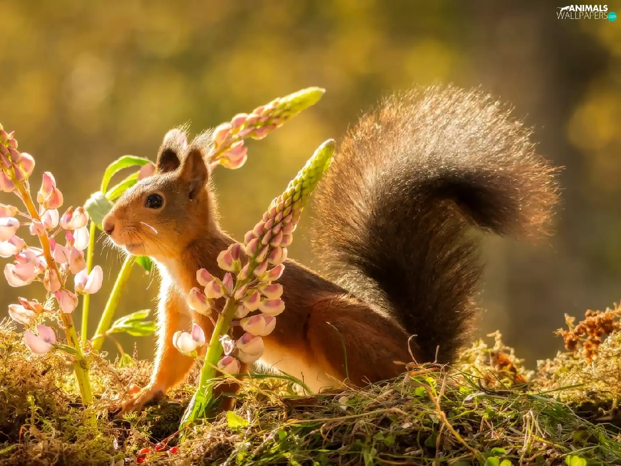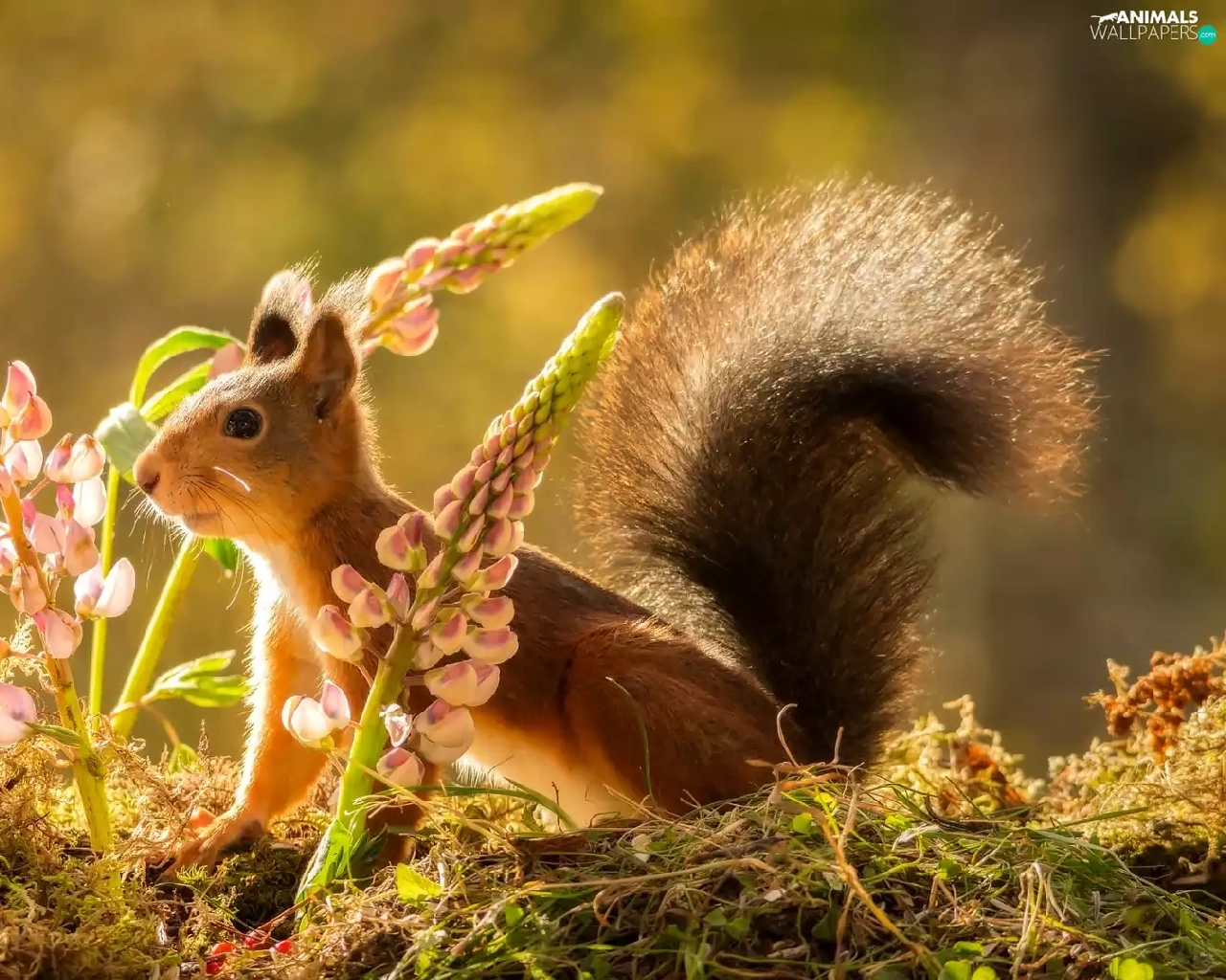 Moss, squirrel, lupine