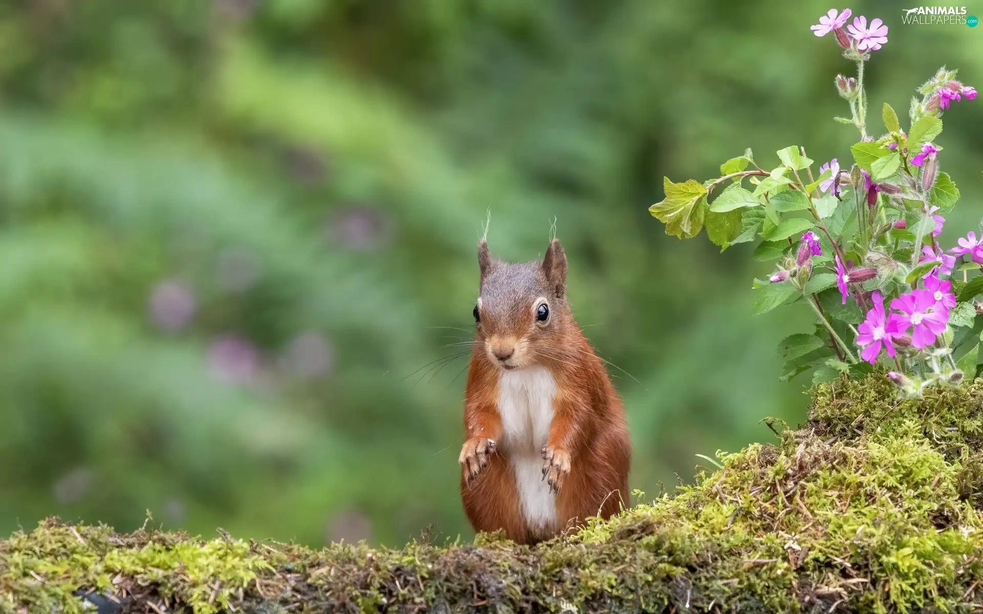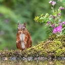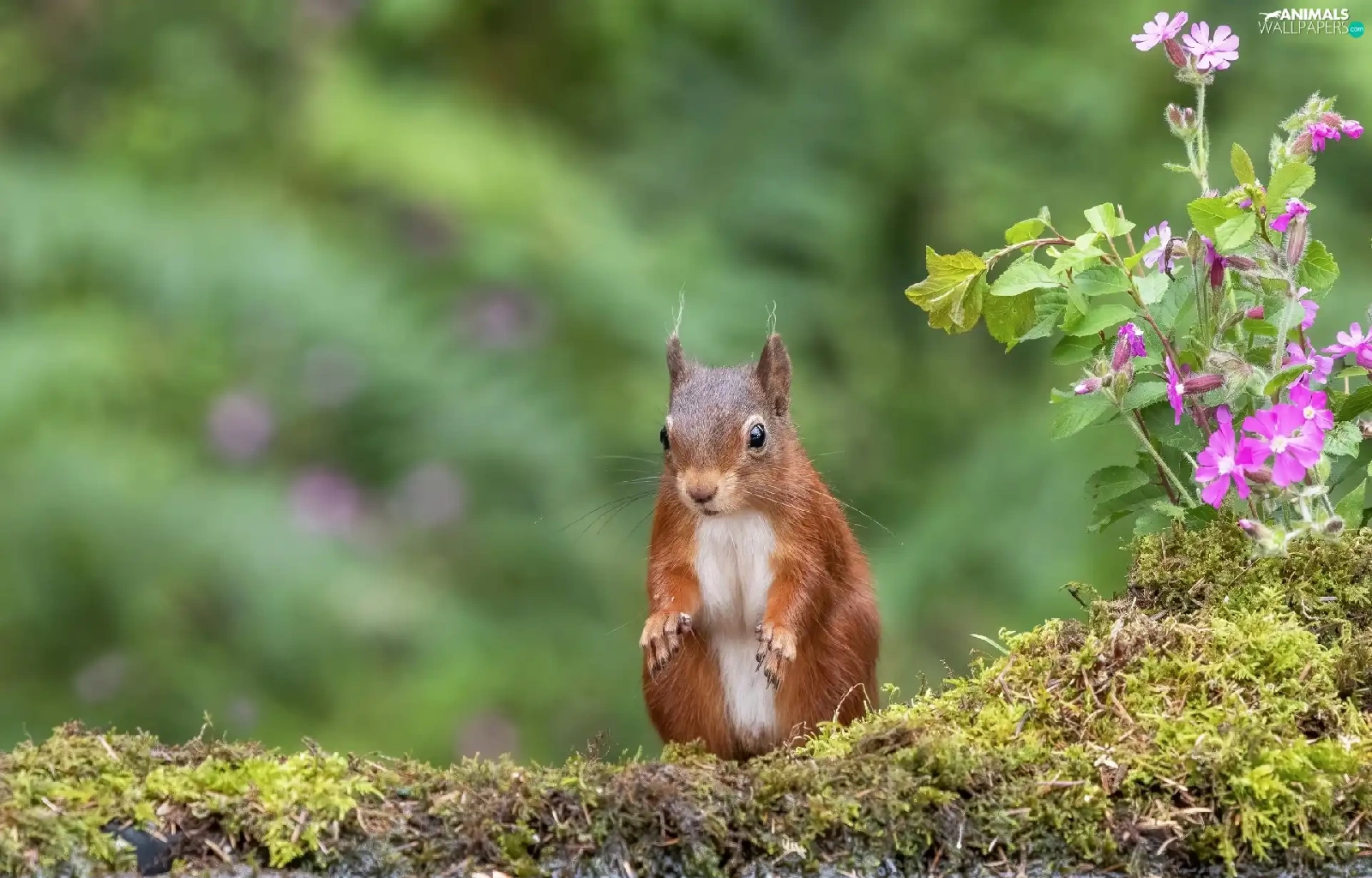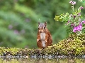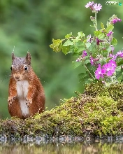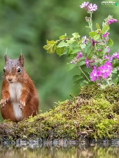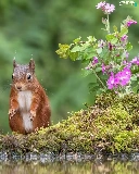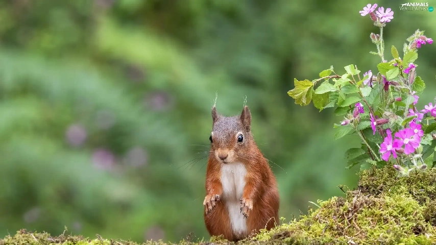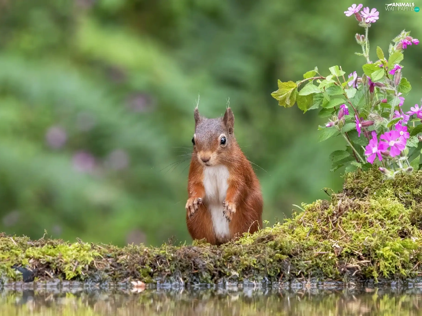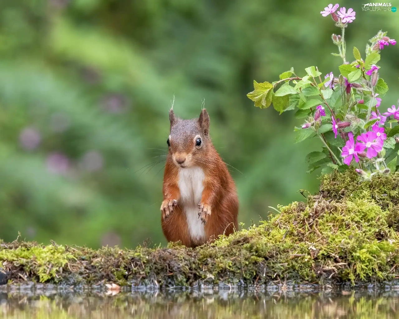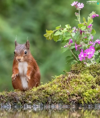 squirrel, water, Flowers, Moss