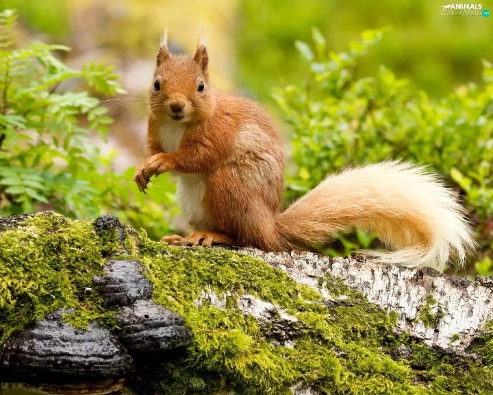 Moss, squirrel, Stone
