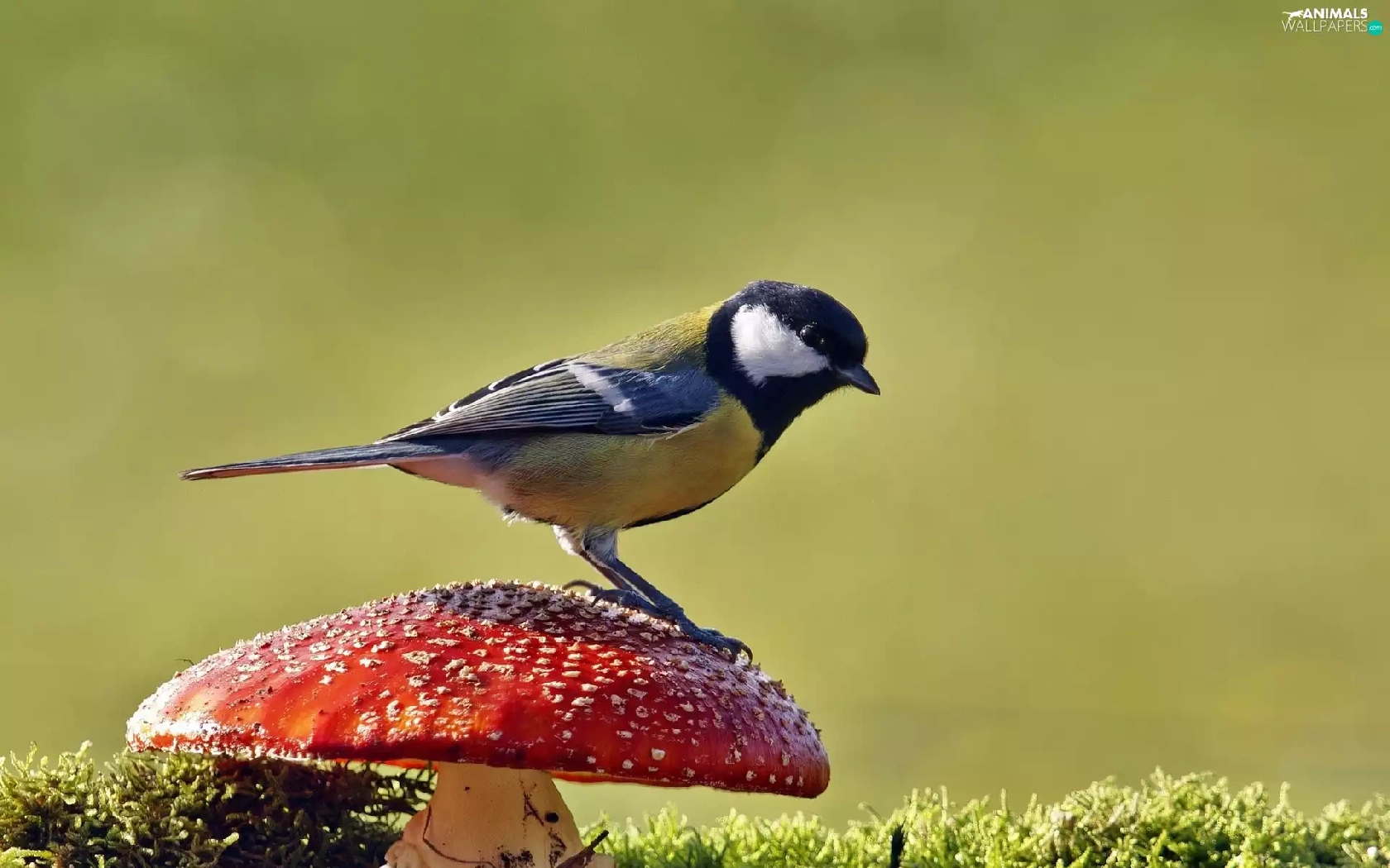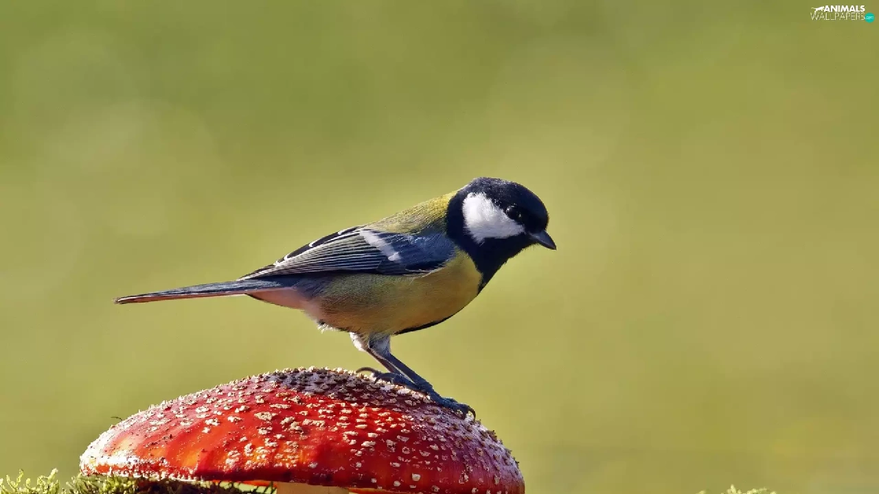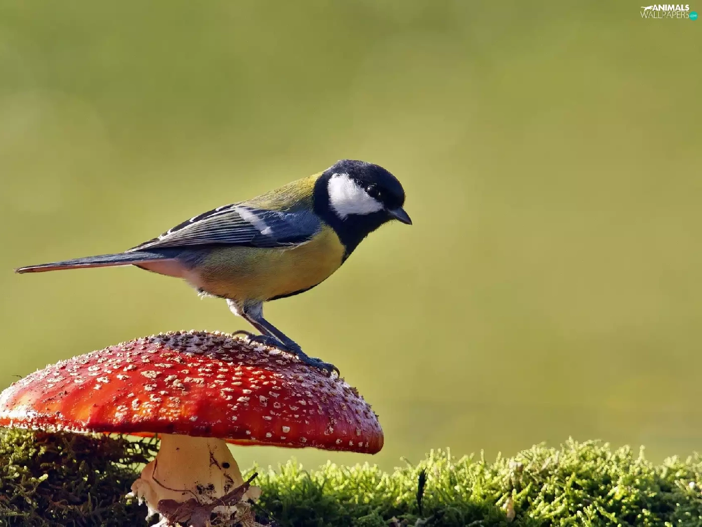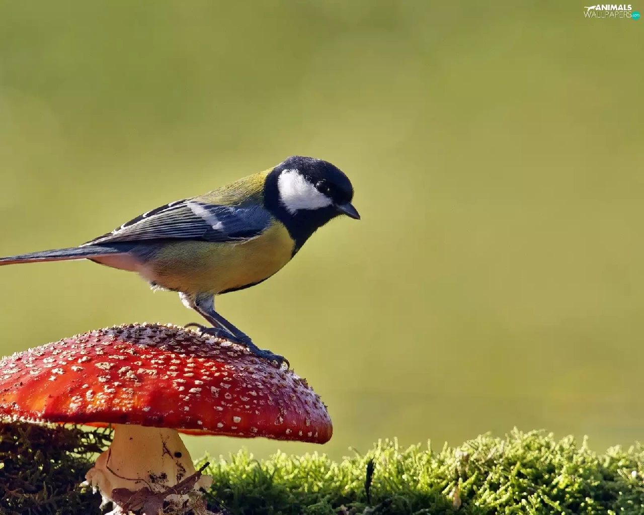 Moss, tit, toadstool