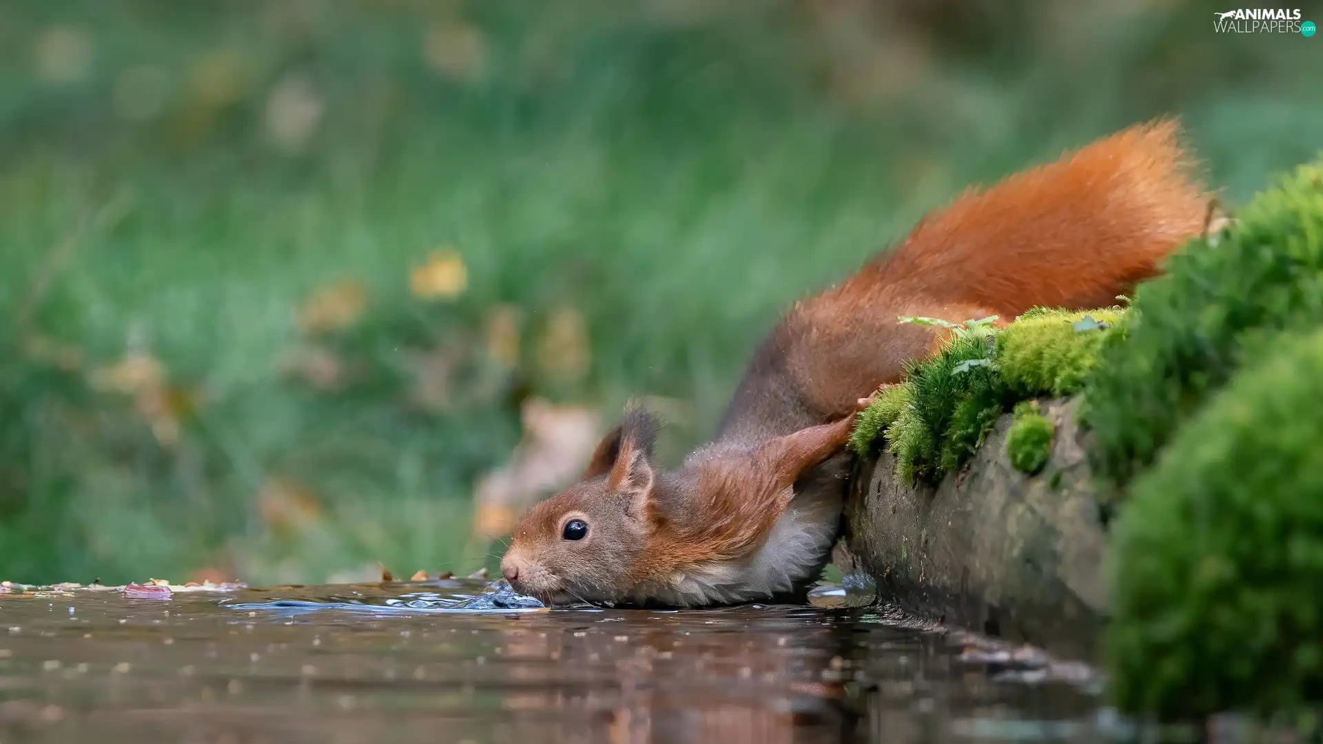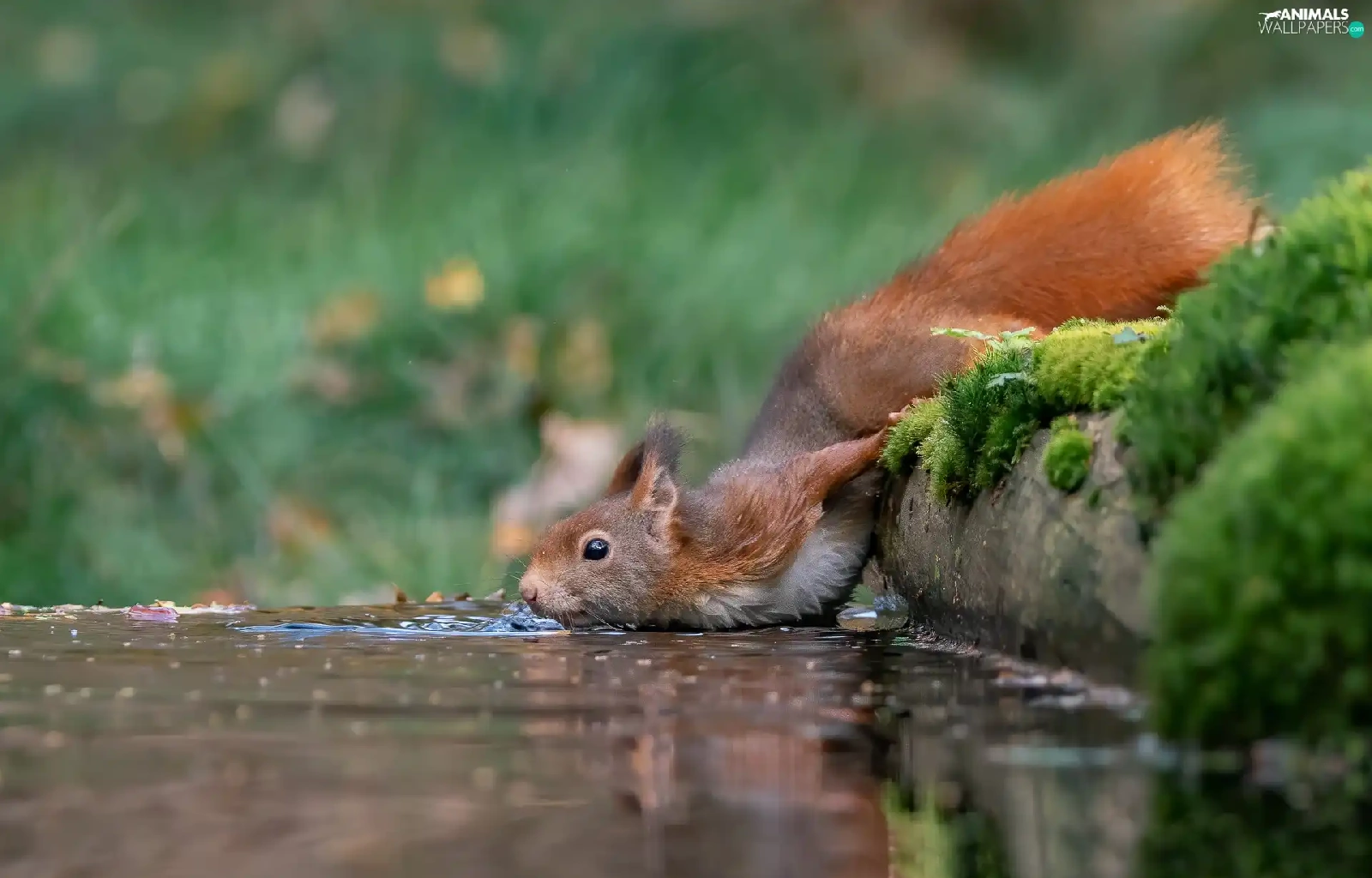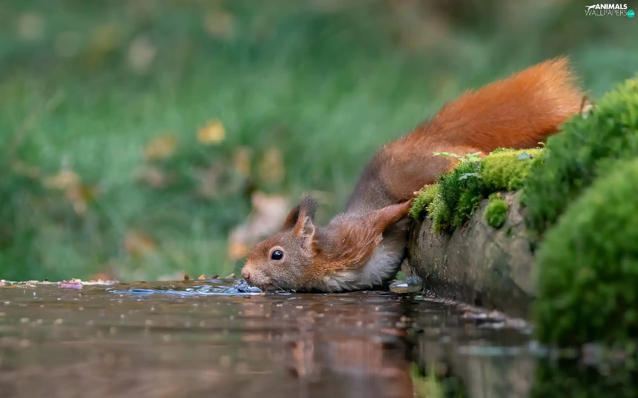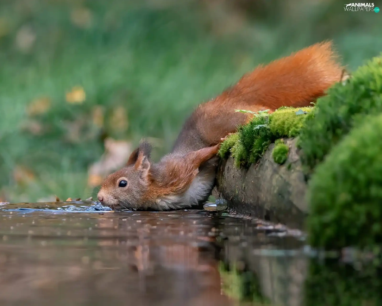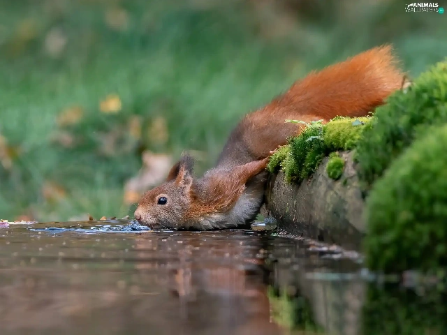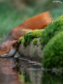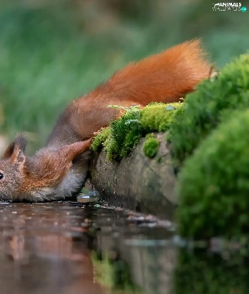 Moss, squirrel, water