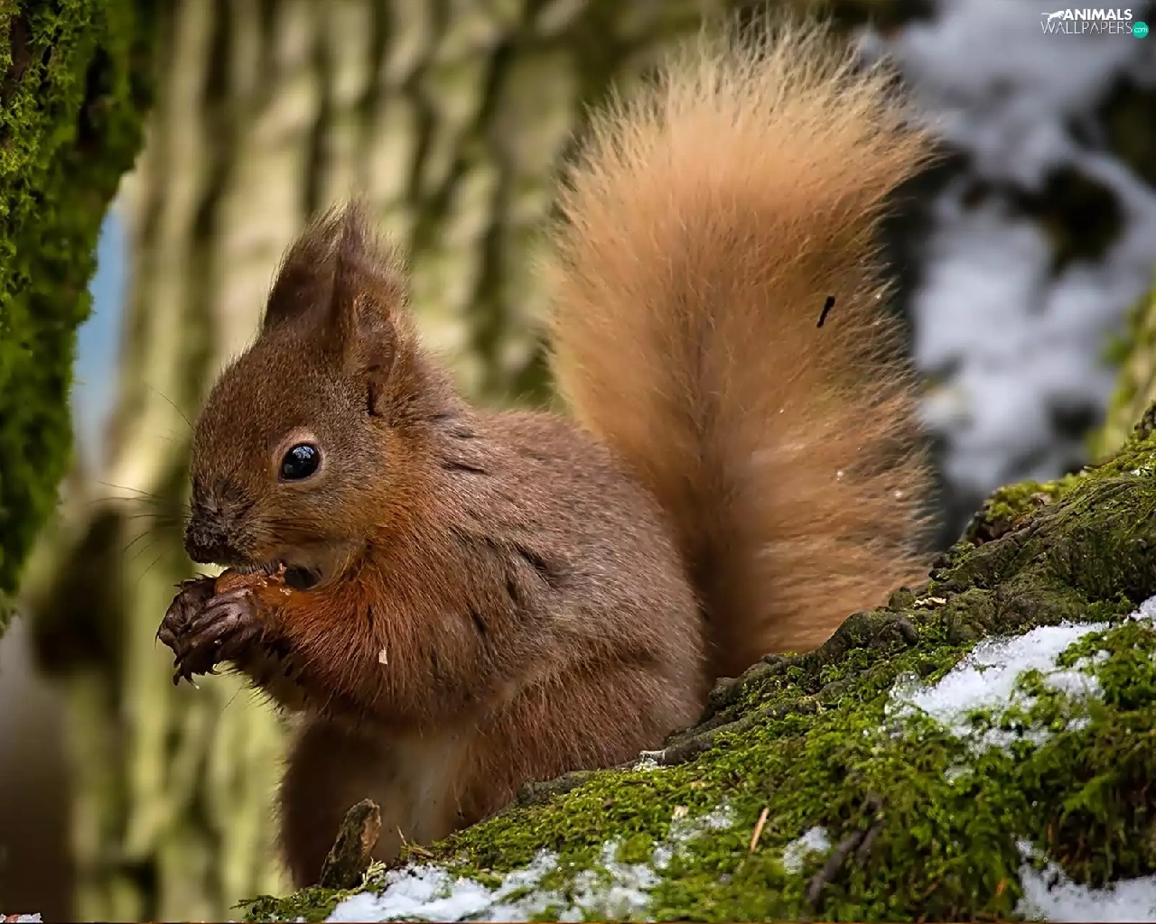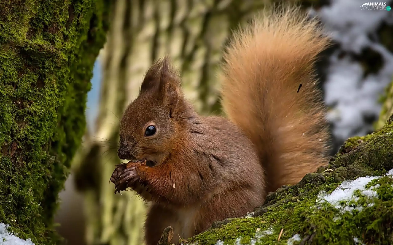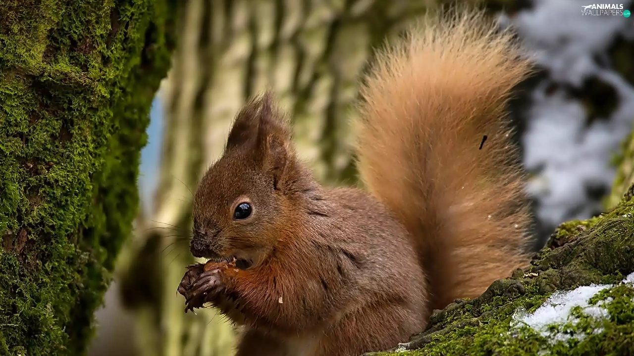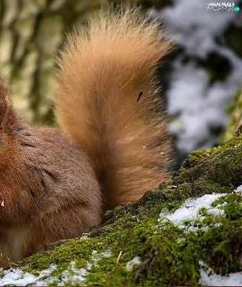 squirrel, branches, trees, mossy