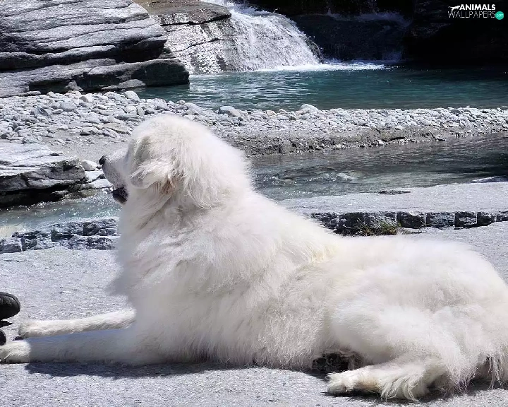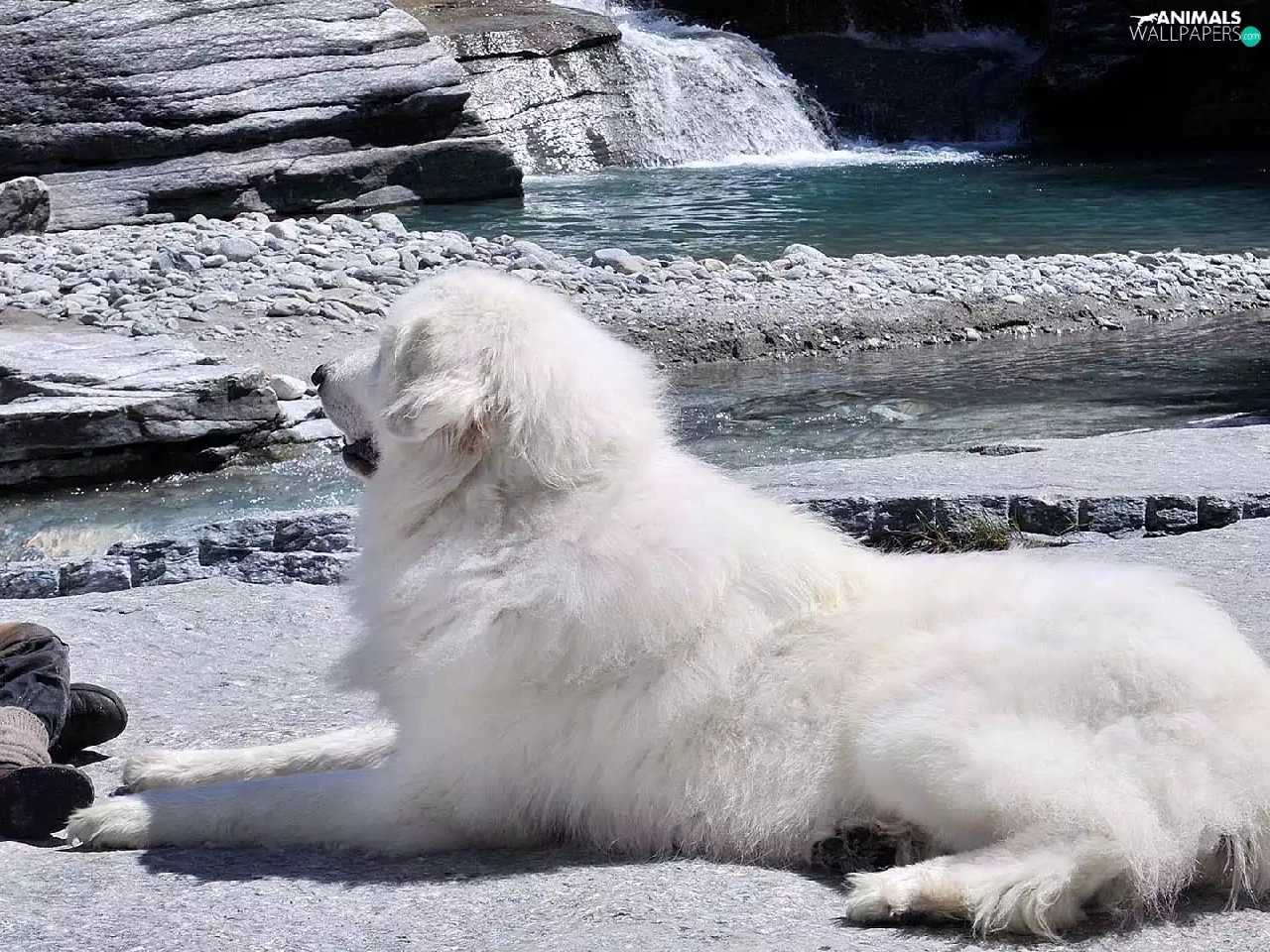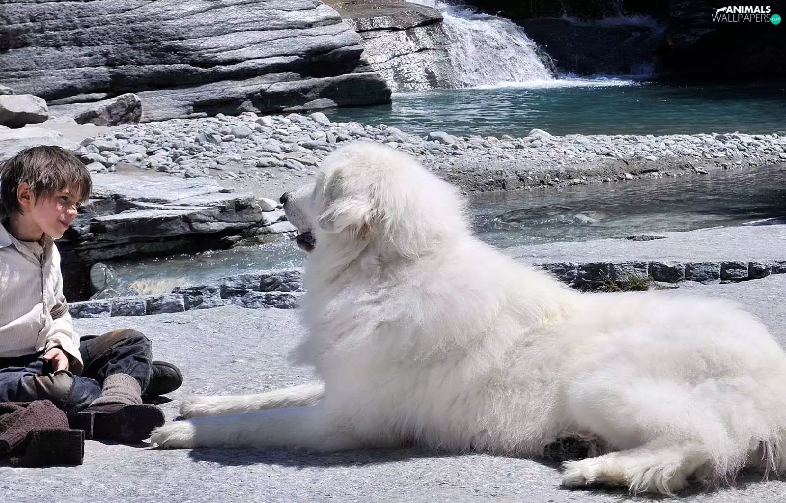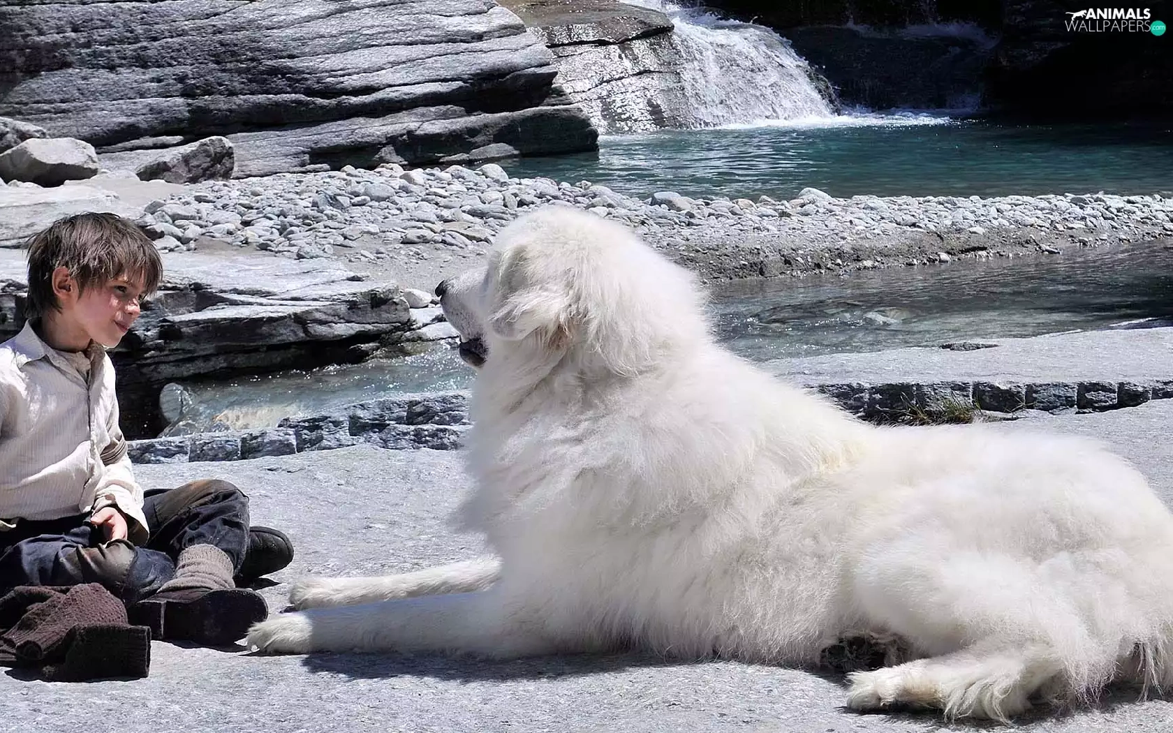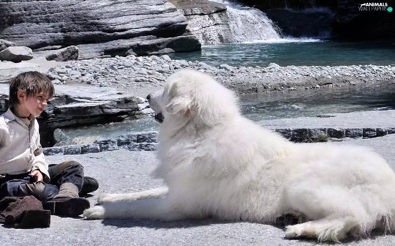 Félix Bossuet, Belle and Sebastian, River, Kid, movie, Pyrenean Mountain Dog, Stones